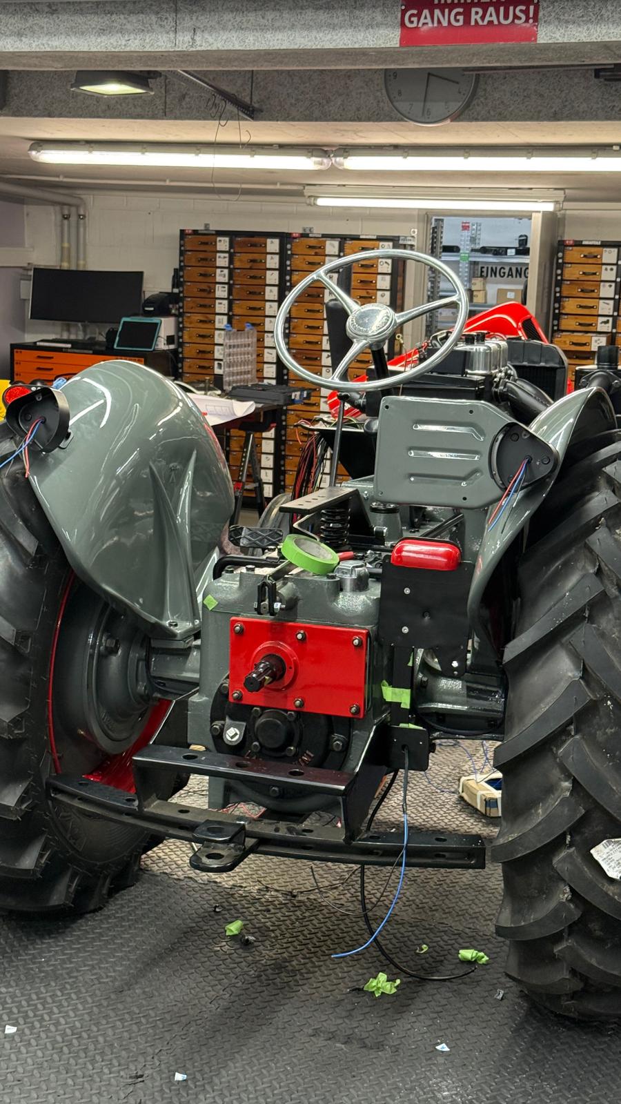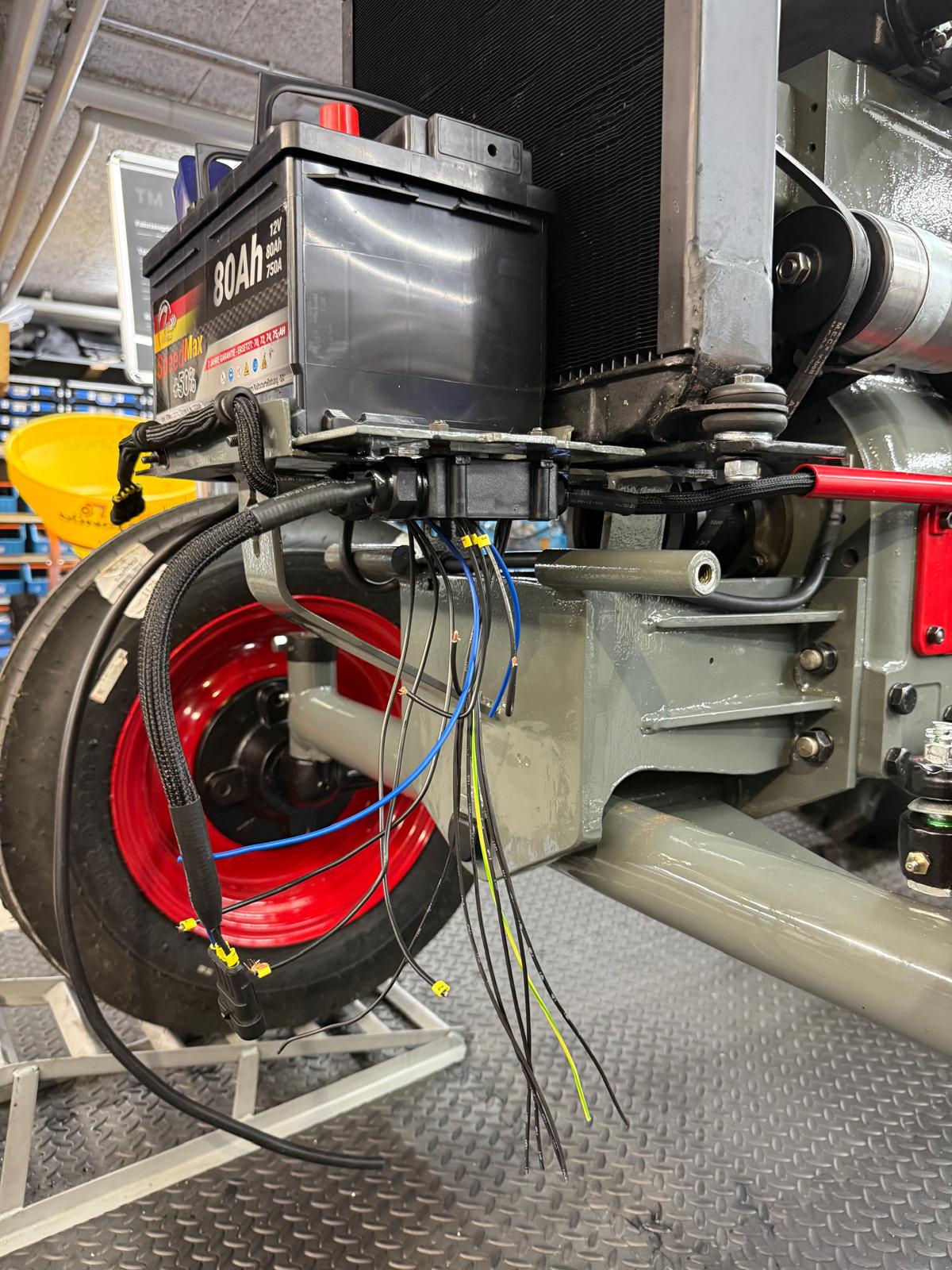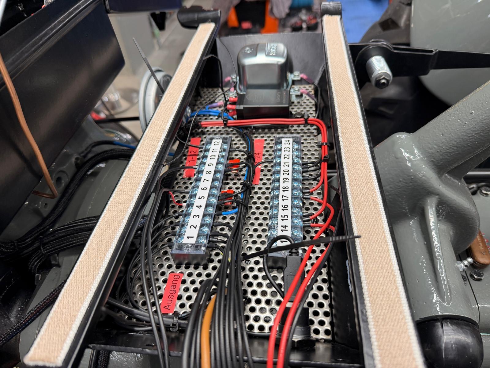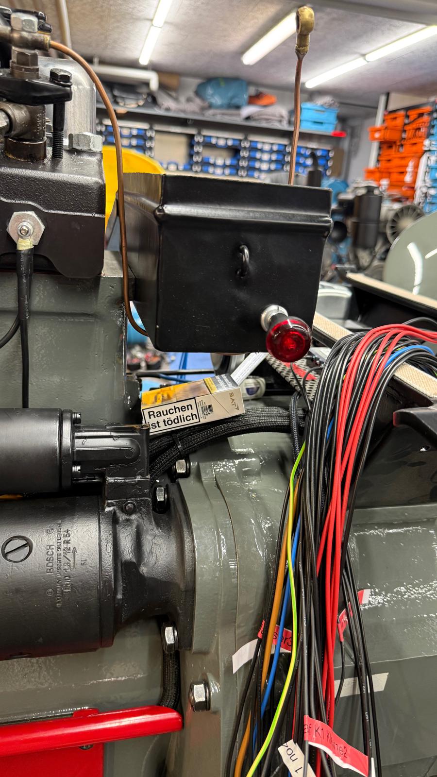 Neuaufbau mit modern dimensionierten Verteilersystemen, neu gefertigtem Kabelbaum und hochwertigen Steck-/Crimpverbindungen. Sicherungen nur, wenn historisch vorgesehen. Beleuchtung/Signale funktionssicher; Traktormeter in Originalausführung vom damaligen Originalhersteller nachproduziert.