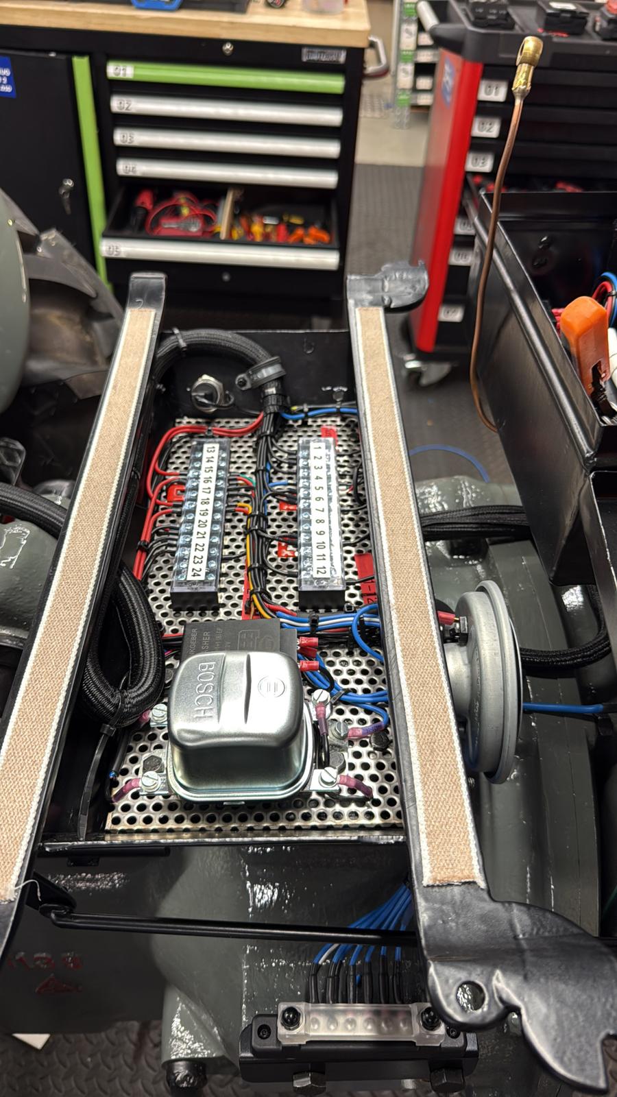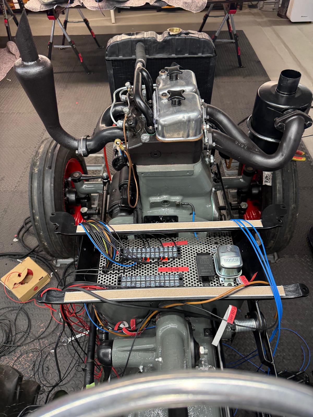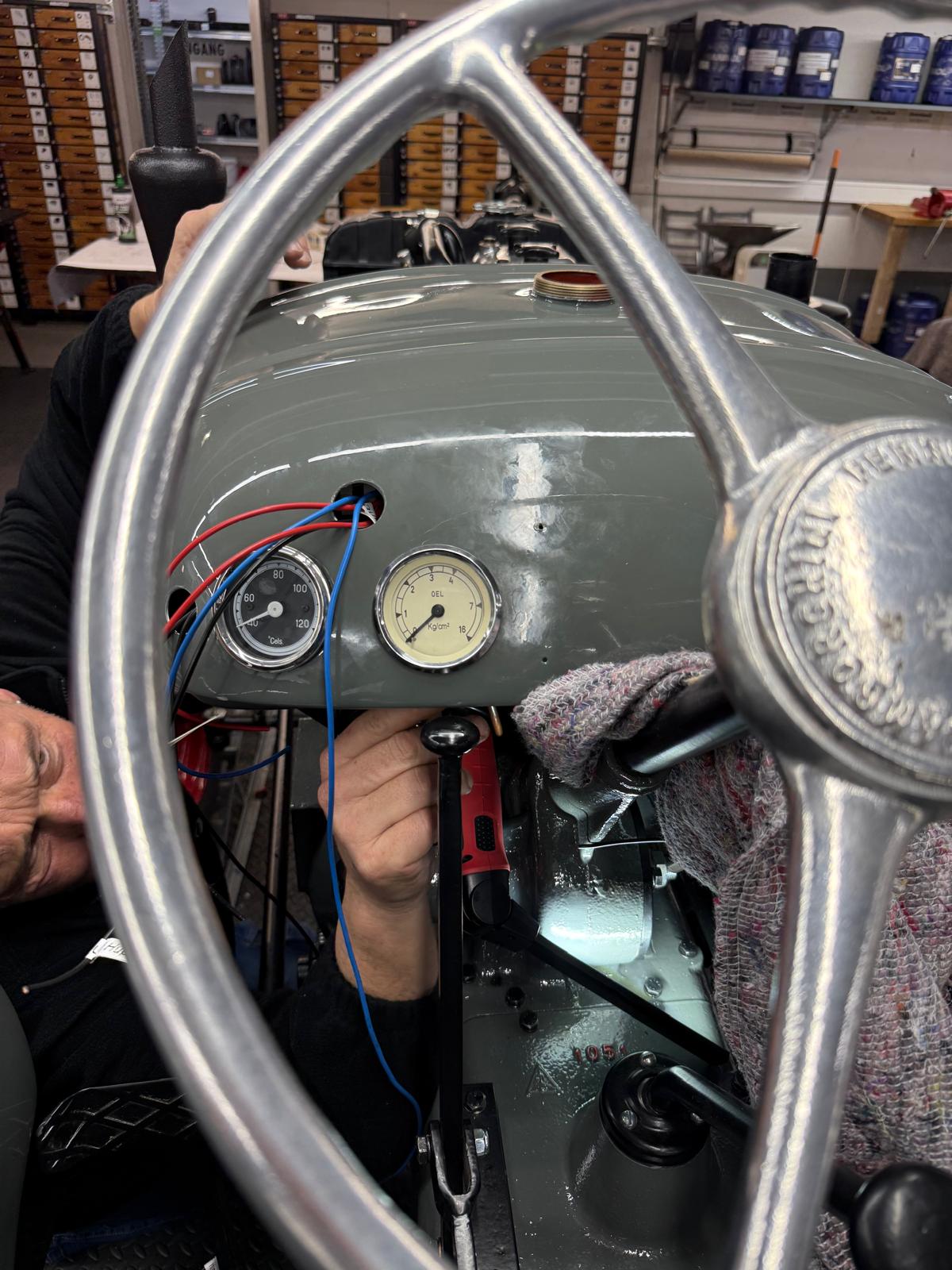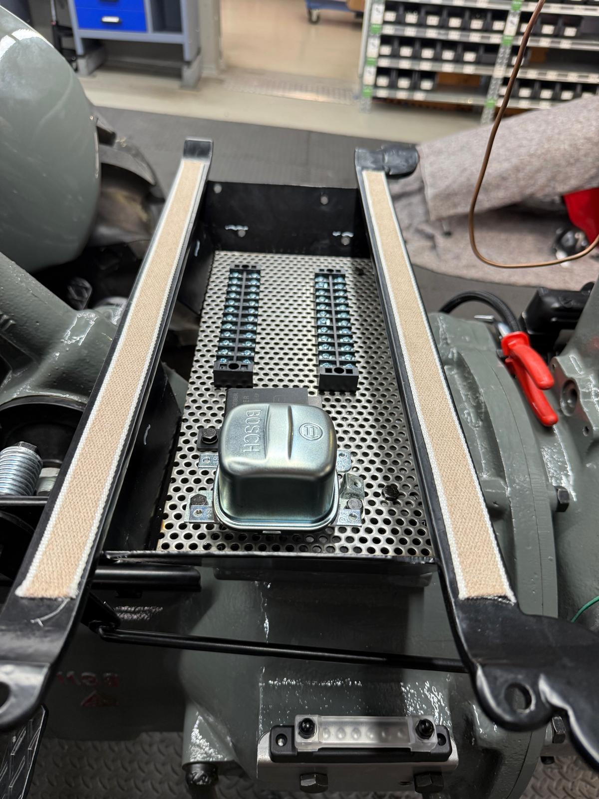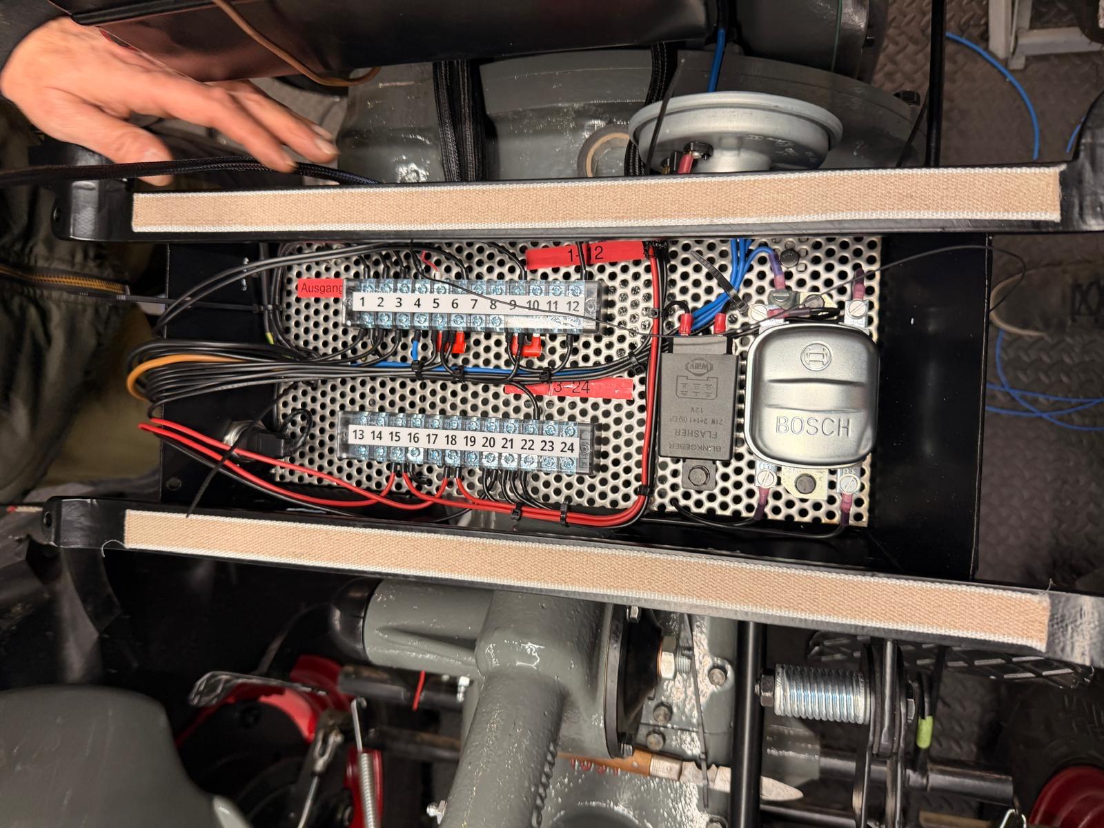 Neuaufbau mit modern dimensionierten Verteilersystemen, neu gefertigtem Kabelbaum und hochwertigen Steck-/Crimpverbindungen. Sicherungen nur, wenn historisch vorgesehen. Beleuchtung/Signale funktionssicher; Traktormeter in Originalausführung vom damaligen Originalhersteller nachproduziert.
