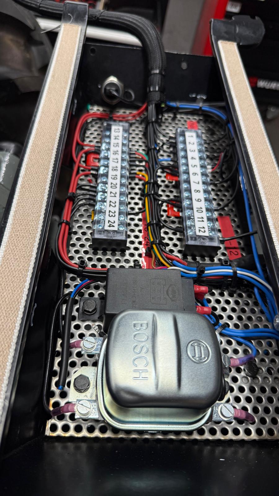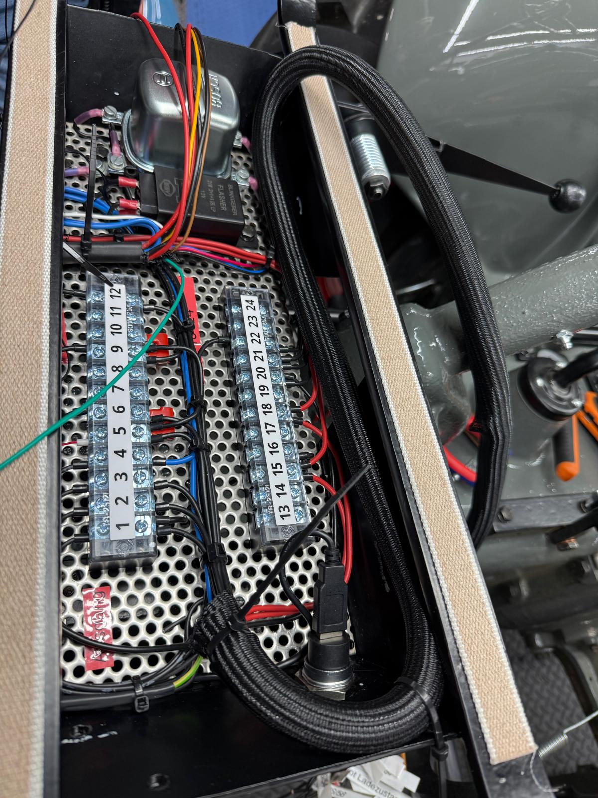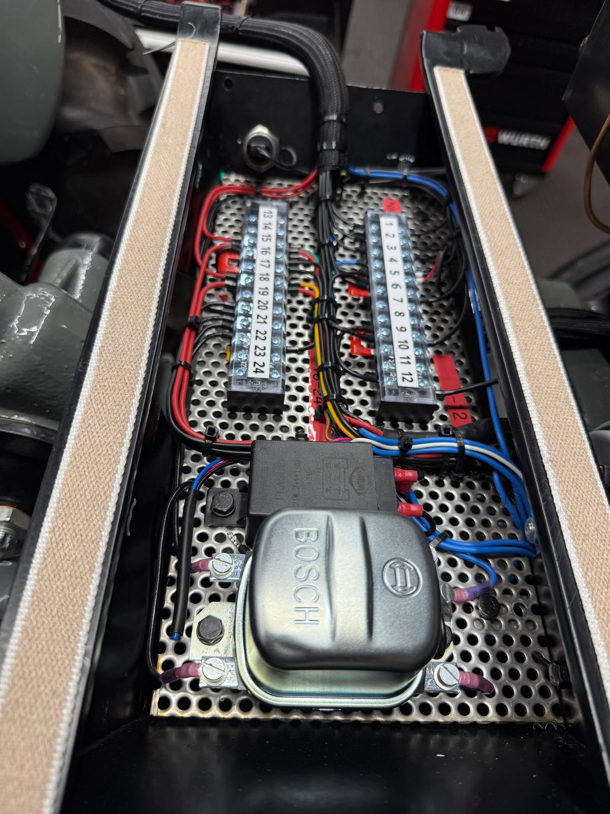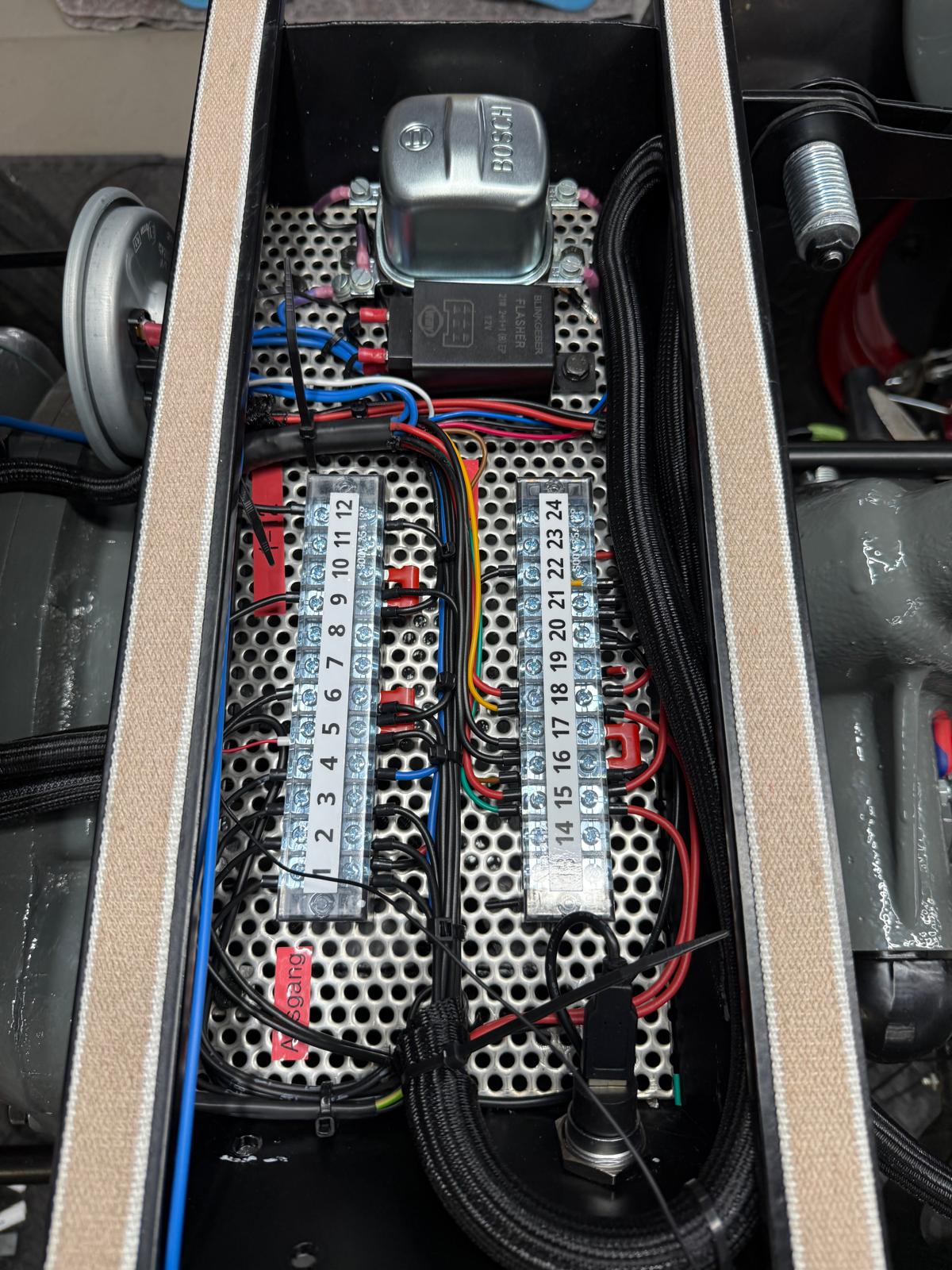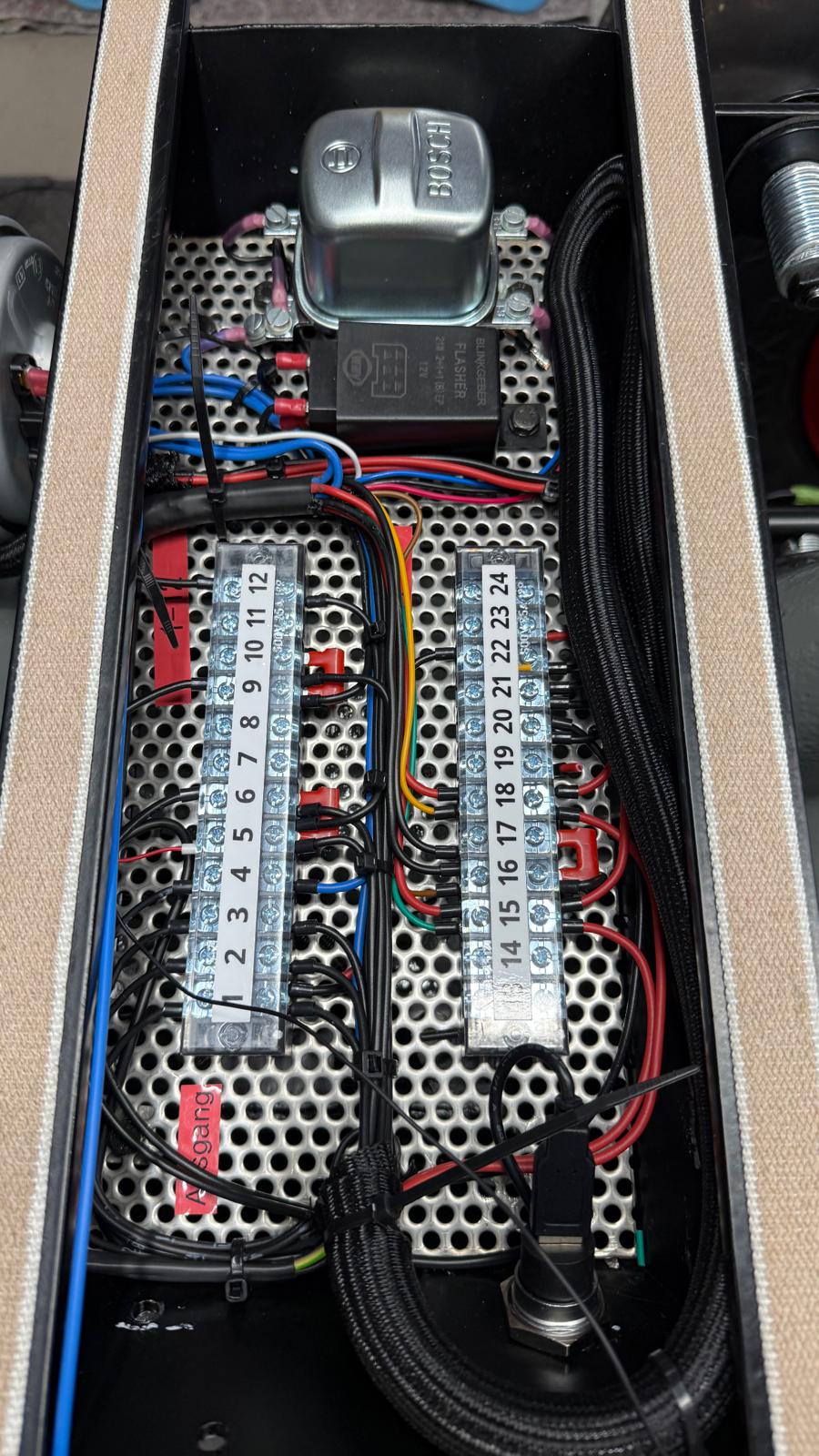 Neuaufbau mit modern dimensionierten Verteilersystemen, neu gefertigtem Kabelbaum und hochwertigen Steck-/Crimpverbindungen. Sicherungen nur, wenn historisch vorgesehen. Beleuchtung/Signale funktionssicher; Traktormeter in Originalausführung vom damaligen Originalhersteller nachproduziert.