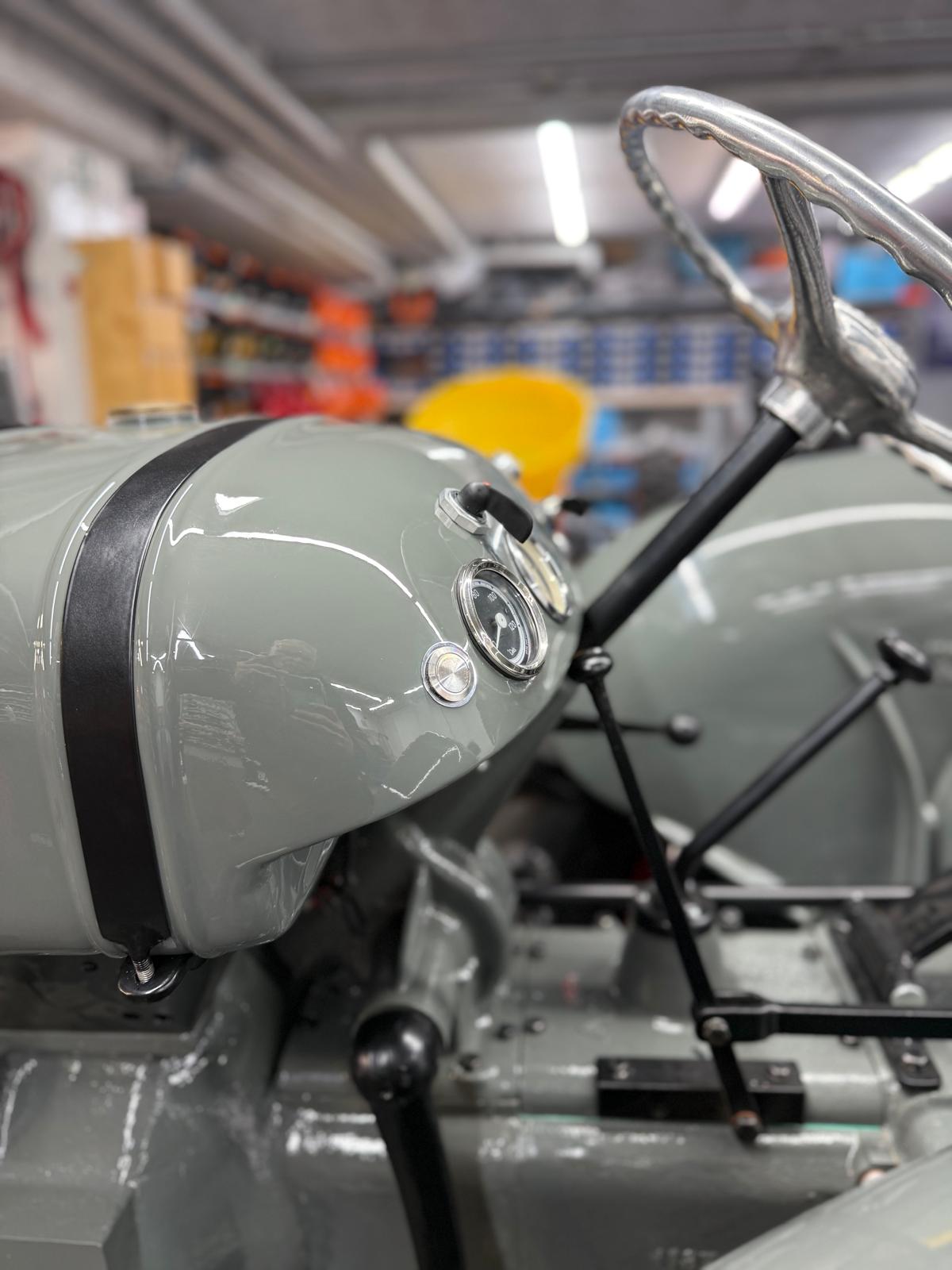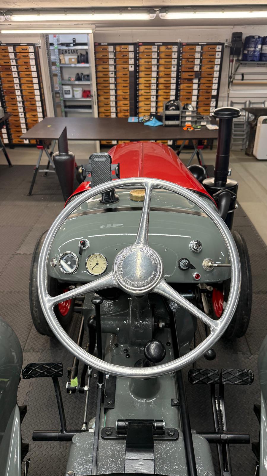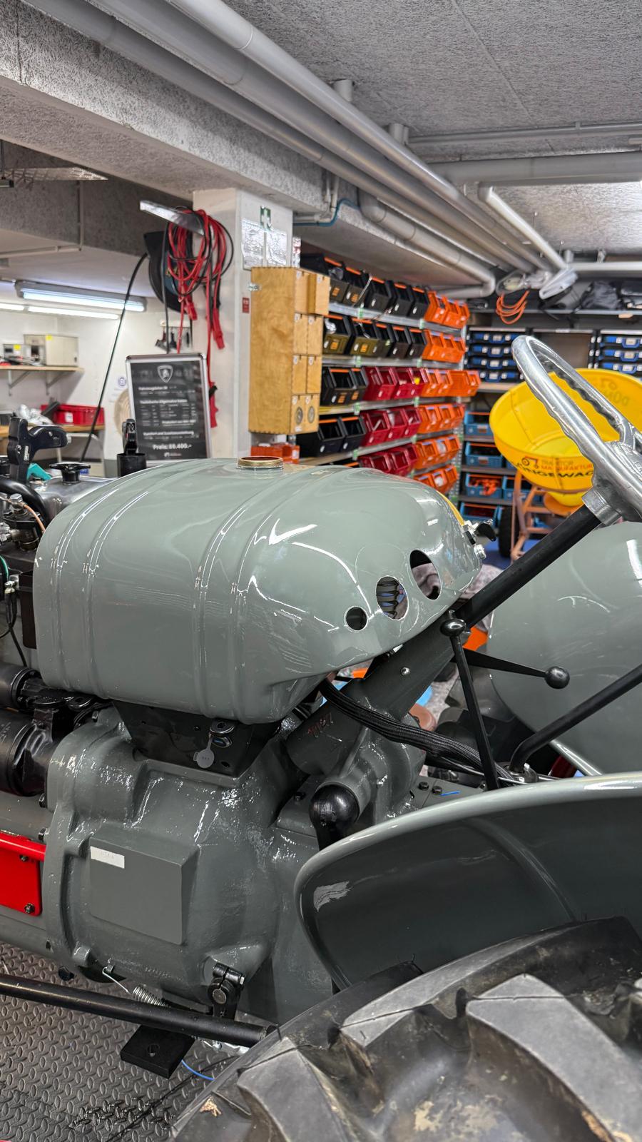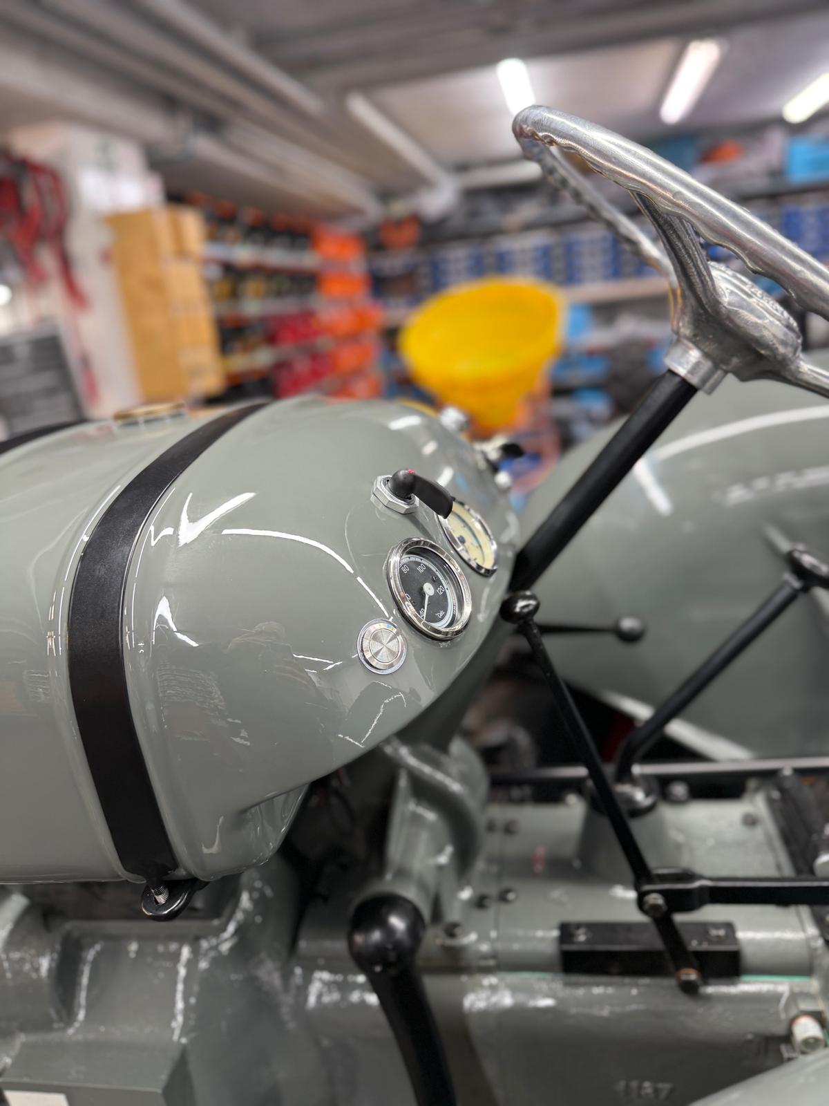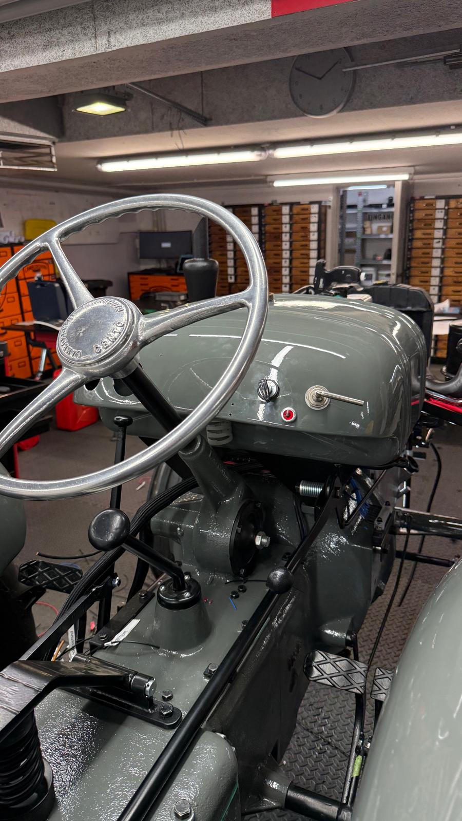 Lamborghini DL 25N (Baujahr 1955), ID 030. Ein kompakter, seltener N-Schmalspur aus der Frühphase – nun bei uns in der ID-gebundenen Vollrestauration. Fix definiert: Elektrik komplett neu, alle Dichtungen „Made in Austria“, Felgen in Hochglanz-Pulverbeschichtung, Original-Traktormeter in Originalausführung nachproduziert. Status: verkauft – in Restaurierung (Beginn 06.02.2025).