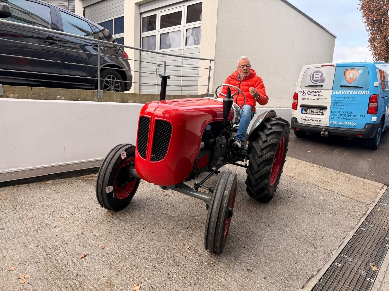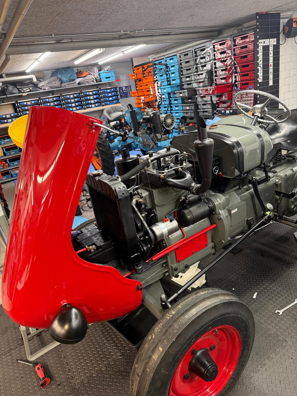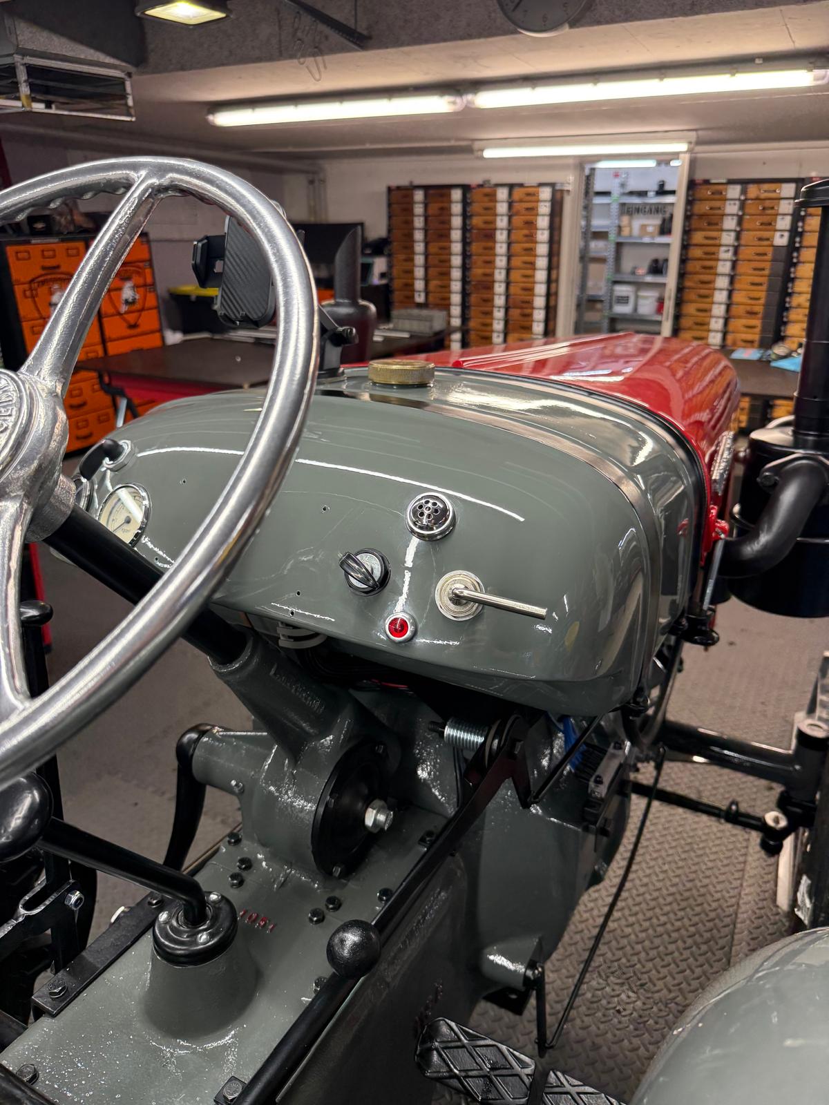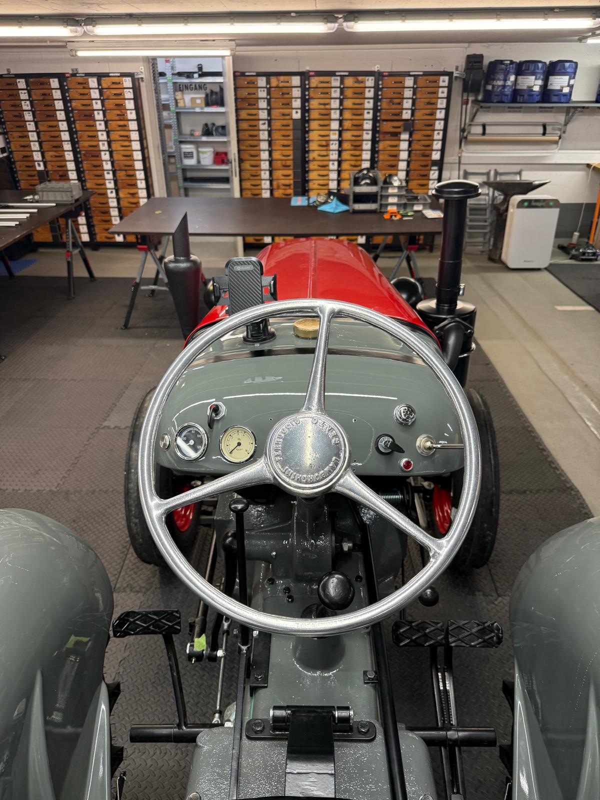 Lamborghini DL 25N (Baujahr 1955), ID 030. Ein kompakter, seltener N-Schmalspur aus der Frühphase – nun bei uns in der ID-gebundenen Vollrestauration. Fix definiert: Elektrik komplett neu, alle Dichtungen „Made in Austria“, Felgen in Hochglanz-Pulverbeschichtung, Original-Traktormeter in Originalausführung nachproduziert. Status: verkauft – in Restaurierung (Beginn 06.02.2025).