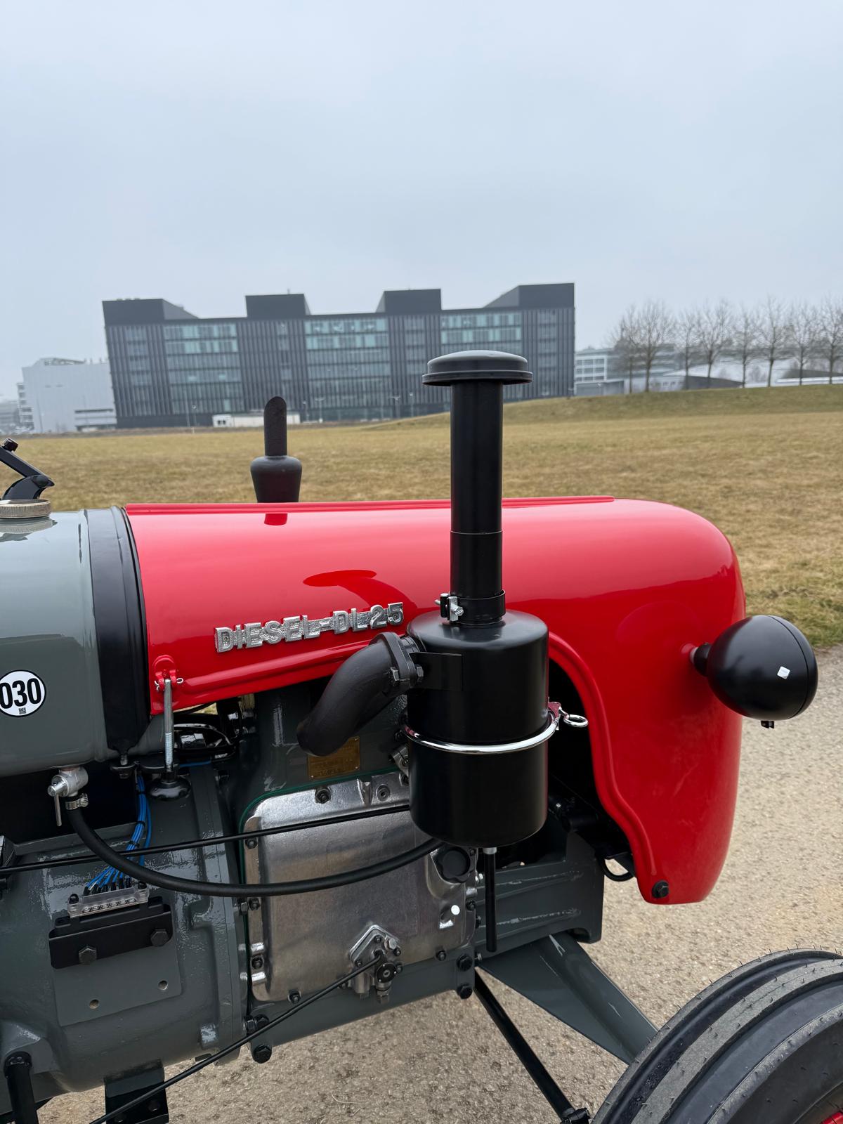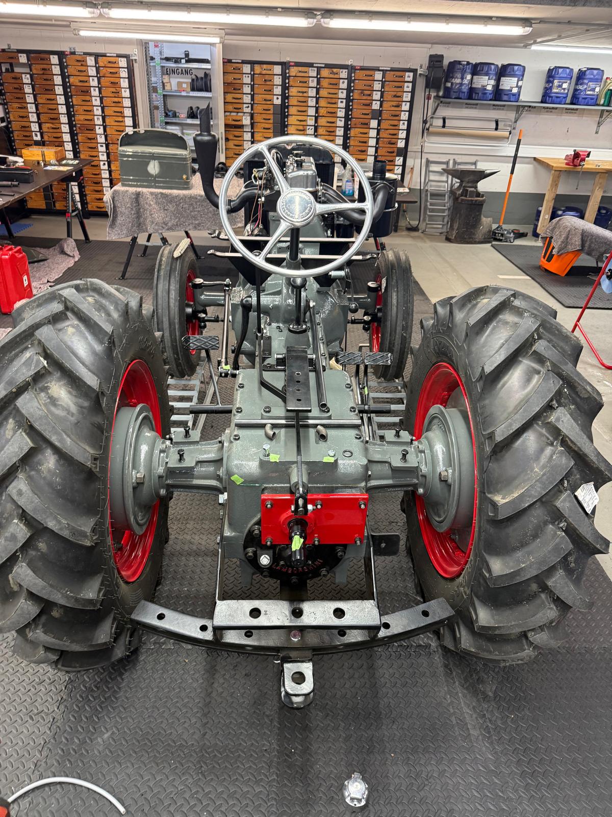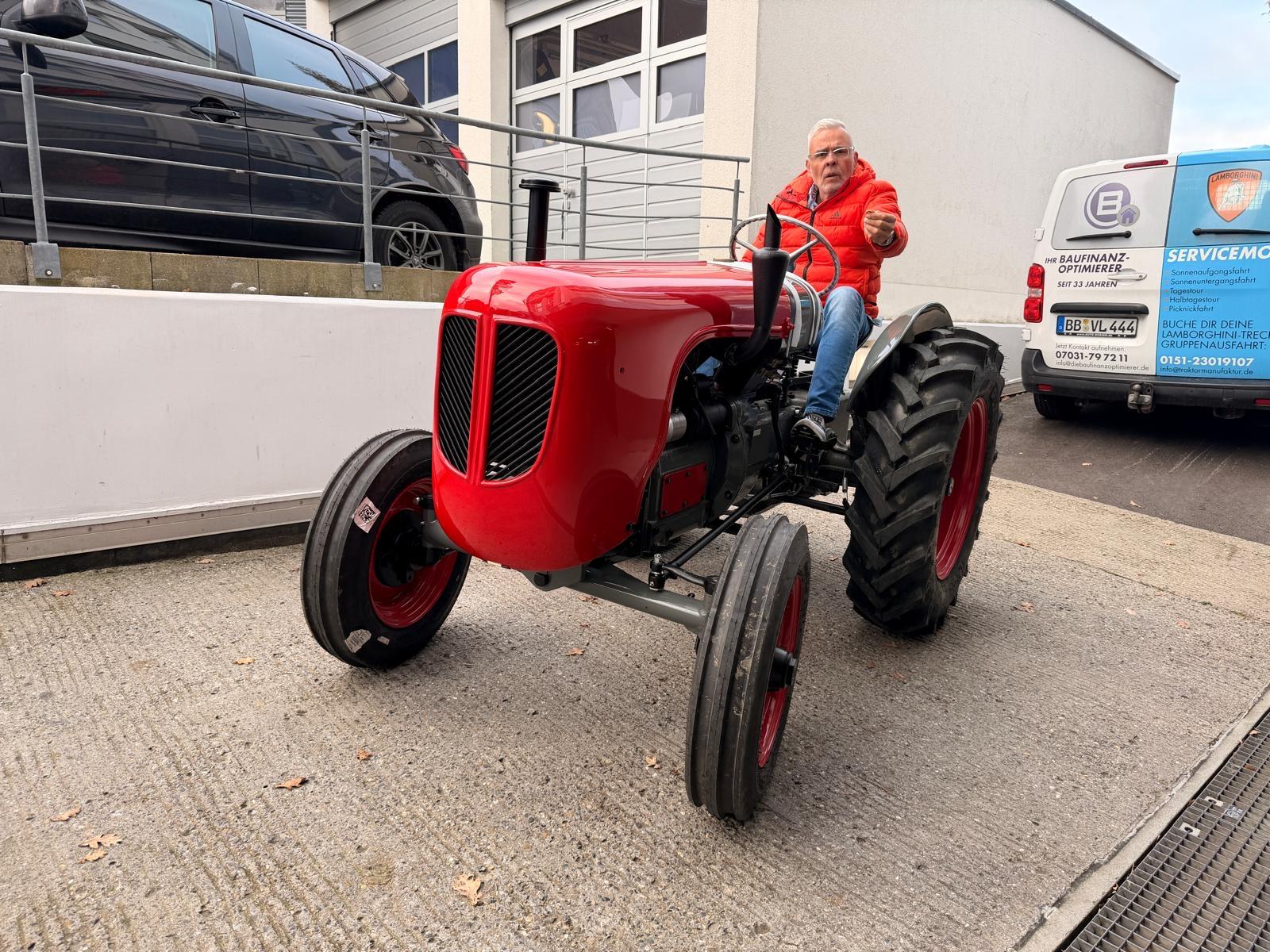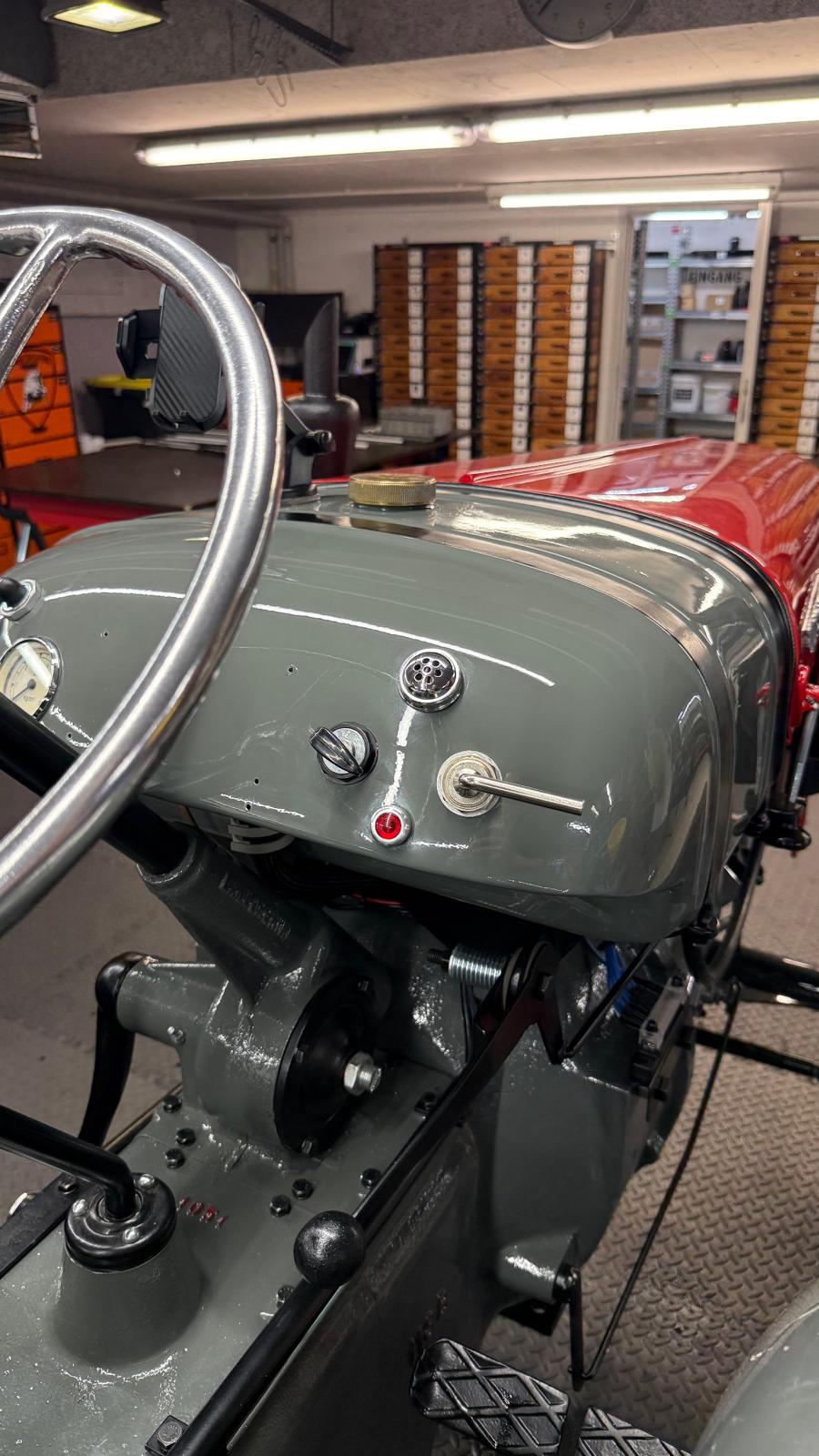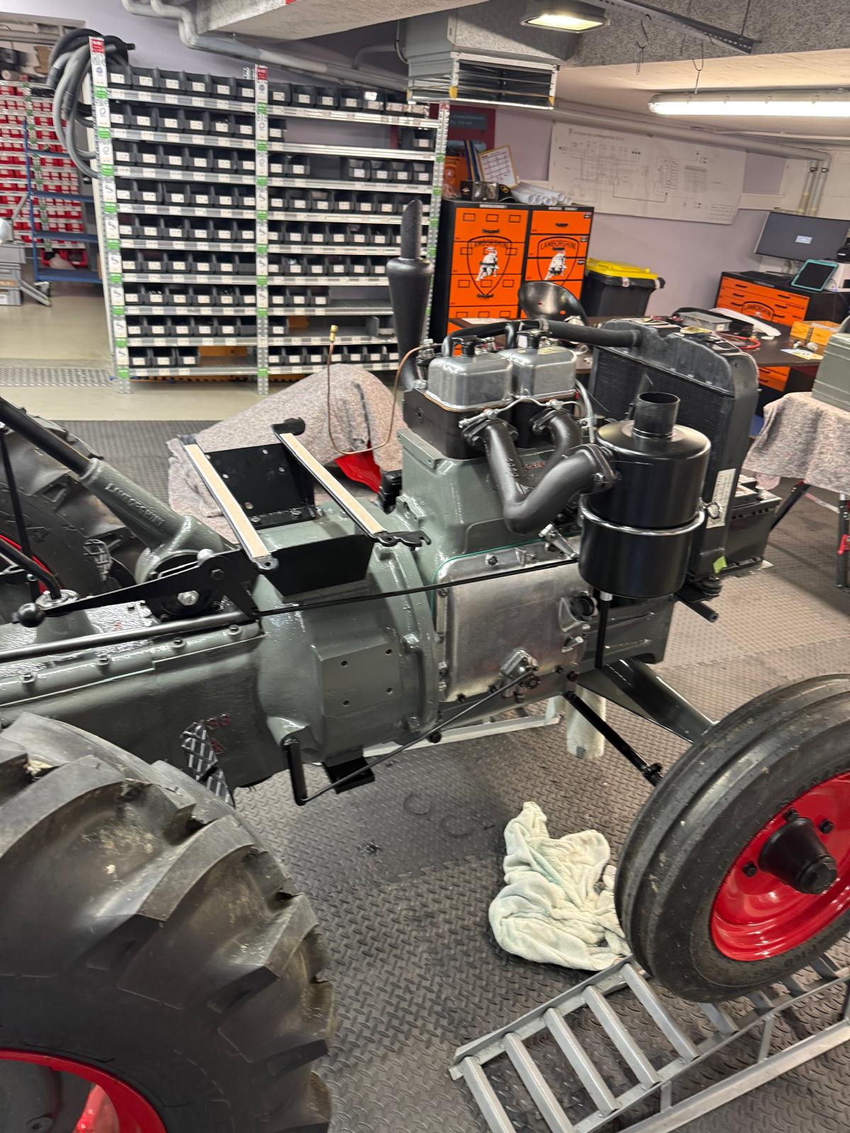 Lamborghini DL 25N (Baujahr 1955), ID 030. Ein kompakter, seltener N-Schmalspur aus der Frühphase – nun bei uns in der ID-gebundenen Vollrestauration. Fix definiert: Elektrik komplett neu, alle Dichtungen „Made in Austria“, Felgen in Hochglanz-Pulverbeschichtung, Original-Traktormeter in Originalausführung nachproduziert. Status: verkauft – in Restaurierung (Beginn 06.02.2025).