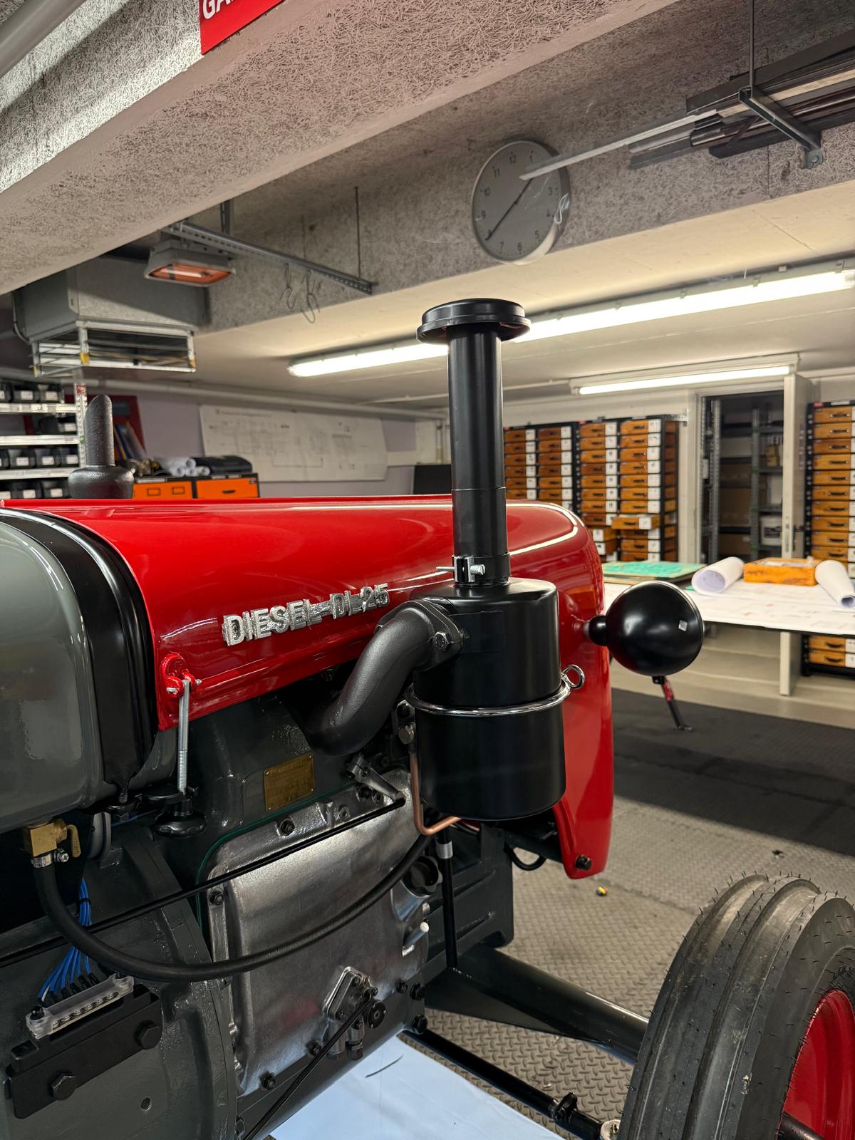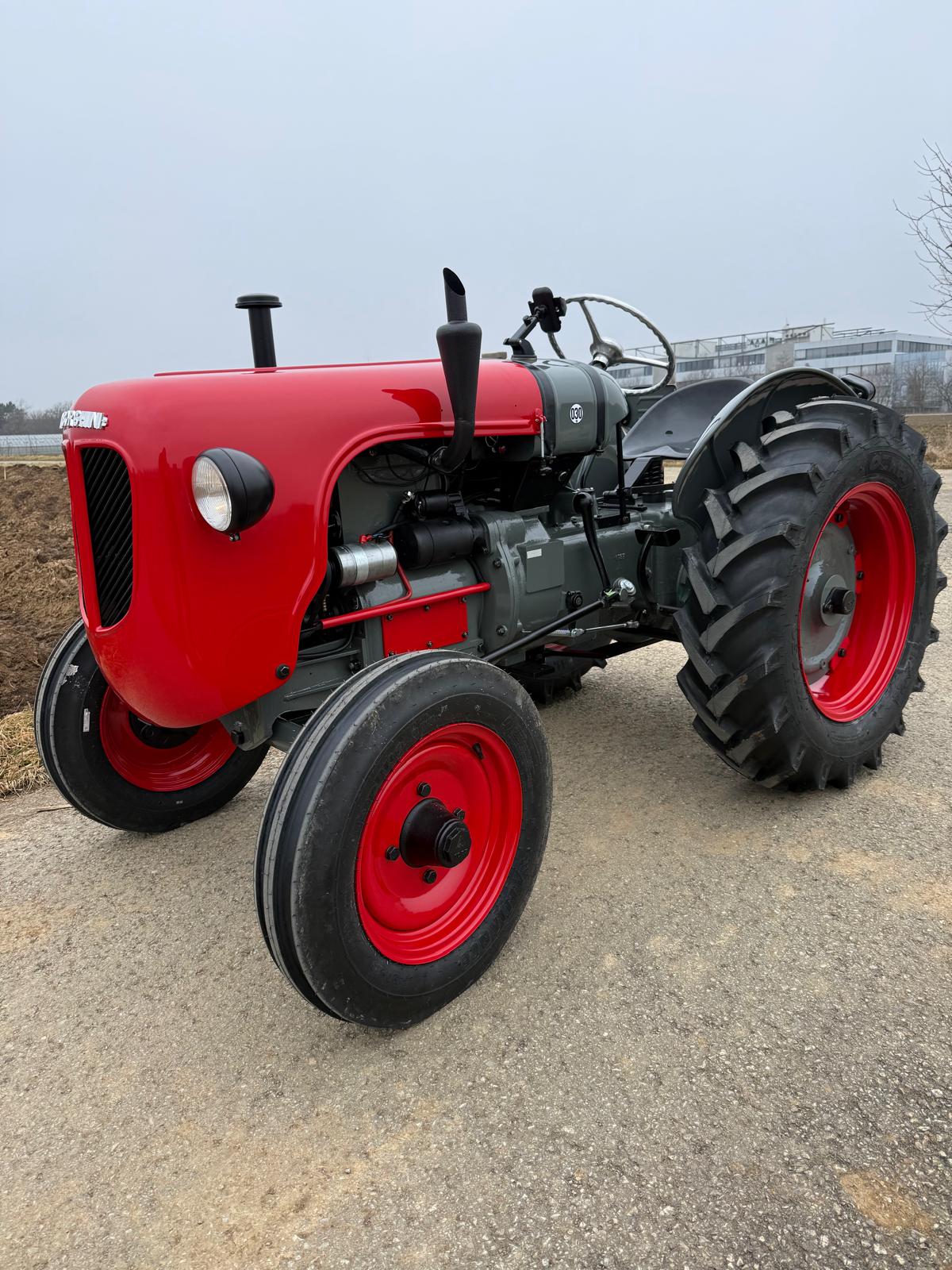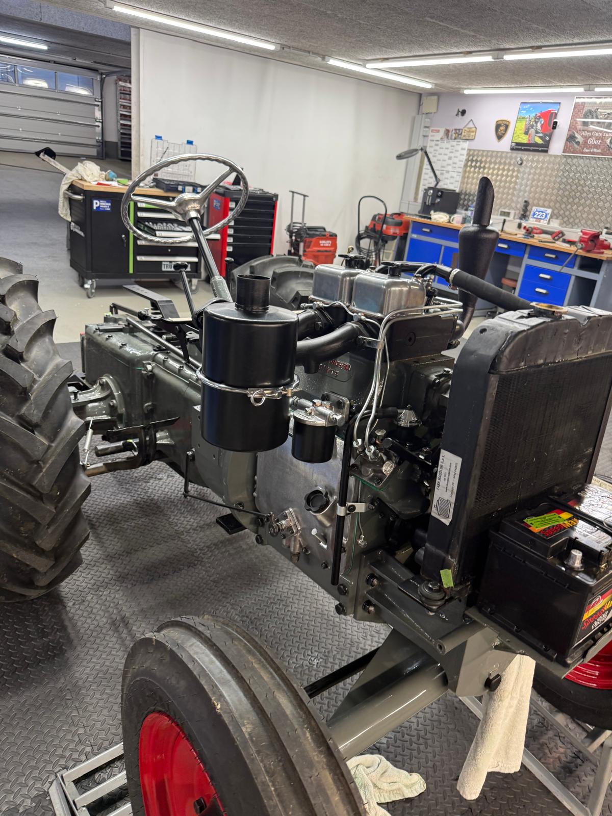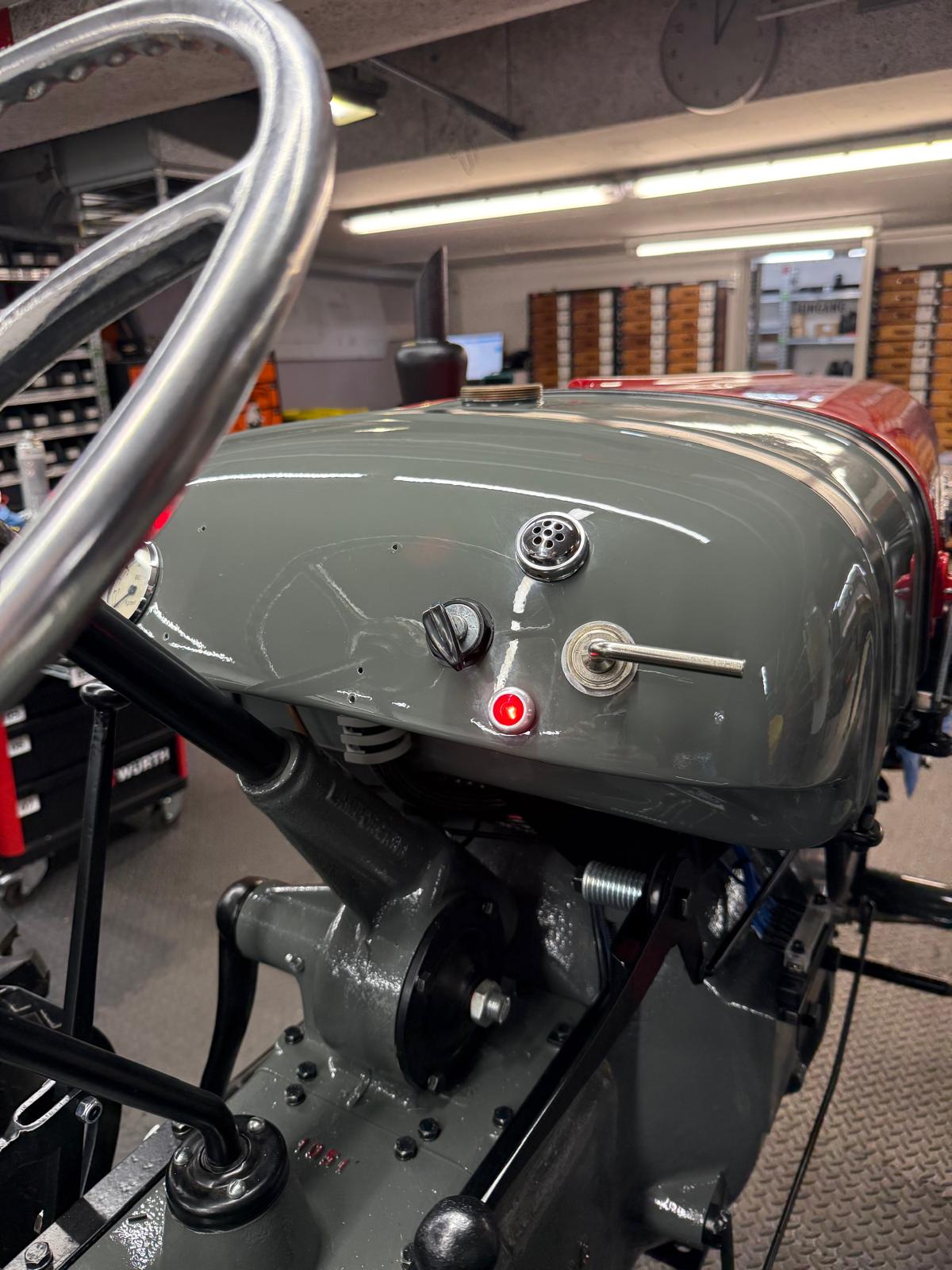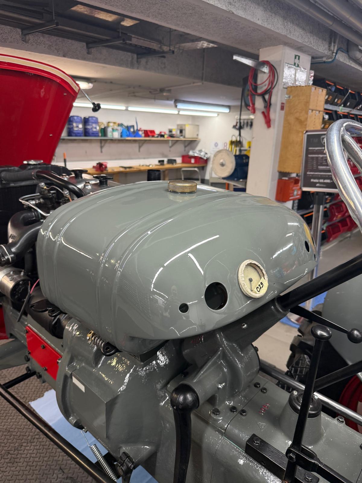 Lamborghini DL 25N (Baujahr 1955), ID 030. Ein kompakter, seltener N-Schmalspur aus der Frühphase – nun bei uns in der ID-gebundenen Vollrestauration. Fix definiert: Elektrik komplett neu, alle Dichtungen „Made in Austria“, Felgen in Hochglanz-Pulverbeschichtung, Original-Traktormeter in Originalausführung nachproduziert. Status: verkauft – in Restaurierung (Beginn 06.02.2025).