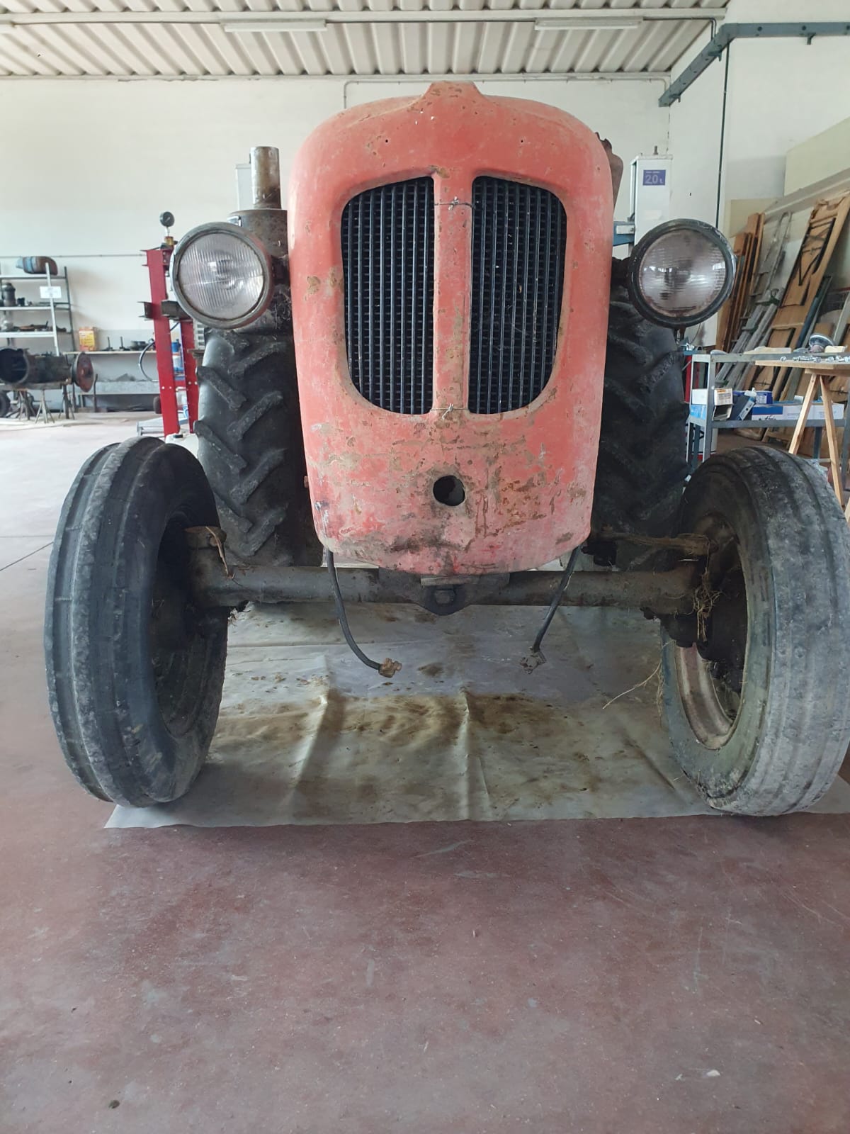 Lamborghini DL 30, Baujahr 1955, ID 039. Ein früher DL mit MWM-Diesel (33 PS, 2.360 cm³). Der Weg: ehrlicher Ursprungszustand → Vollzerlegung → neu aufgebautes, belastbares Arbeits- und Sammlerstück. Fix gesetzt: Elektrik komplett neu, alle Dichtungen nach TM-Spezifikation „Made in Austria“, Felgen Hochglanz-pulverbeschichtet, Original-Traktormeter in Originalausführung nachproduziert.