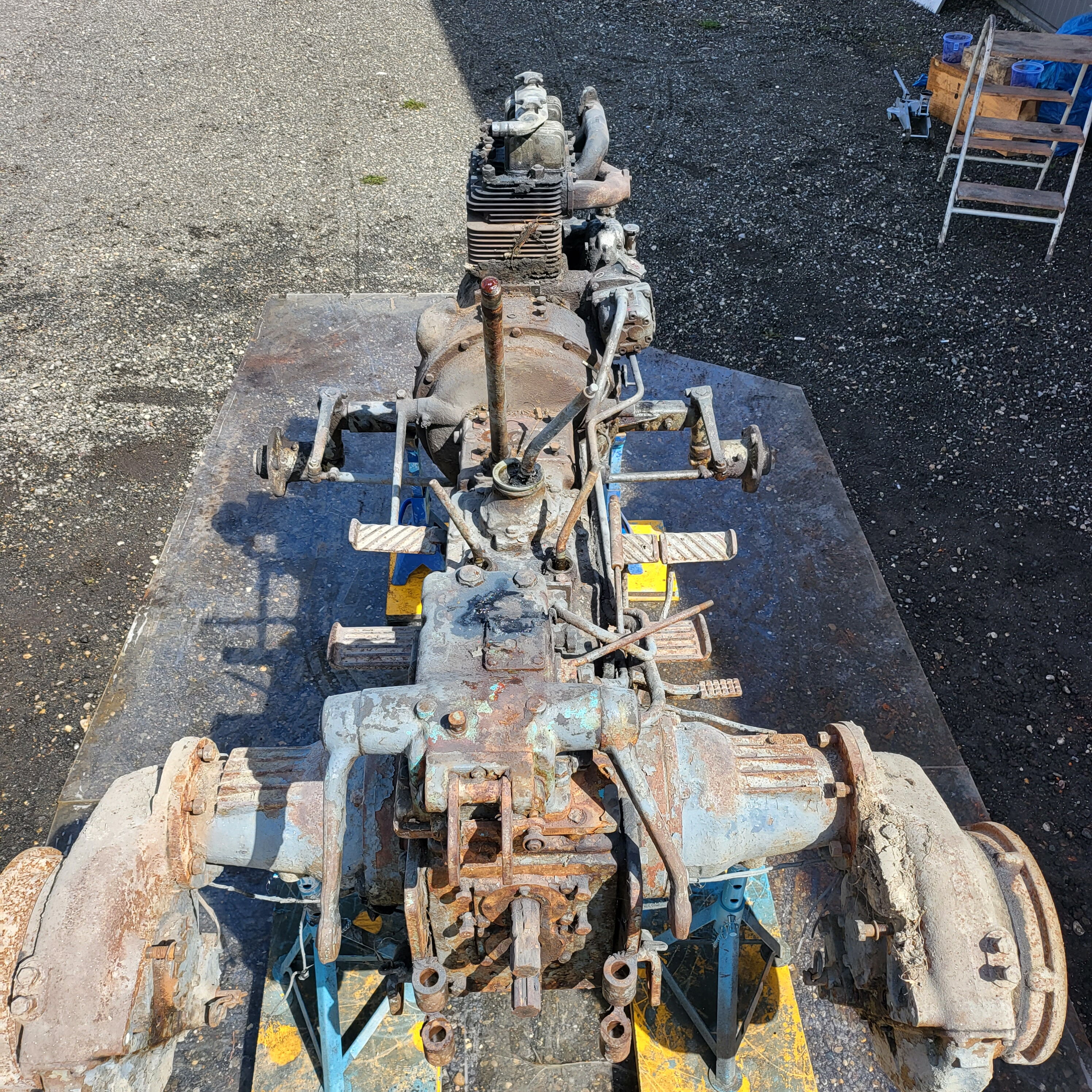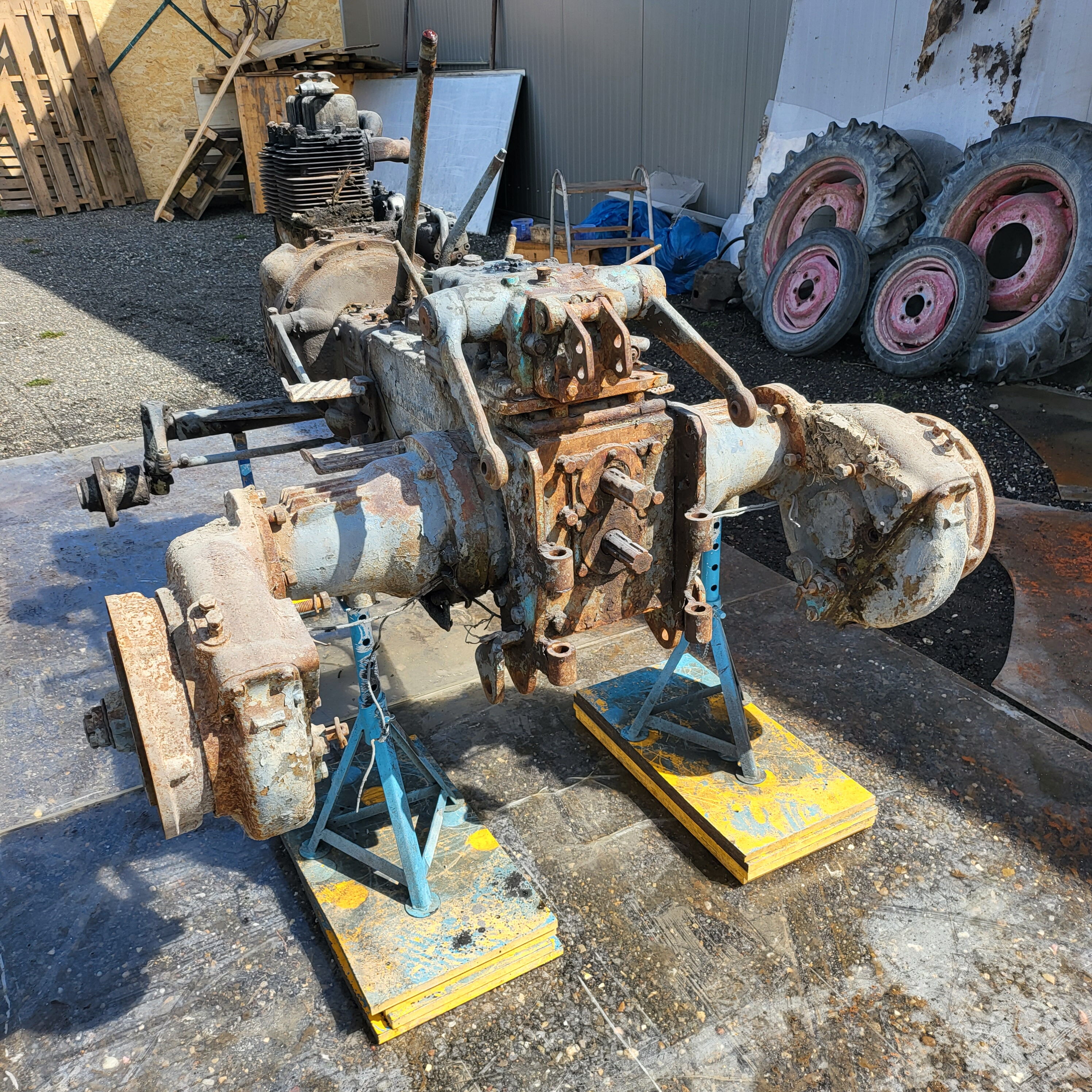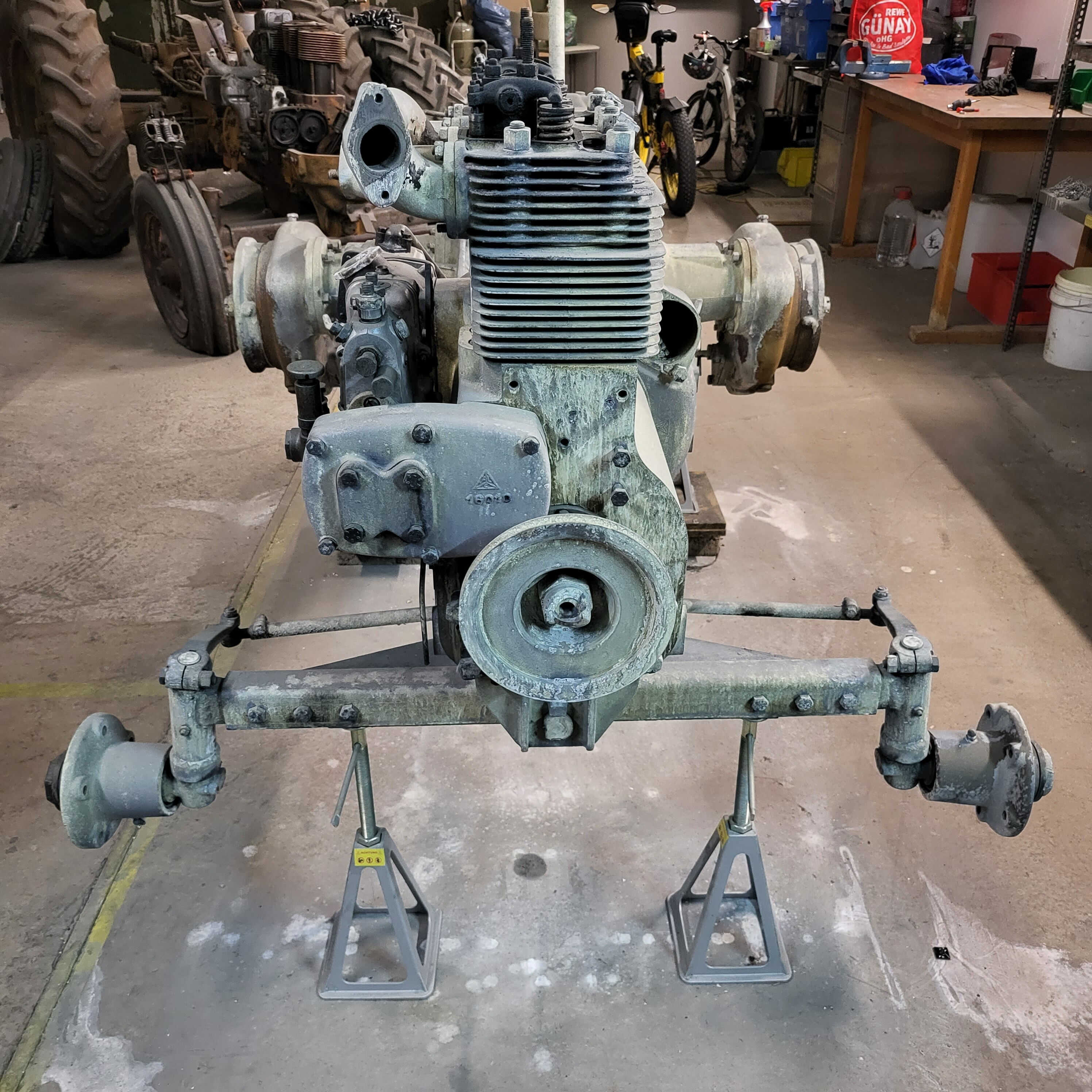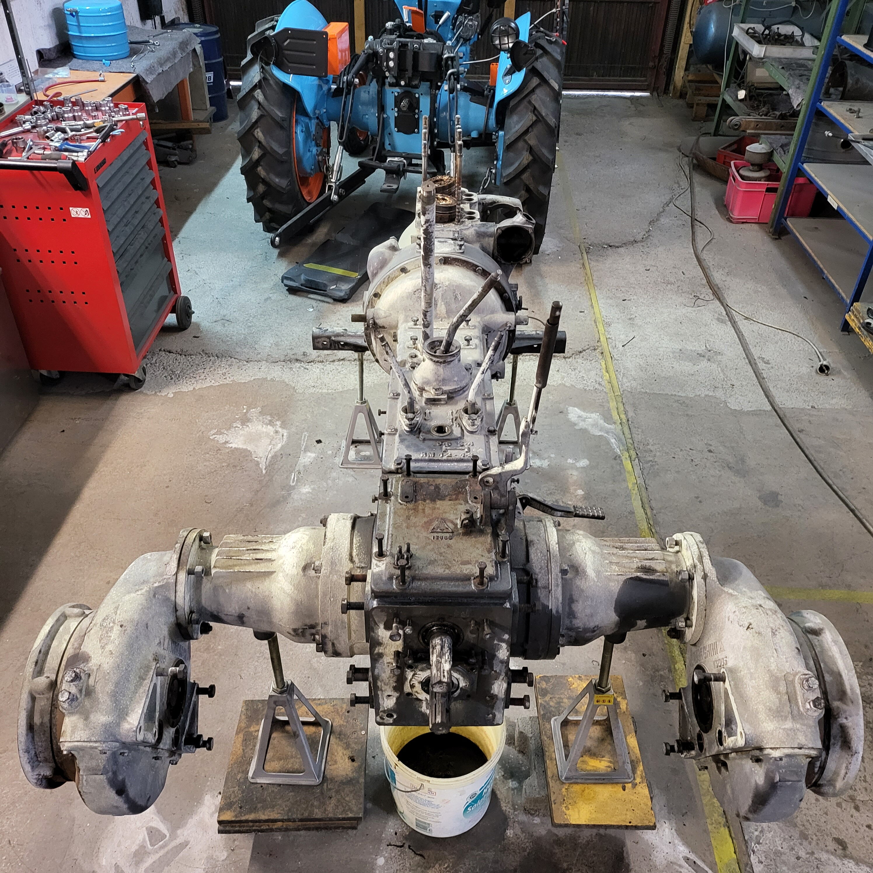 Wir zerlegen sie bis zur letzten Schraube. Rahmen, Achsen, Getriebe, Motor. Nichts bleibt verborgen. Du siehst den echten Zustand vor dem Strahlen – und direkt danach. Kein hübsch poliertes Prospektfoto, sondern ehrliche Technik, die jahrzehntelang geschuftet hat.