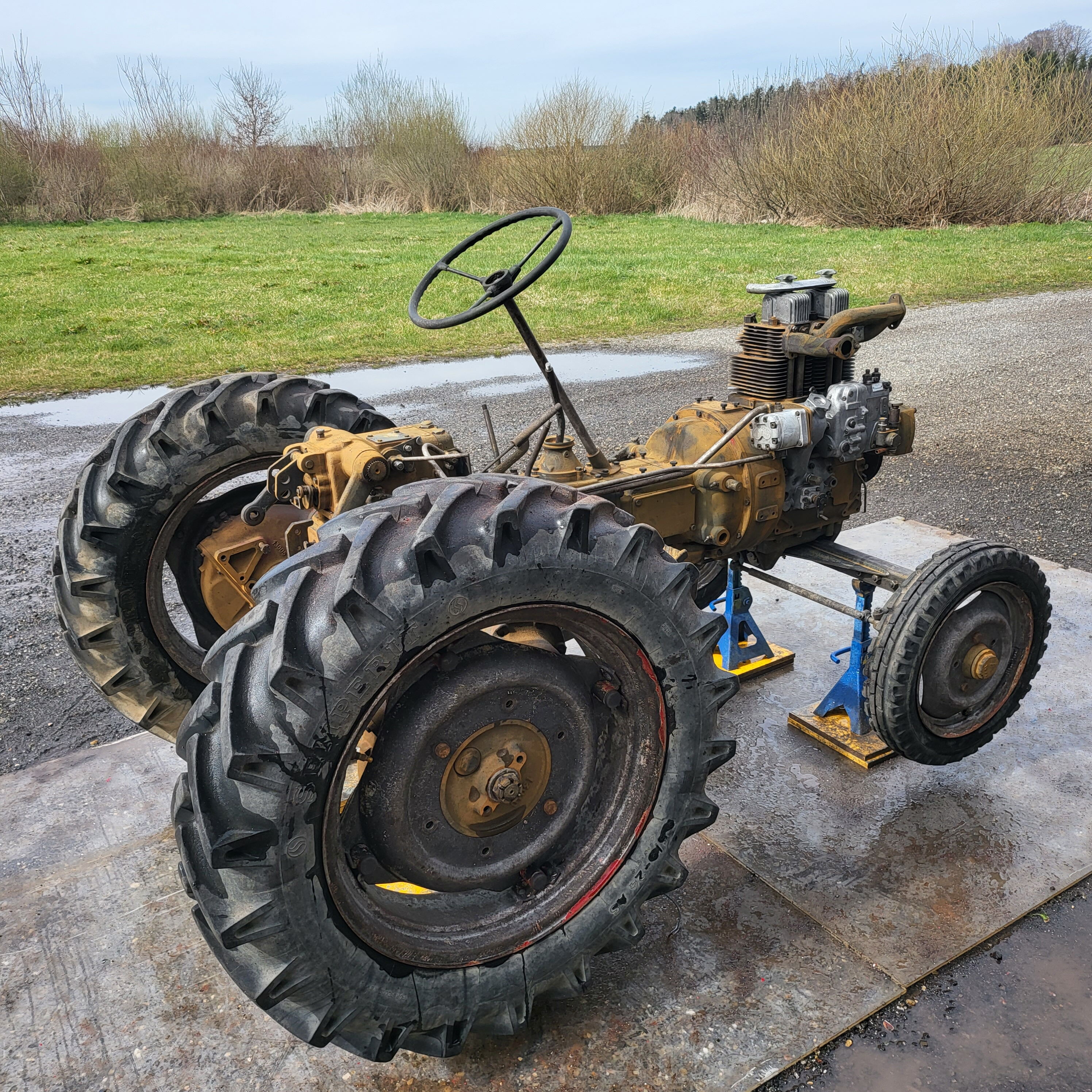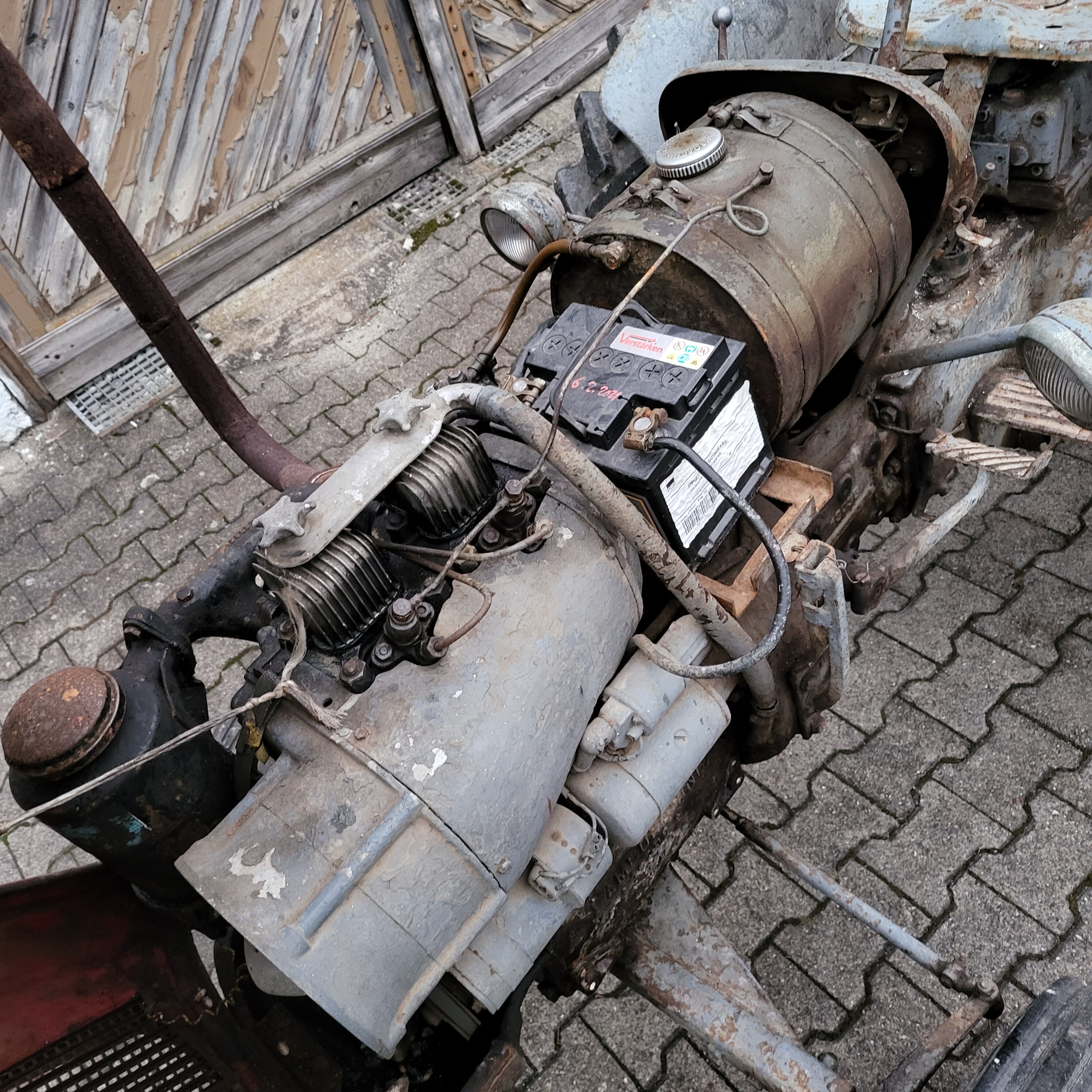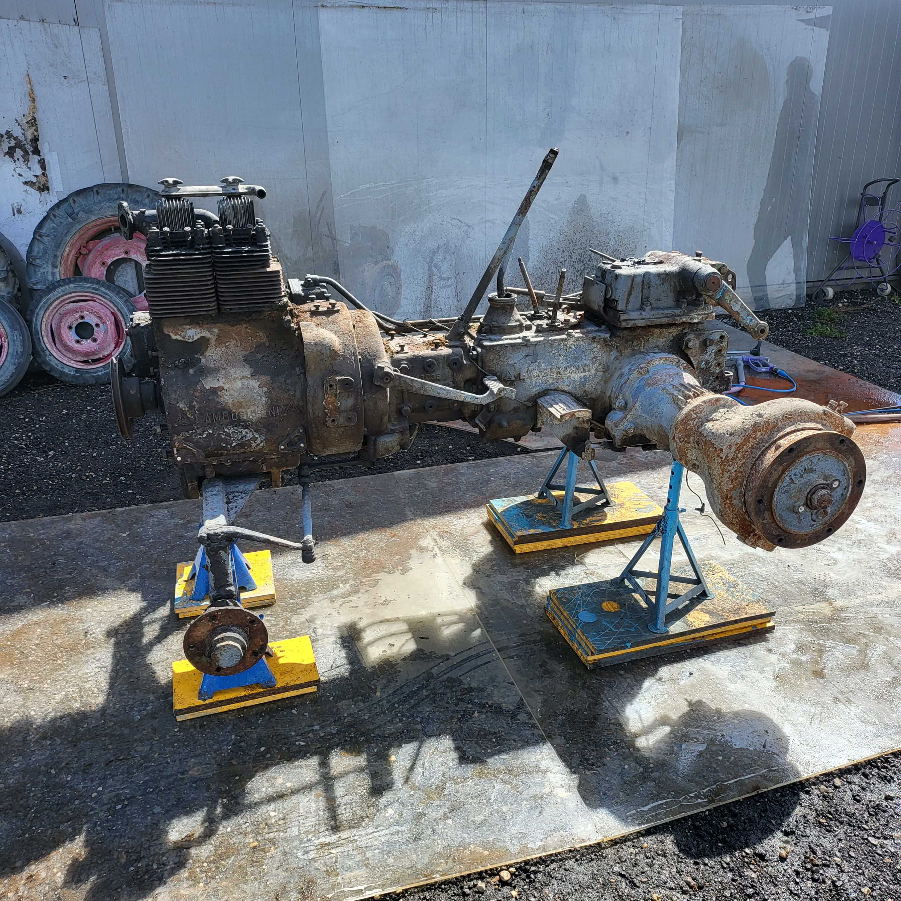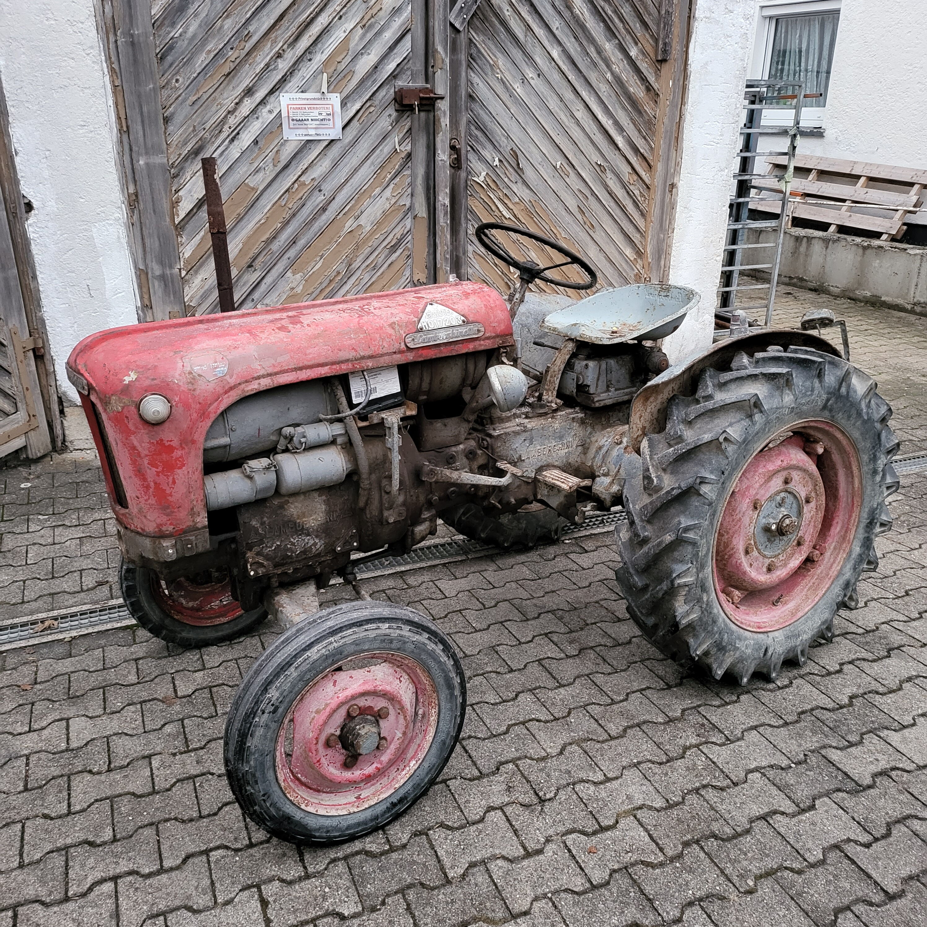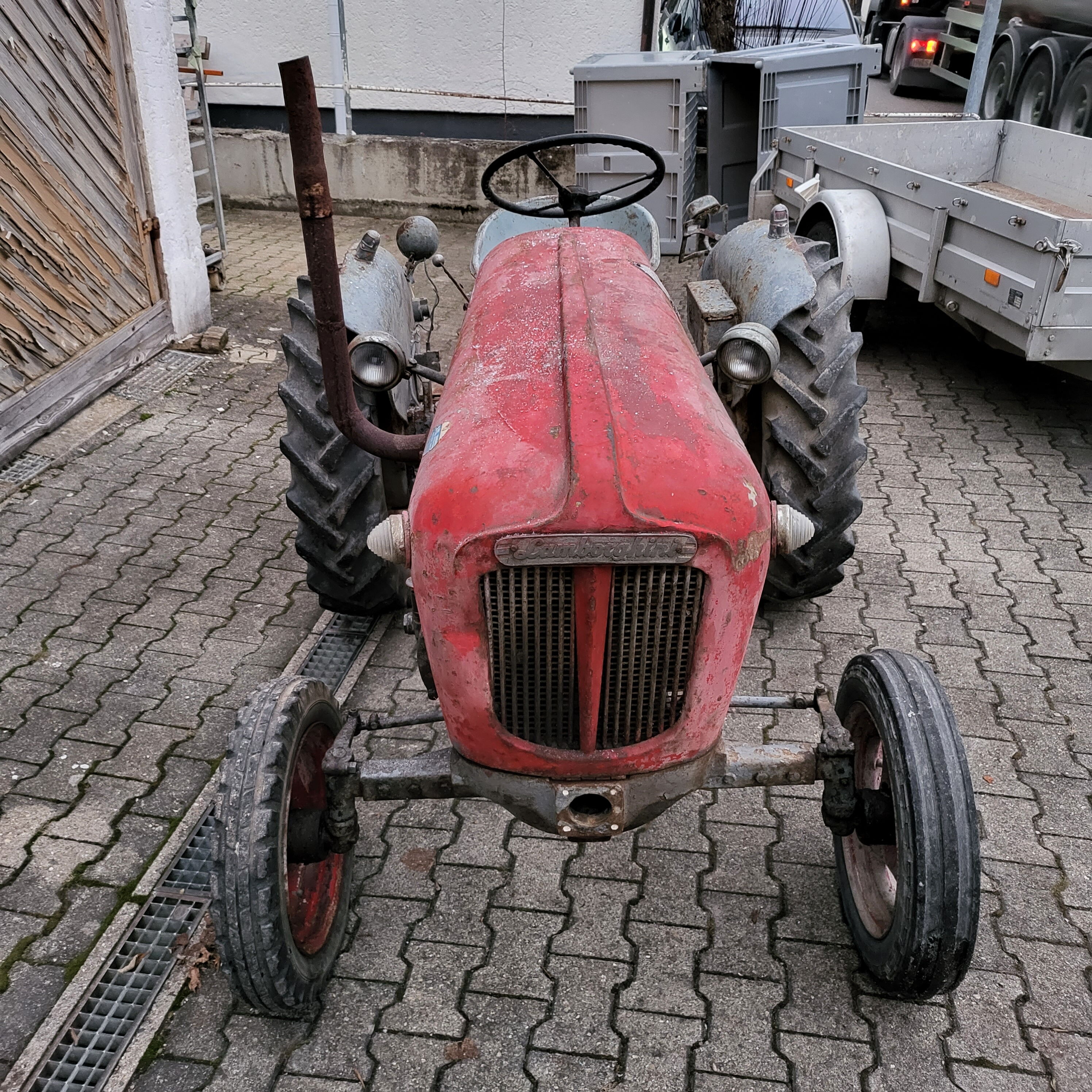 So stand sie vor uns: verwittert, rostig, müde – aber komplett. Eine originale Lamborghini Lamborghinetta. Gebaut in einer Zeit, in der man nichts weggeworfen hat, sondern repariert. Gebaut, um zu arbeiten. Nicht, um schön zu sein. Angetrieben vom DL-20A-Dieselmotor – 22 PS bei 1.900 U/min.