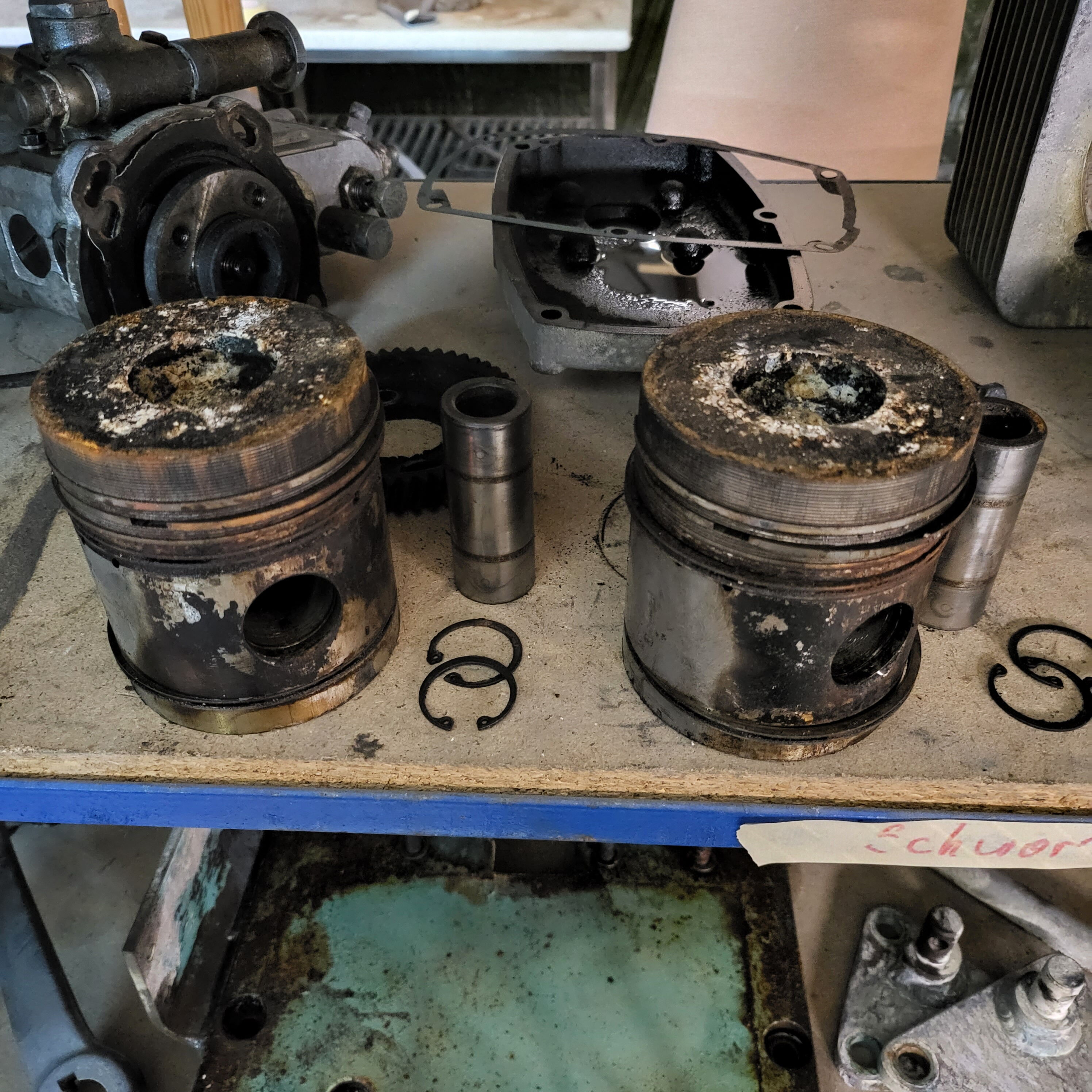 Getriebe offen. Motor geöffnet. Bauteile gereinigt, vermessen, bewertet. Viele Teile sind schon wieder bereit für ihr zweites Leben – andere warten noch auf Zuwendung, auf Passungen, auf perfekte Oberfläche.