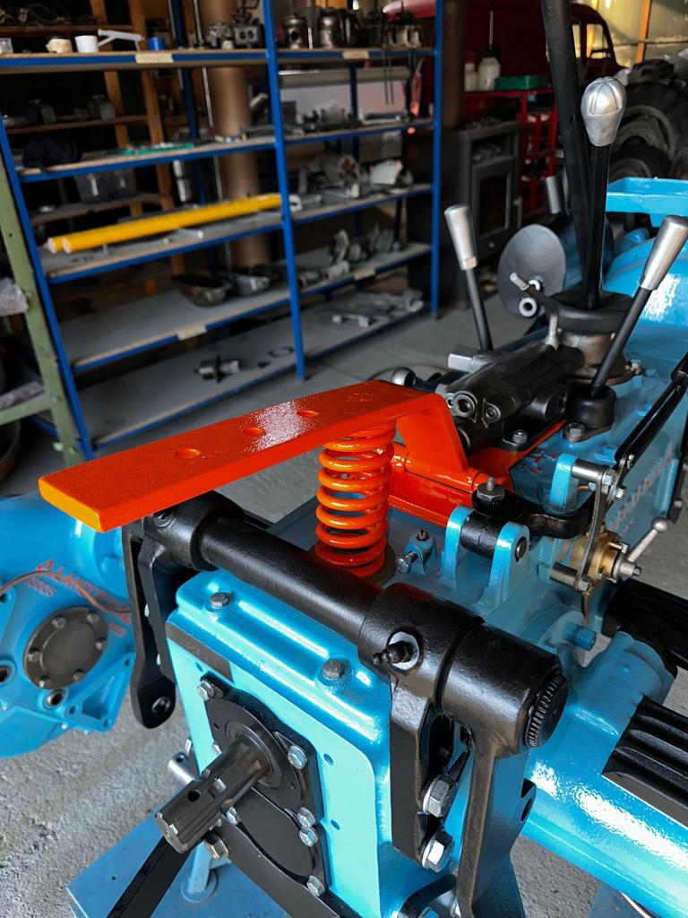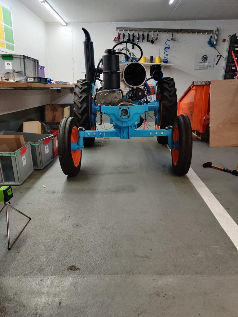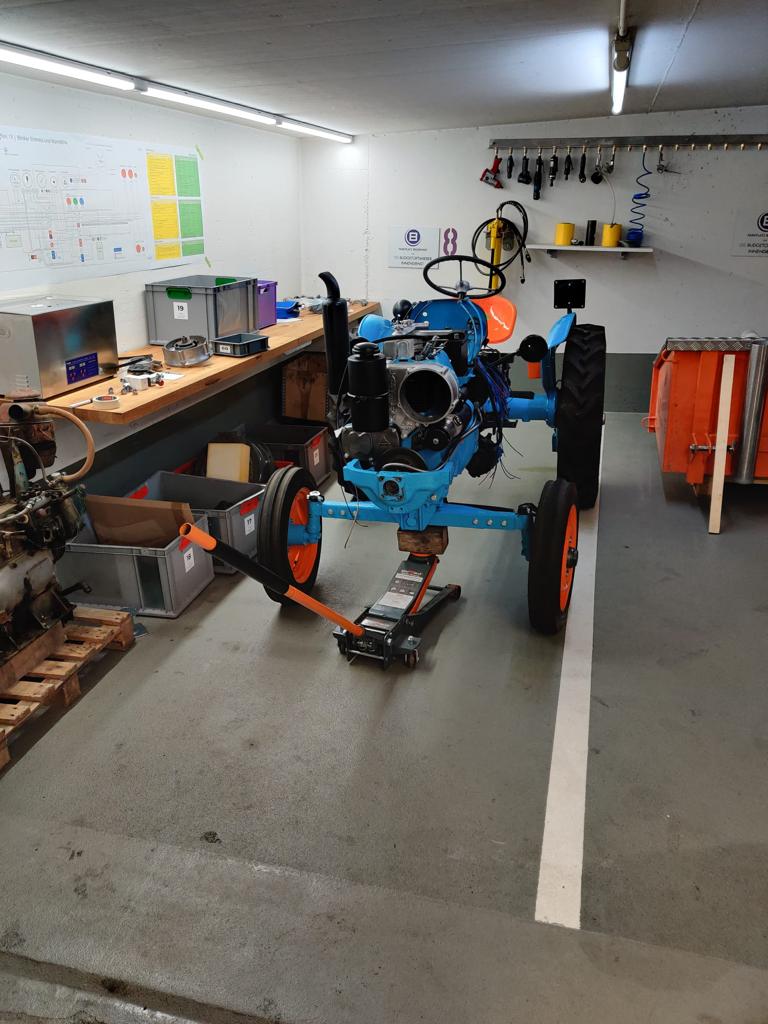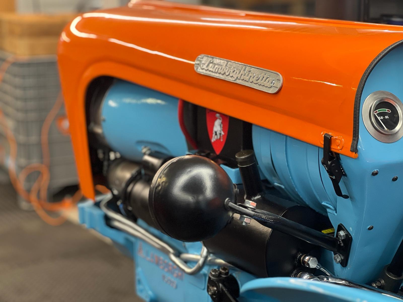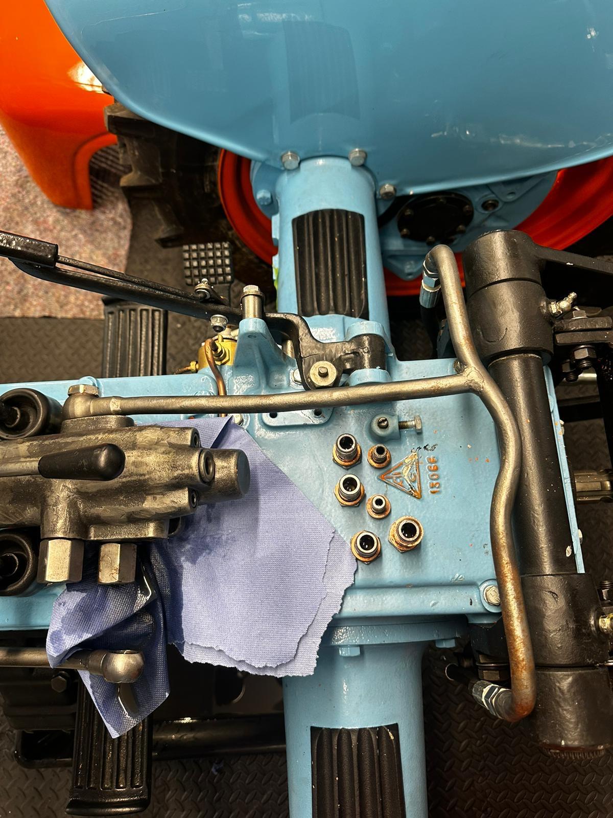 Was hier glänzt, ist Substanz. Das historische Azzurro (Azurblau) mit Arancio (Orange) ist kein Styling, sondern eine Hommage an die Werksfarben der Traktoren – präzise abgemischt, auf eine Technik gelegt, die wir Schraube für Schraube neu aufgebaut haben. Jeder Radius, jede Fase, jede Schelle folgt einer Logik: Vollzerlegung, Maßhaltigkeit, Funktionssicherheit.