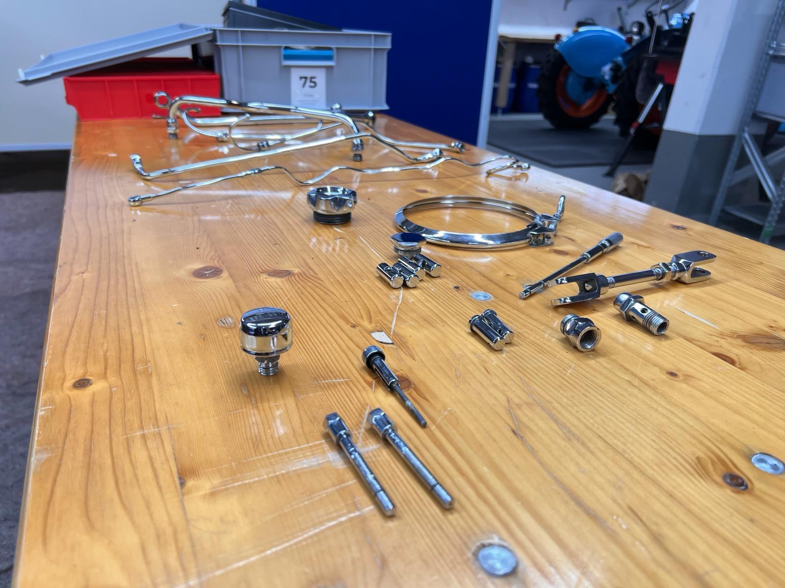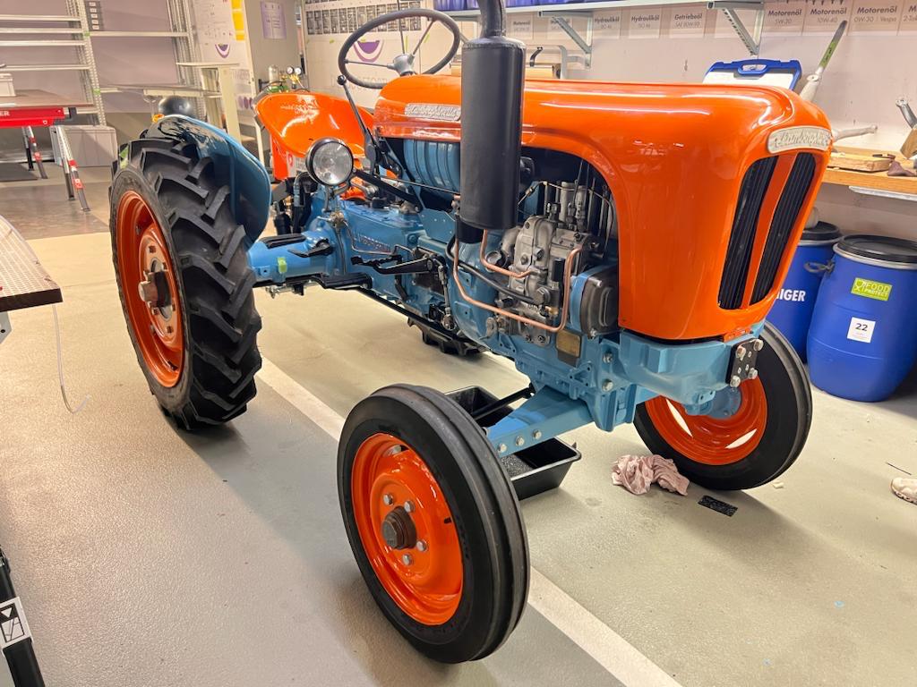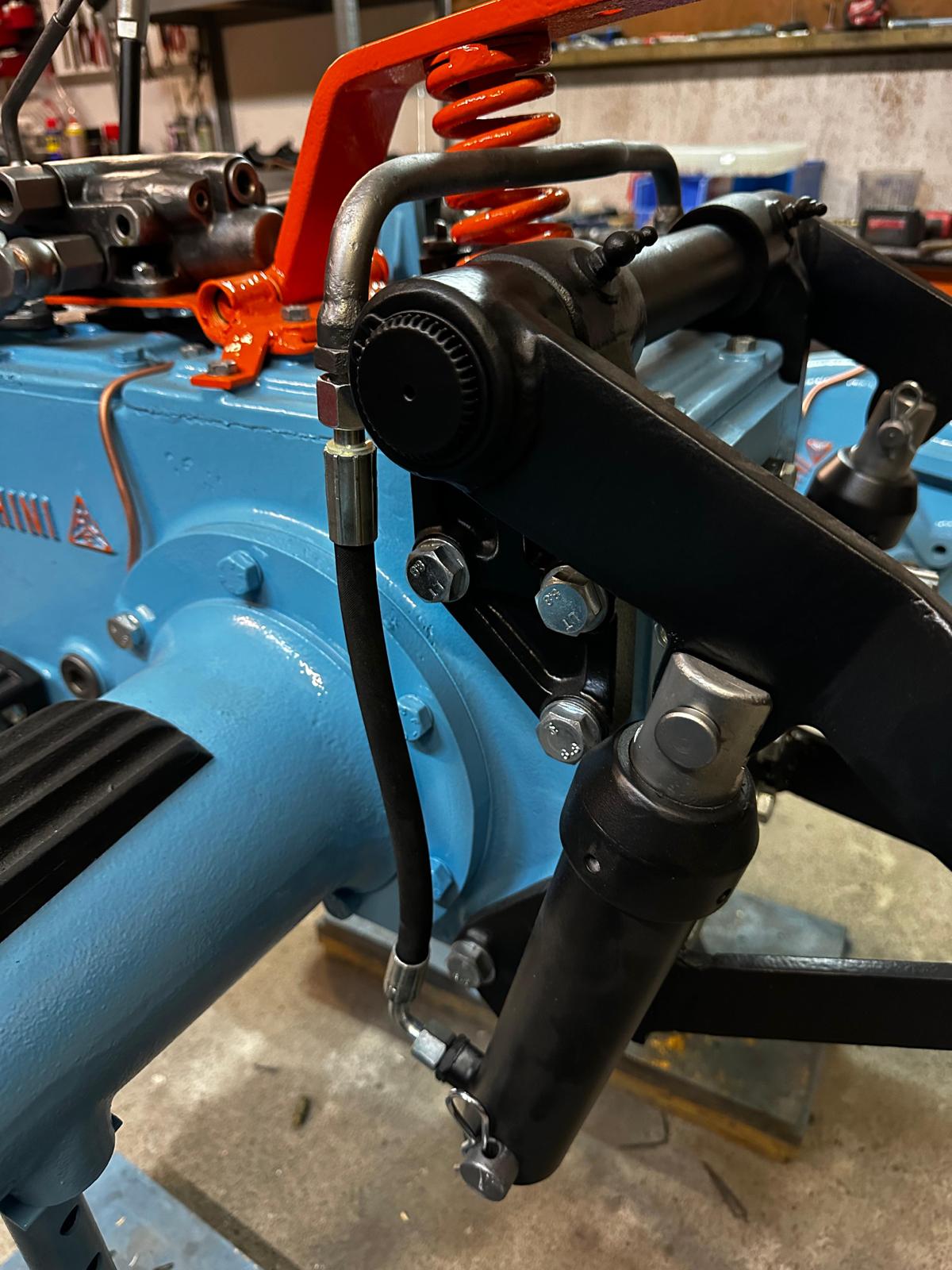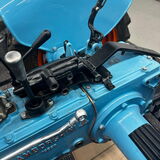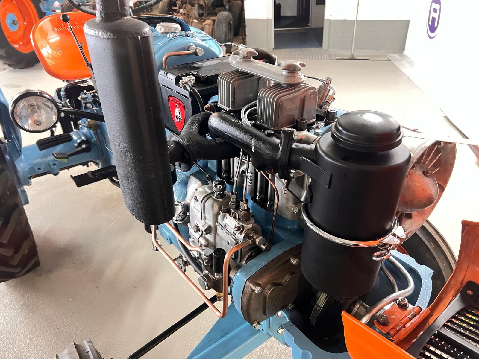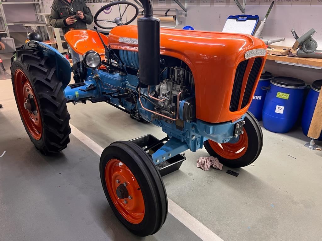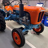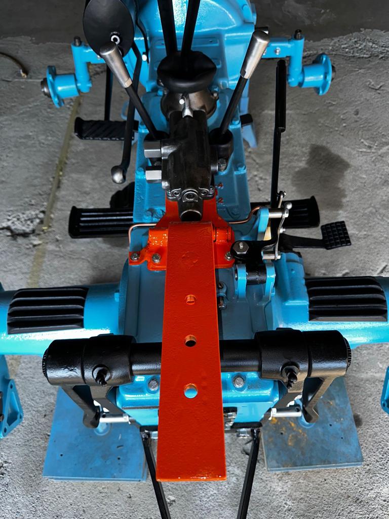 Was hier glänzt, ist Substanz. Das historische Azzurro (Azurblau) mit Arancio (Orange) ist kein Styling, sondern eine Hommage an die Werksfarben der Traktoren – präzise abgemischt, auf eine Technik gelegt, die wir Schraube für Schraube neu aufgebaut haben. Jeder Radius, jede Fase, jede Schelle folgt einer Logik: Vollzerlegung, Maßhaltigkeit, Funktionssicherheit.