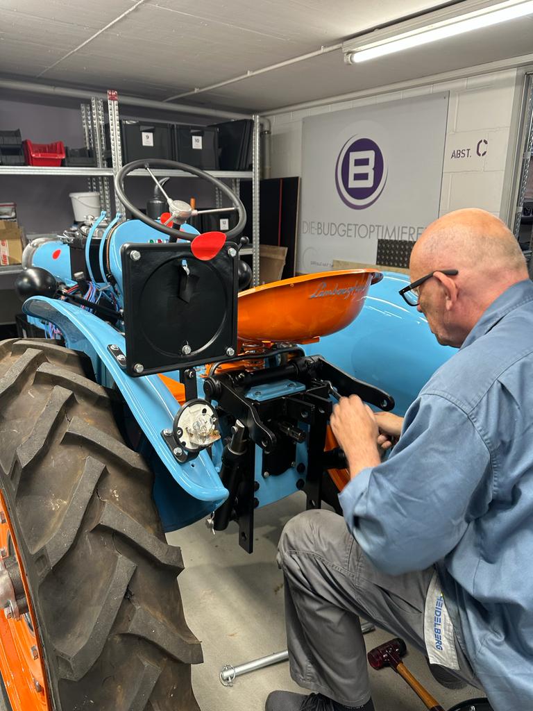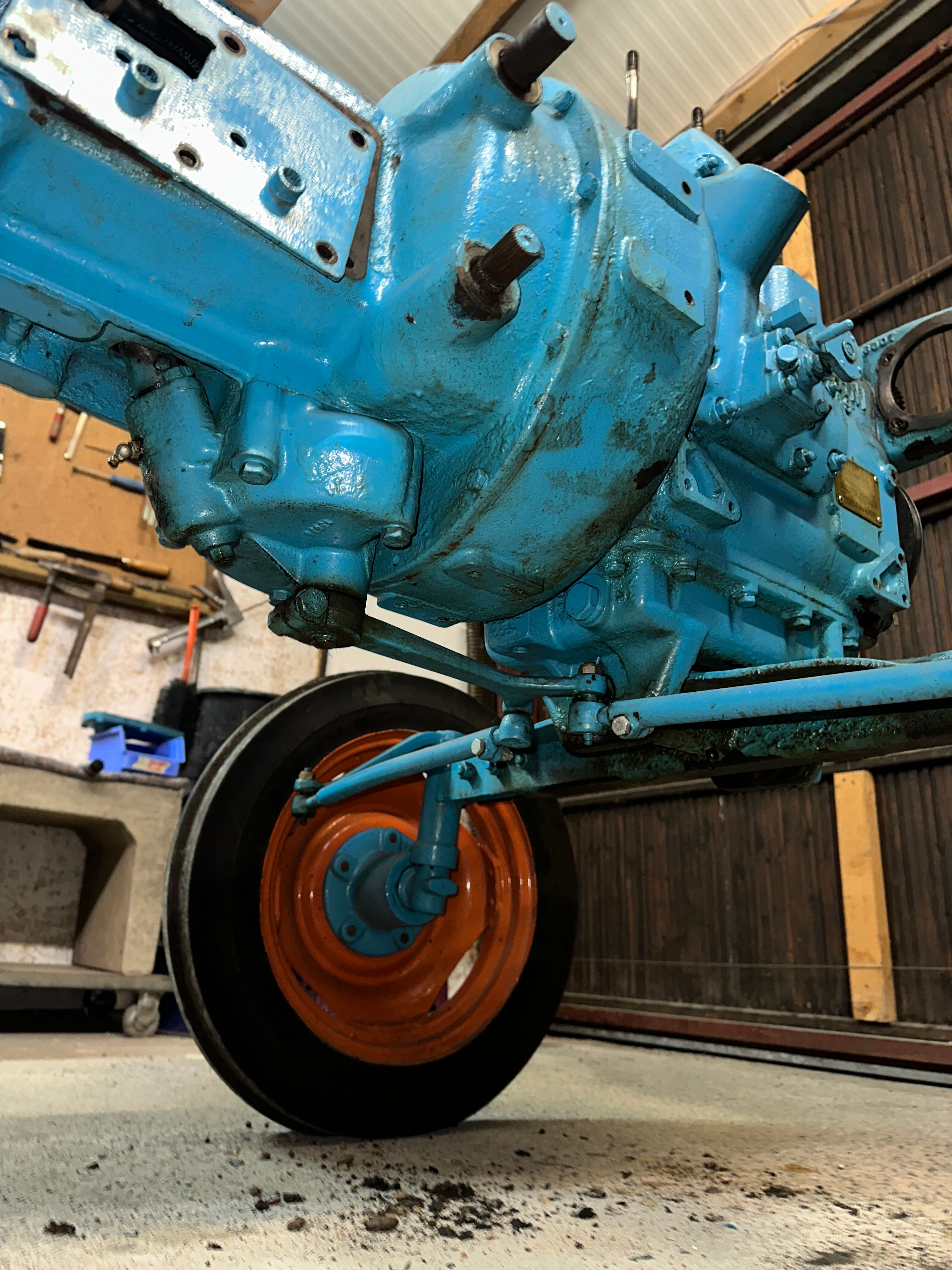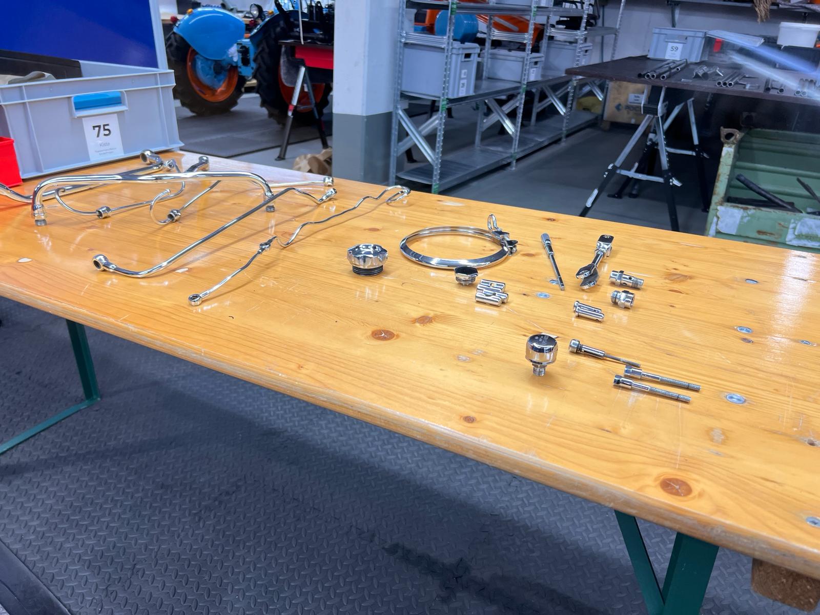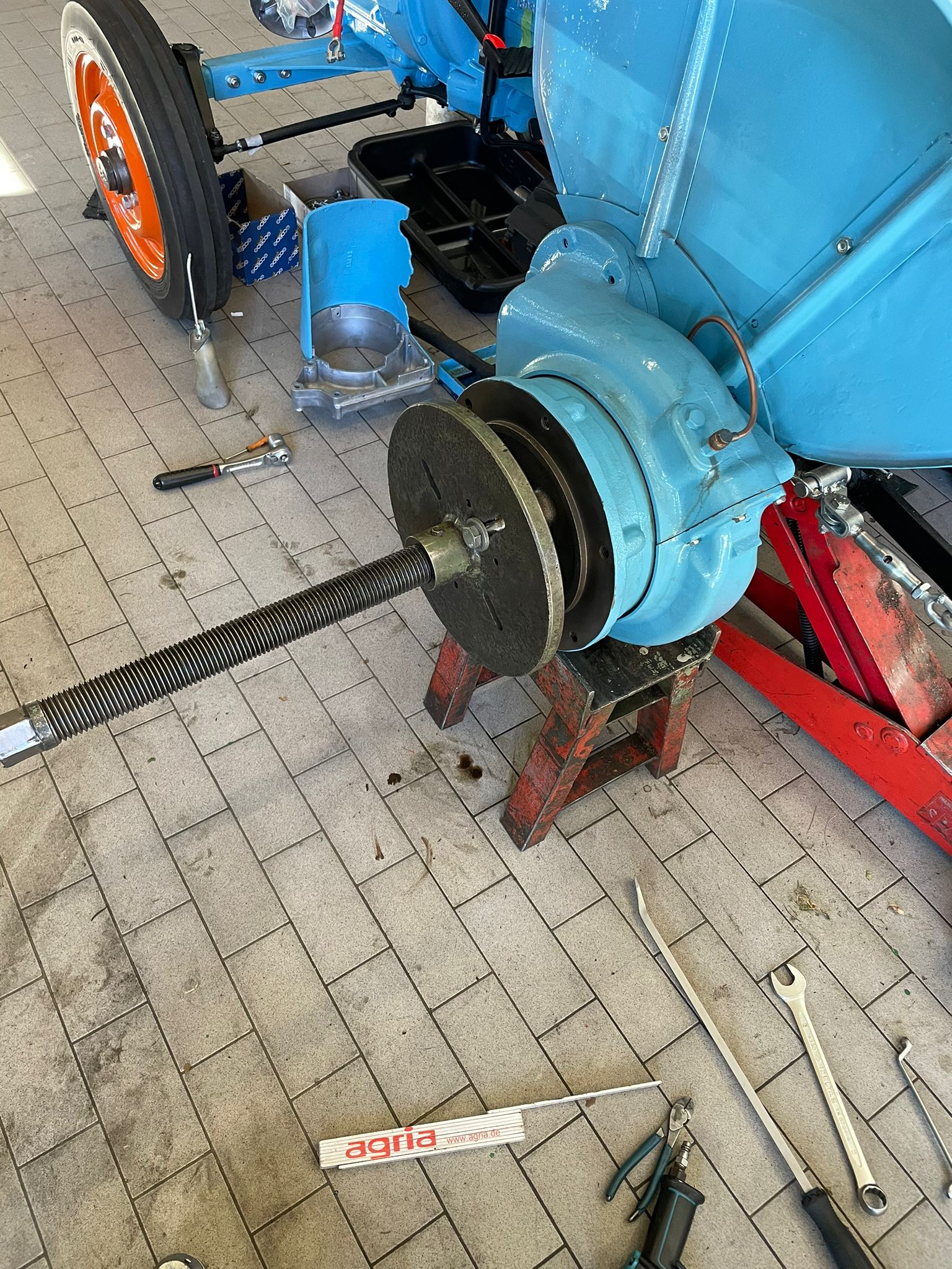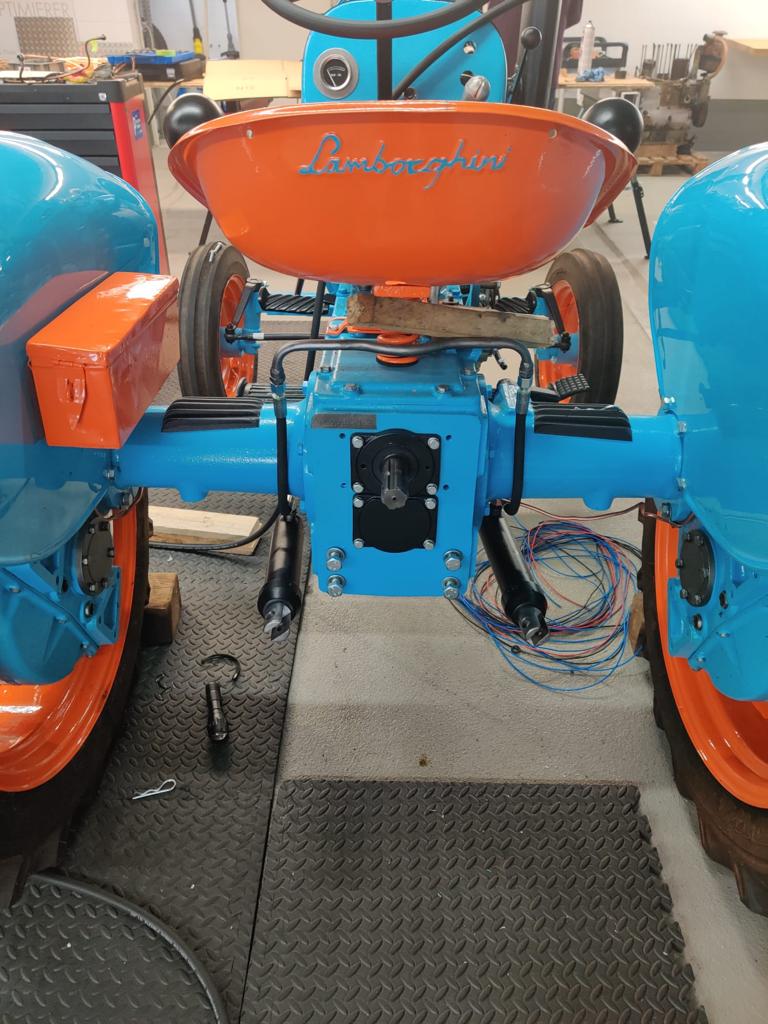 Was hier glänzt, ist Substanz. Das historische Azzurro (Azurblau) mit Arancio (Orange) ist kein Styling, sondern eine Hommage an die Werksfarben der Traktoren – präzise abgemischt, auf eine Technik gelegt, die wir Schraube für Schraube neu aufgebaut haben. Jeder Radius, jede Fase, jede Schelle folgt einer Logik: Vollzerlegung, Maßhaltigkeit, Funktionssicherheit.