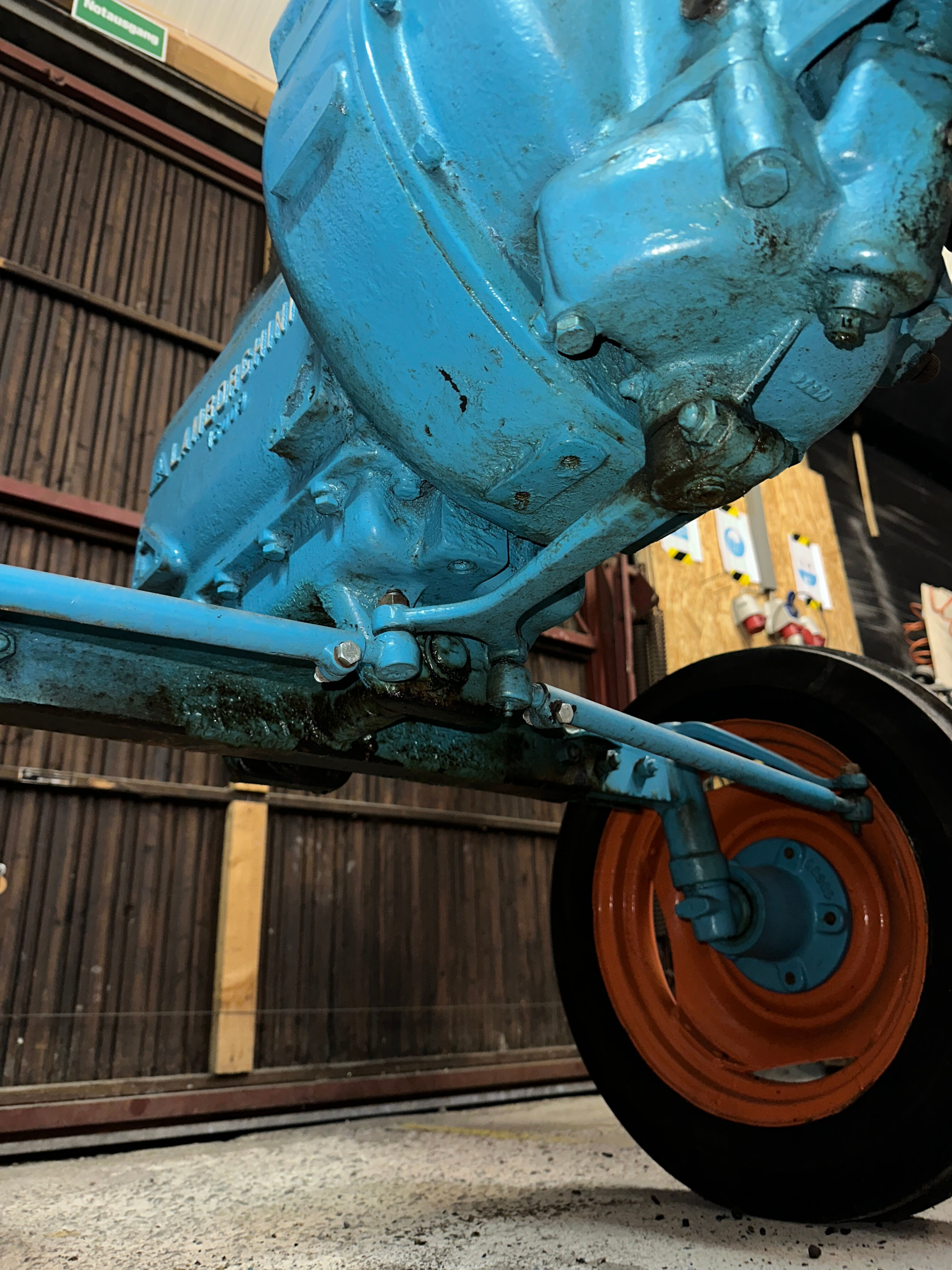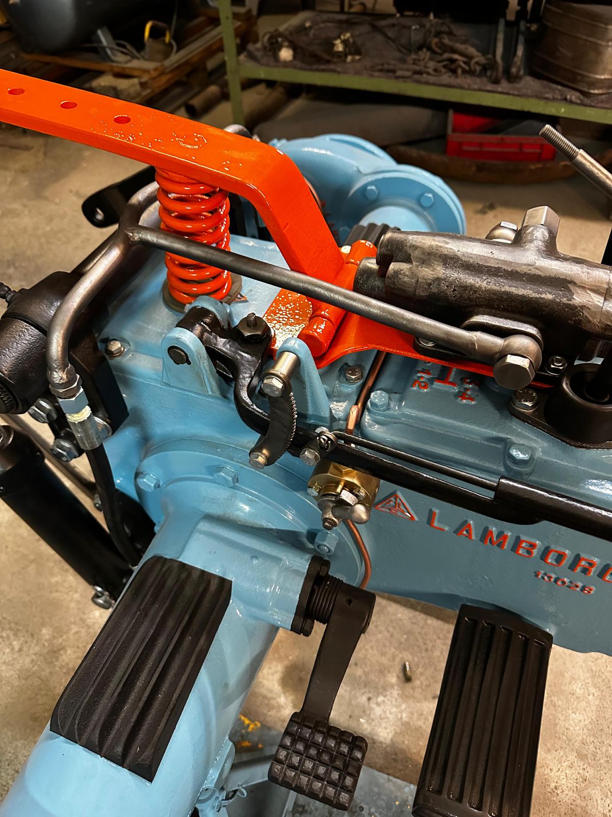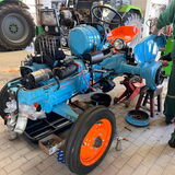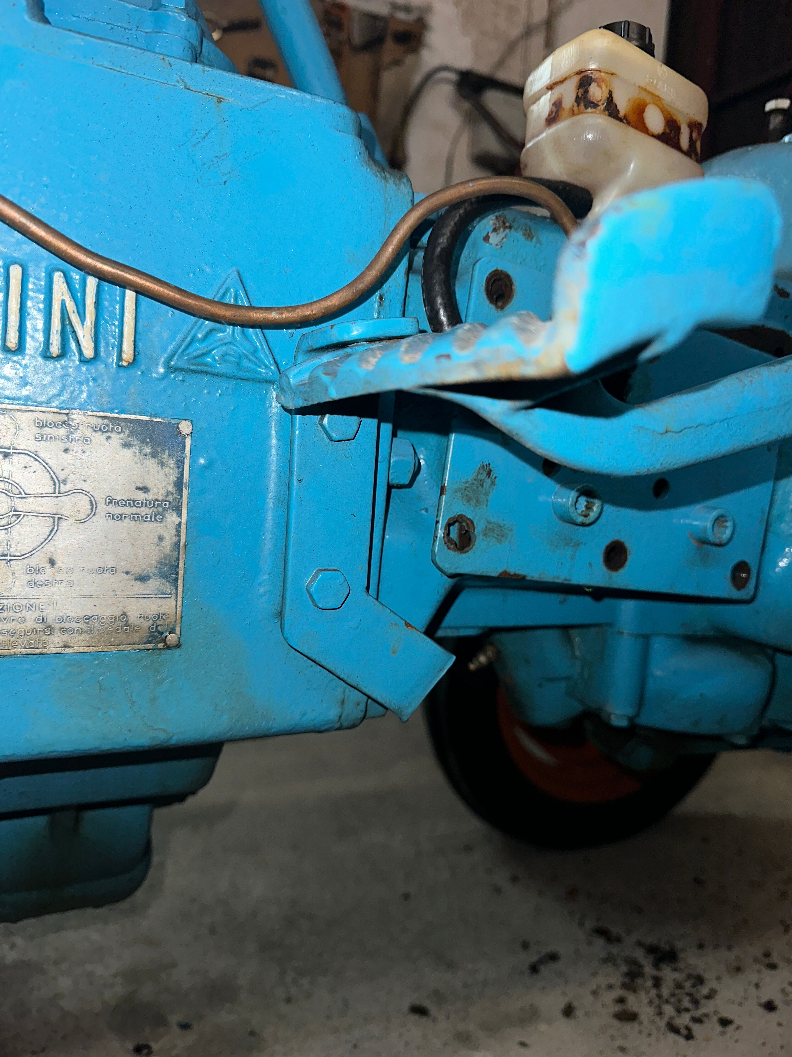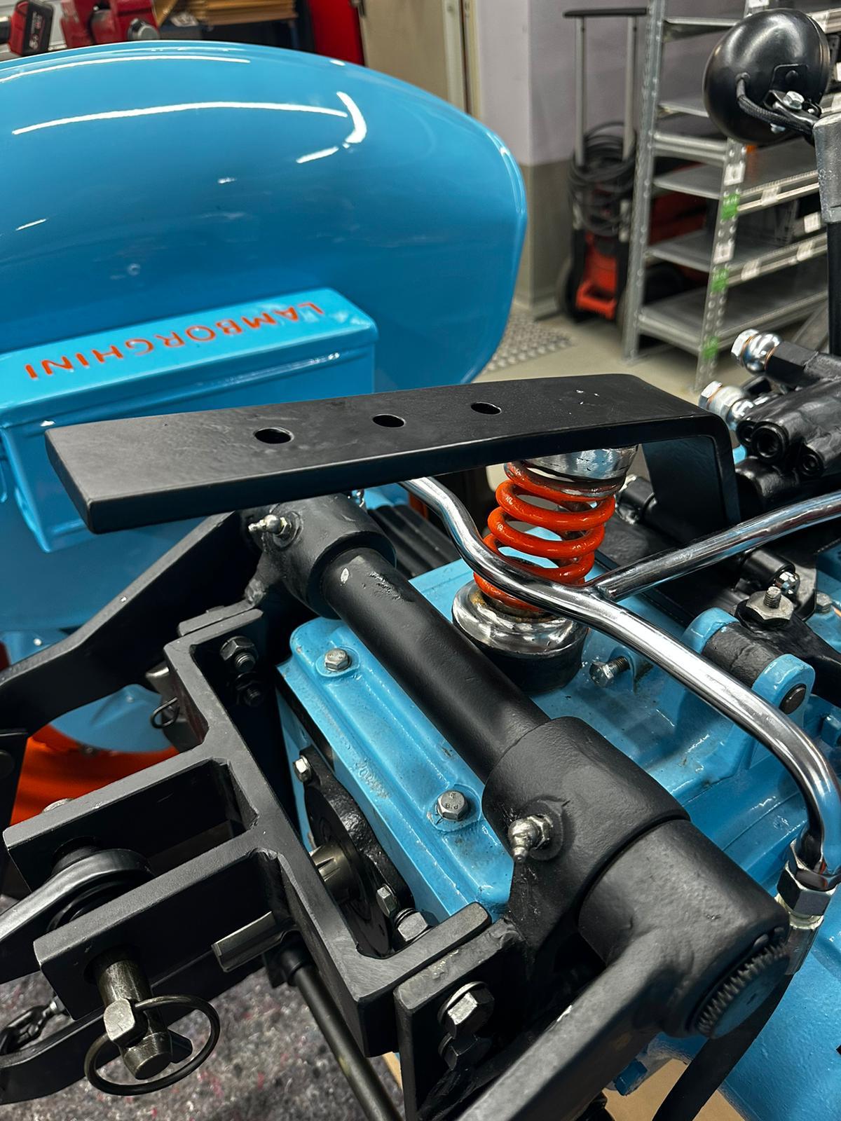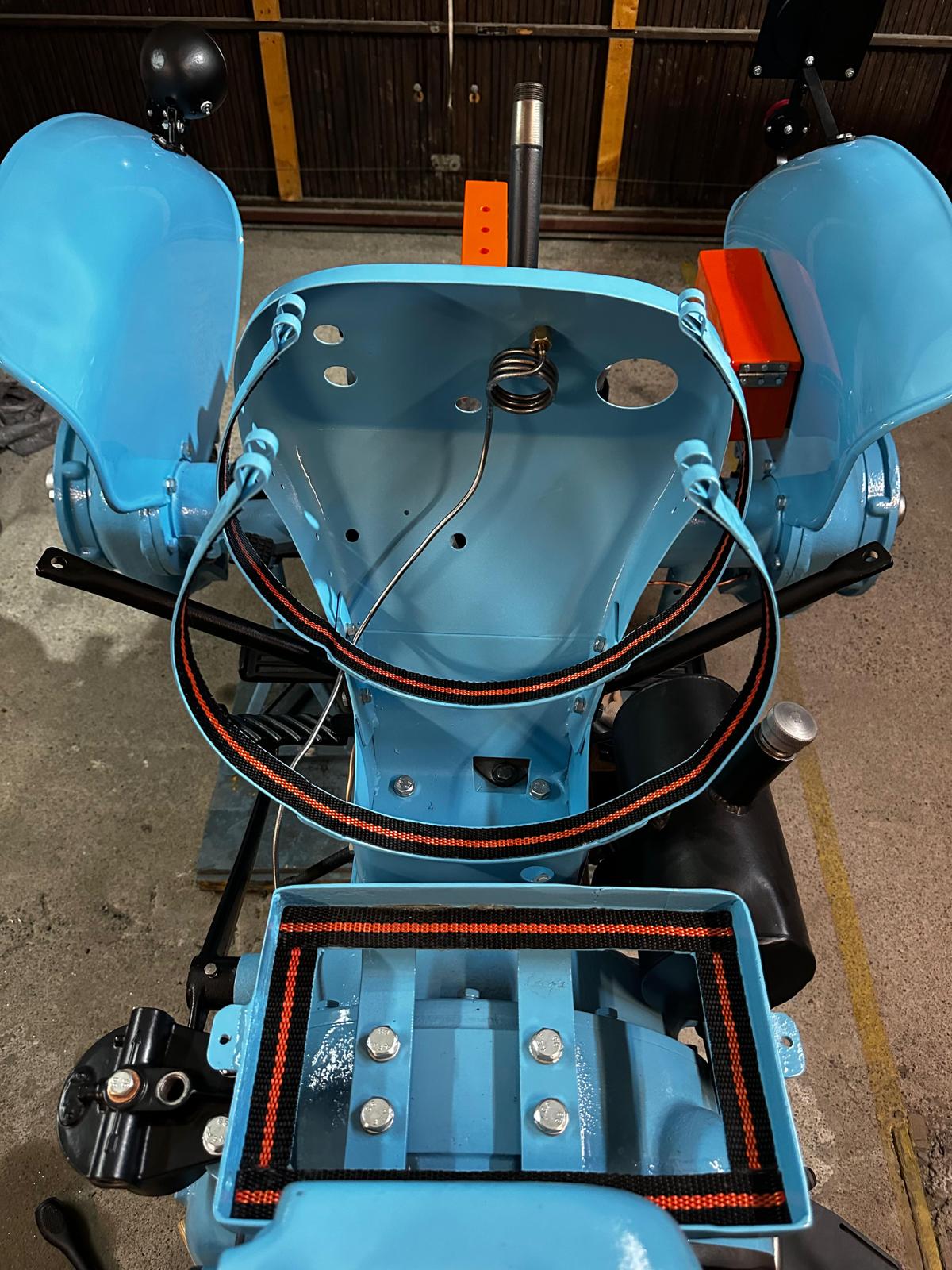 Was hier glänzt, ist Substanz. Das historische Azzurro (Azurblau) mit Arancio (Orange) ist kein Styling, sondern eine Hommage an die Werksfarben der Traktoren – präzise abgemischt, auf eine Technik gelegt, die wir Schraube für Schraube neu aufgebaut haben. Jeder Radius, jede Fase, jede Schelle folgt einer Logik: Vollzerlegung, Maßhaltigkeit, Funktionssicherheit.