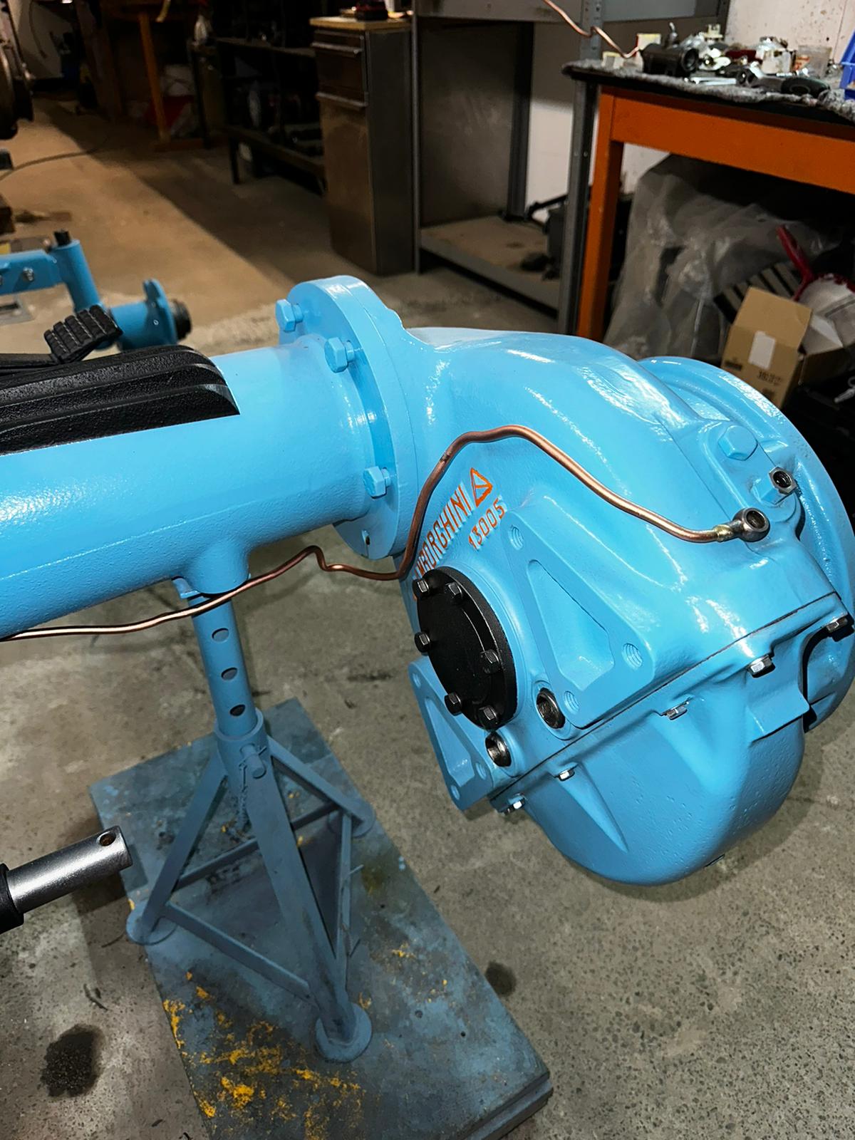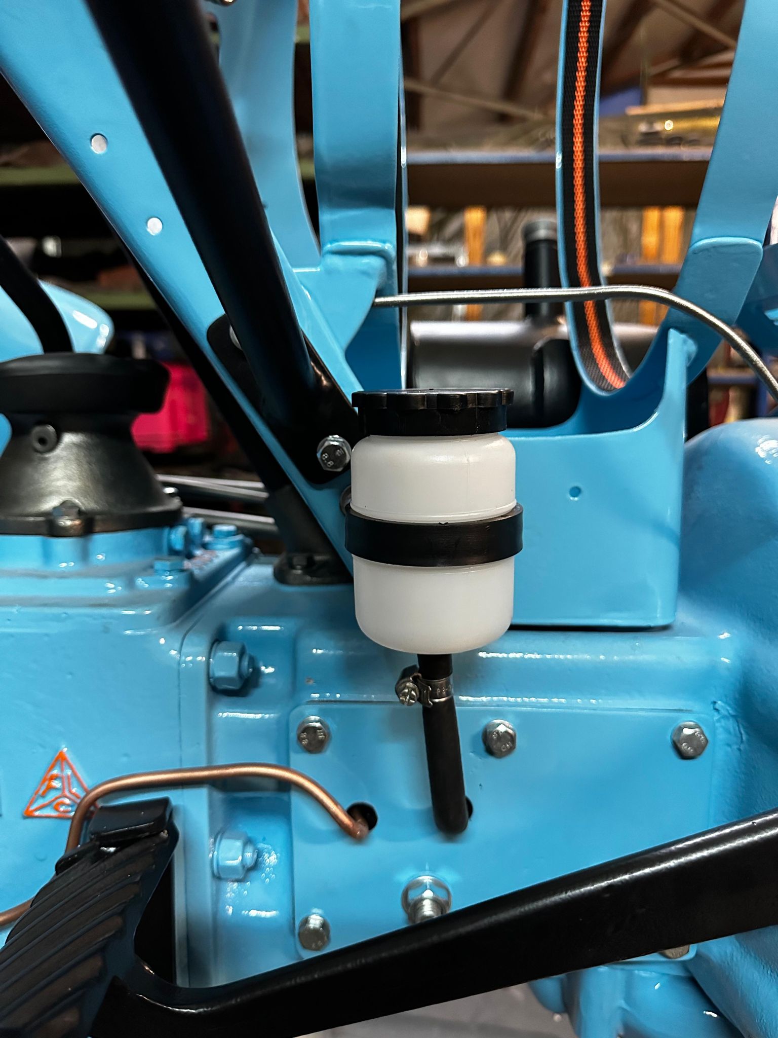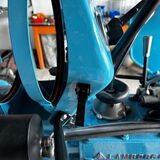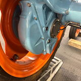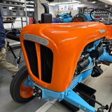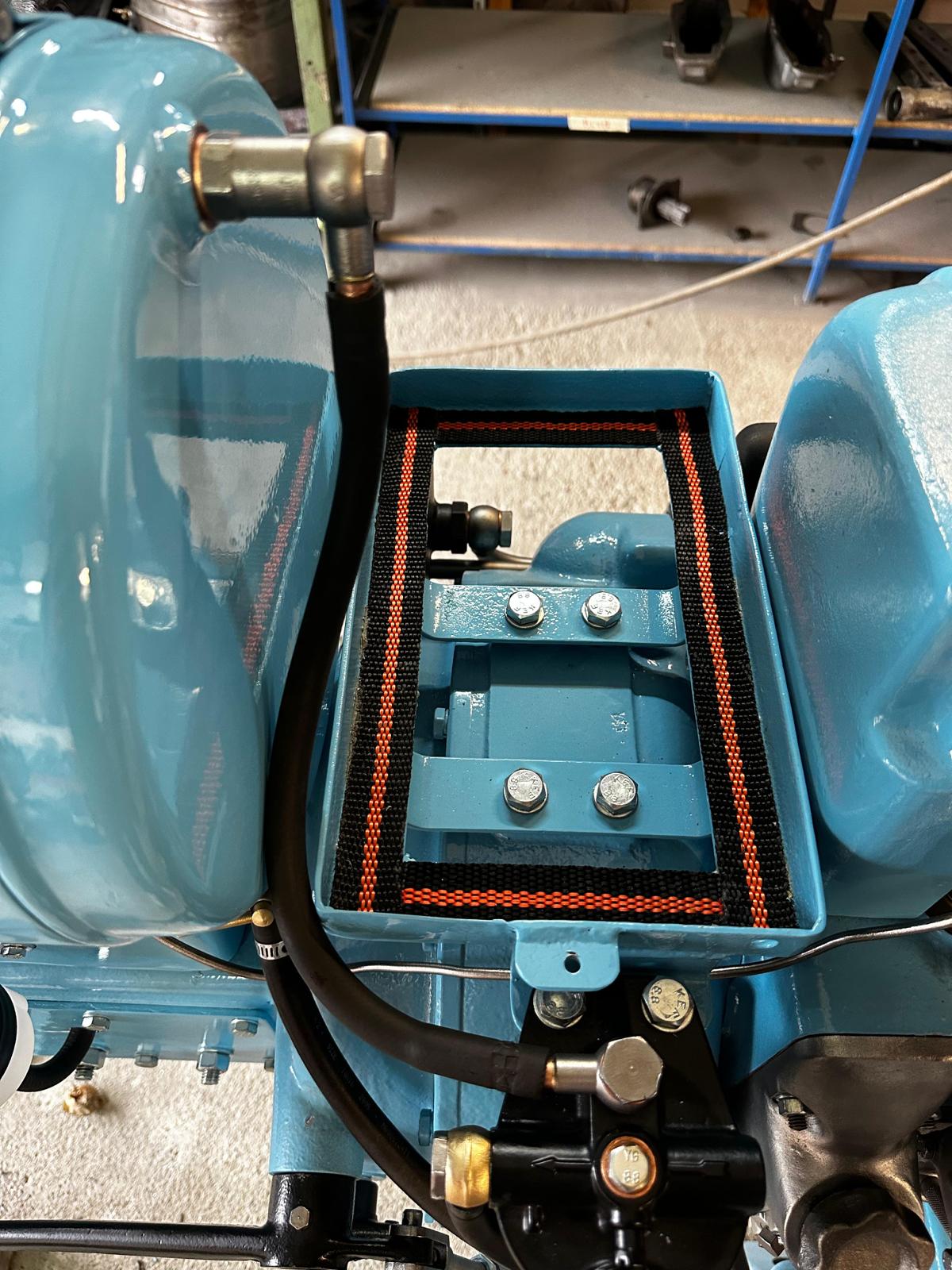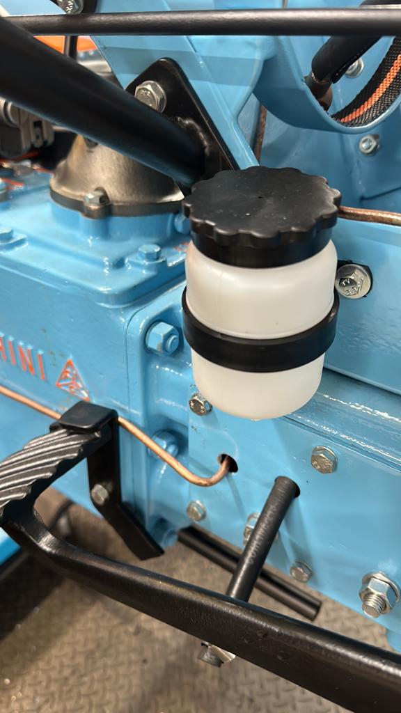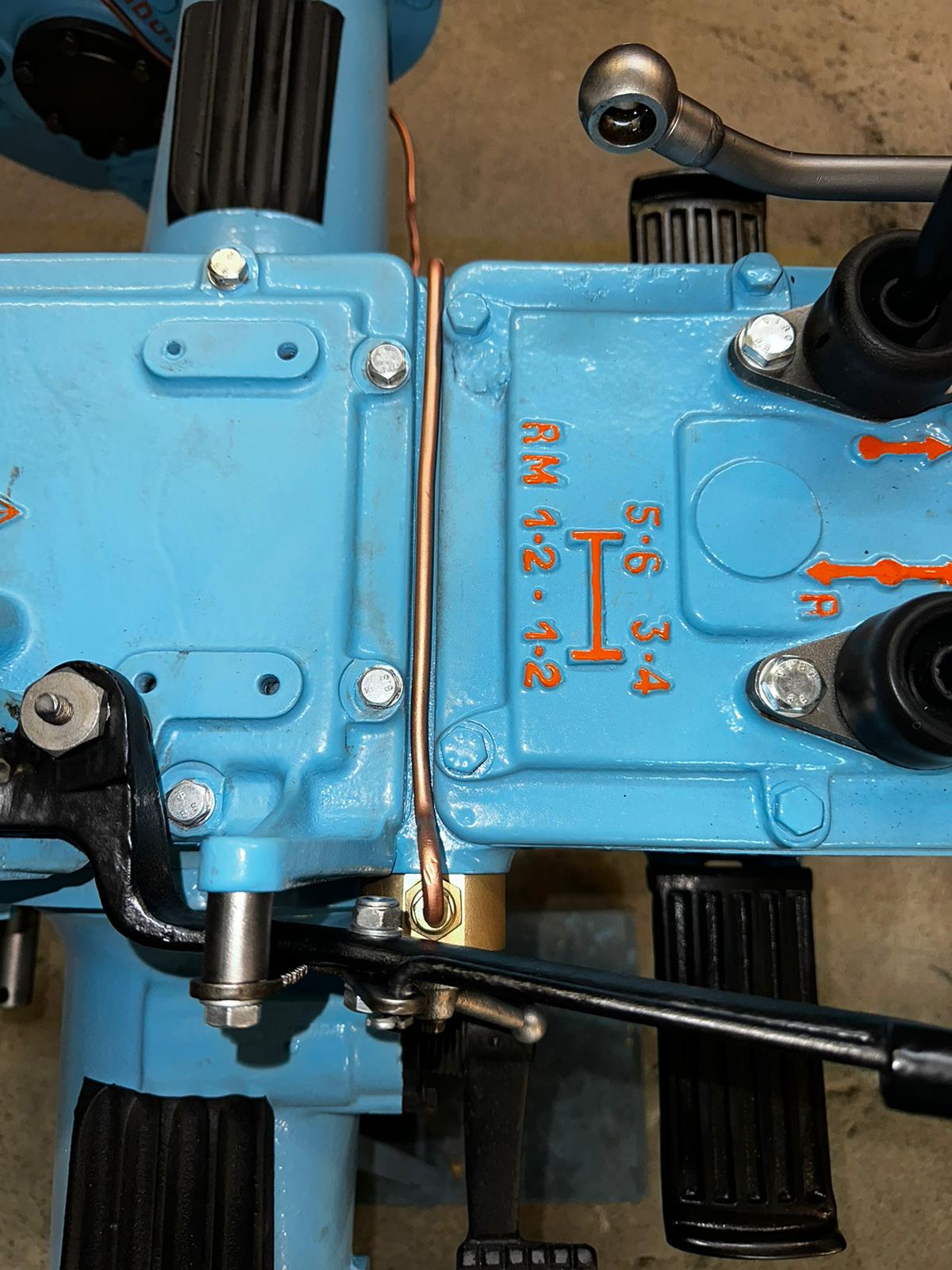 Was hier glänzt, ist Substanz. Das historische Azzurro (Azurblau) mit Arancio (Orange) ist kein Styling, sondern eine Hommage an die Werksfarben der Traktoren – präzise abgemischt, auf eine Technik gelegt, die wir Schraube für Schraube neu aufgebaut haben. Jeder Radius, jede Fase, jede Schelle folgt einer Logik: Vollzerlegung, Maßhaltigkeit, Funktionssicherheit.