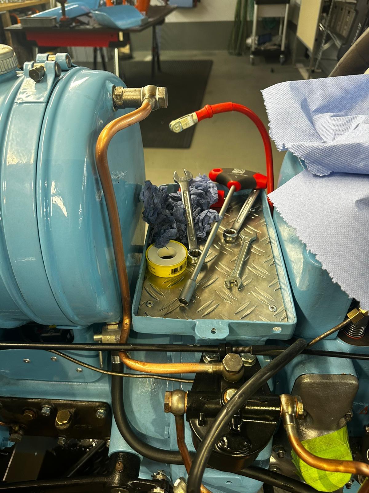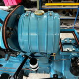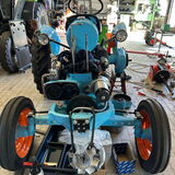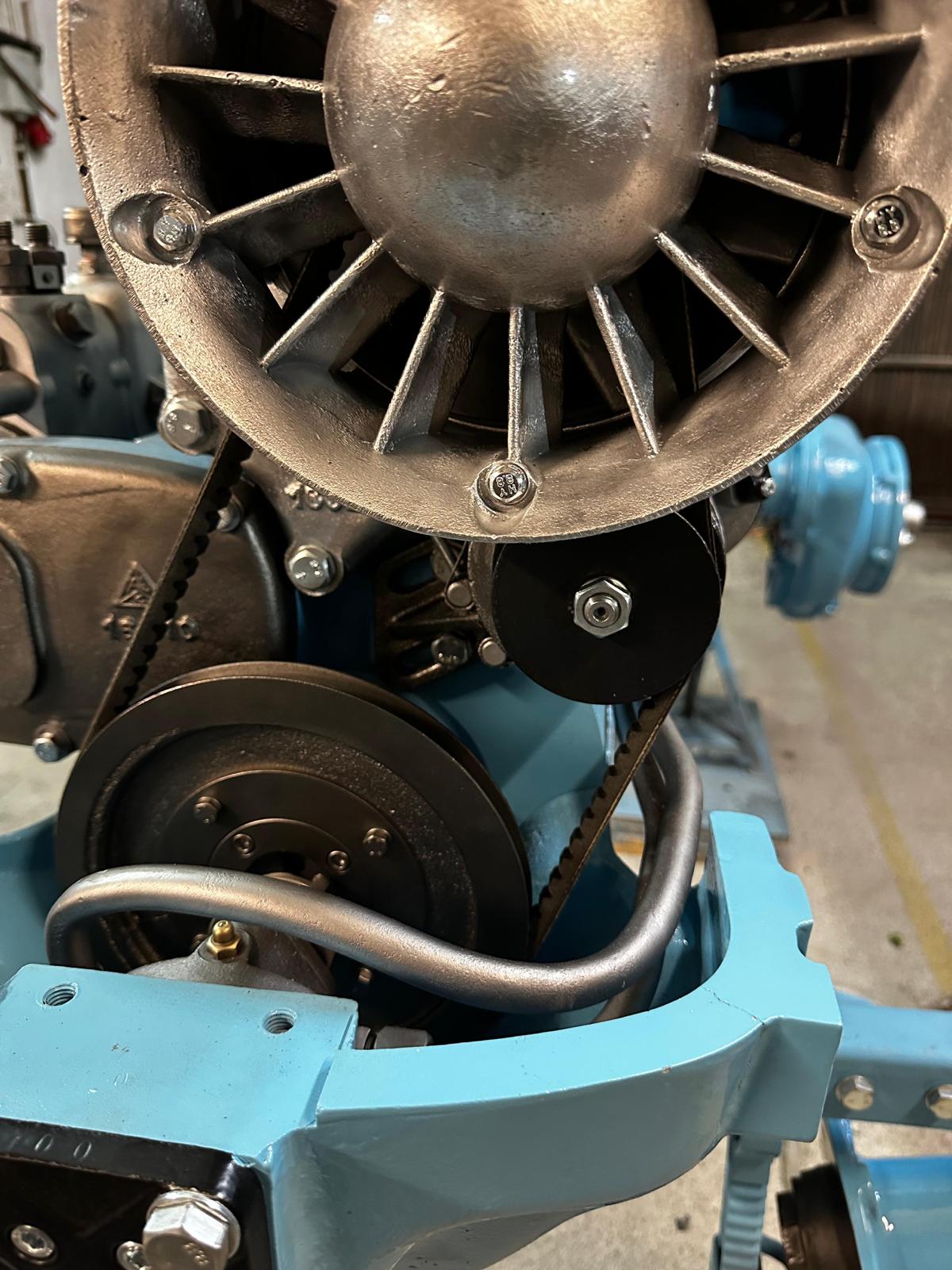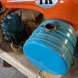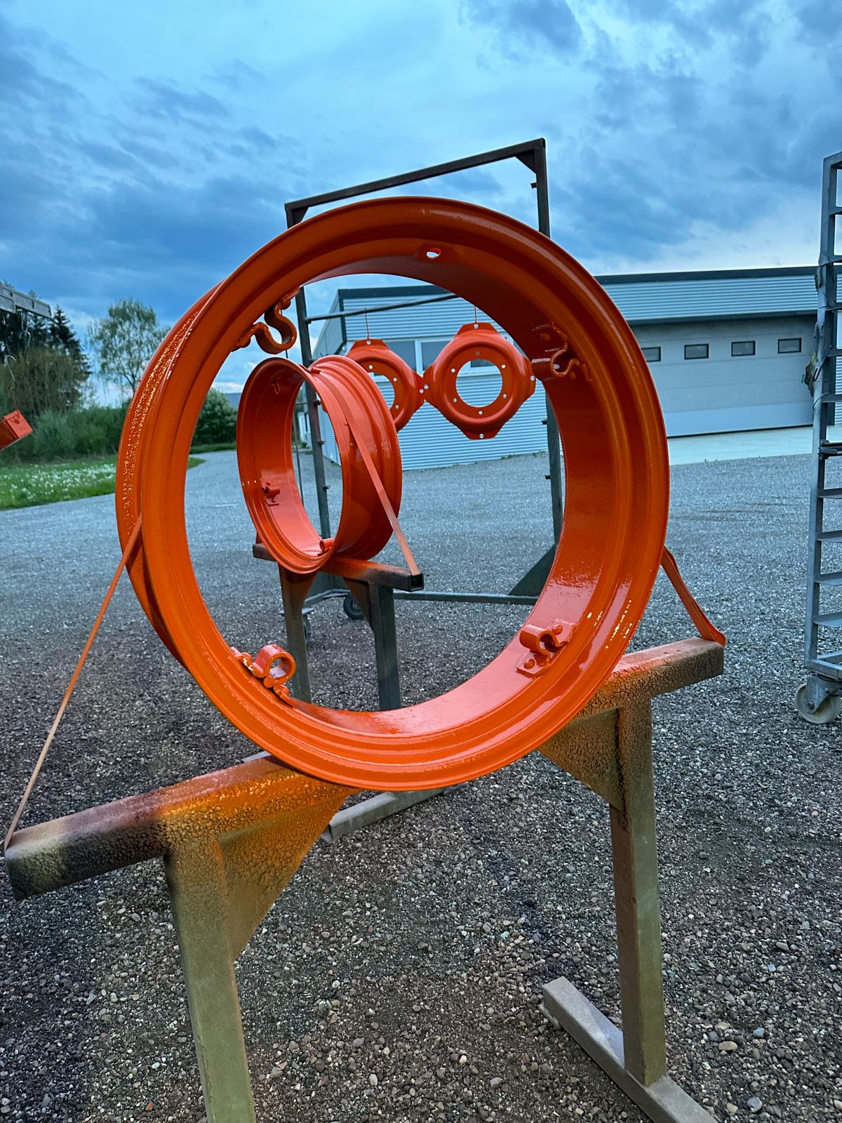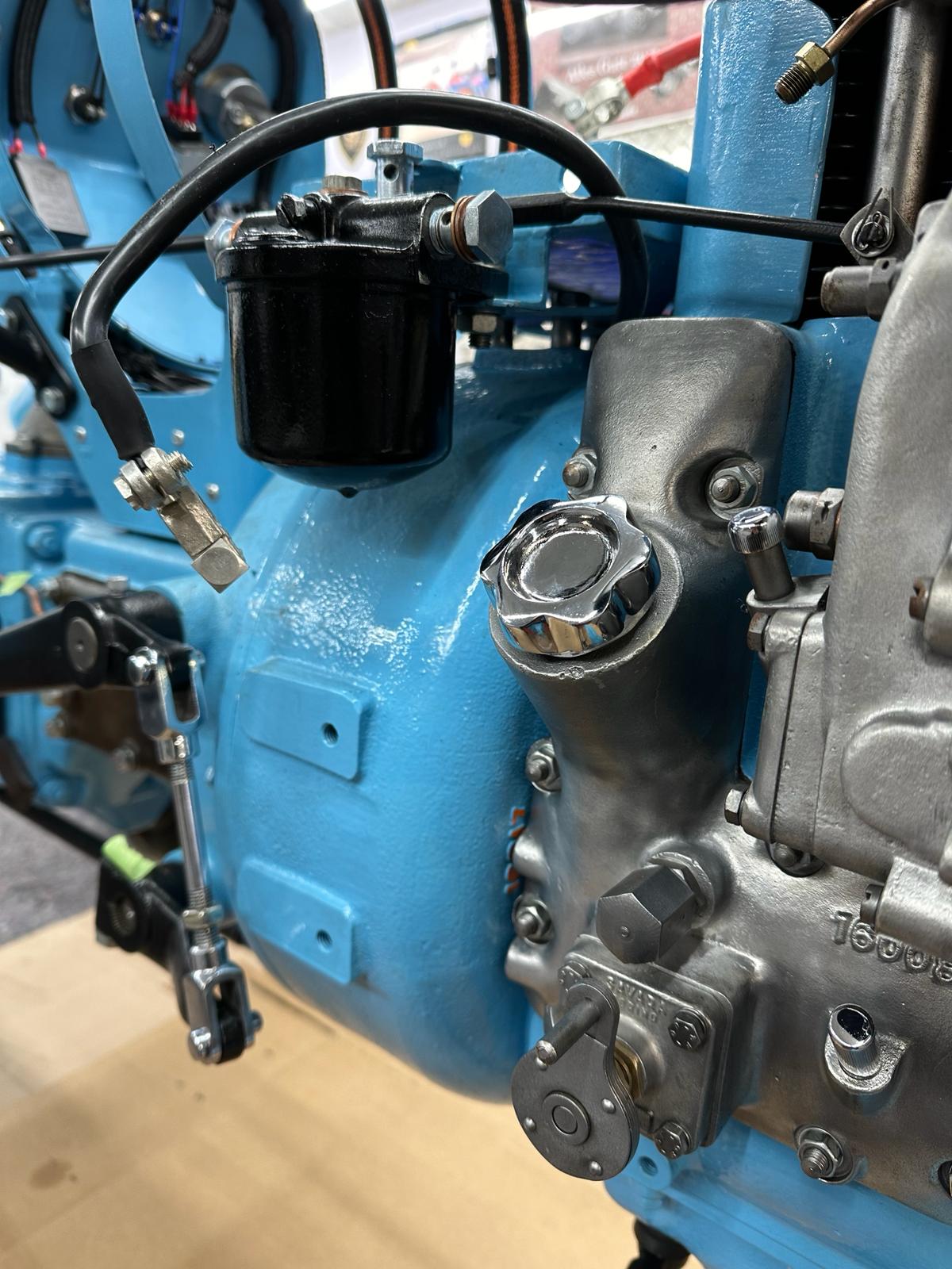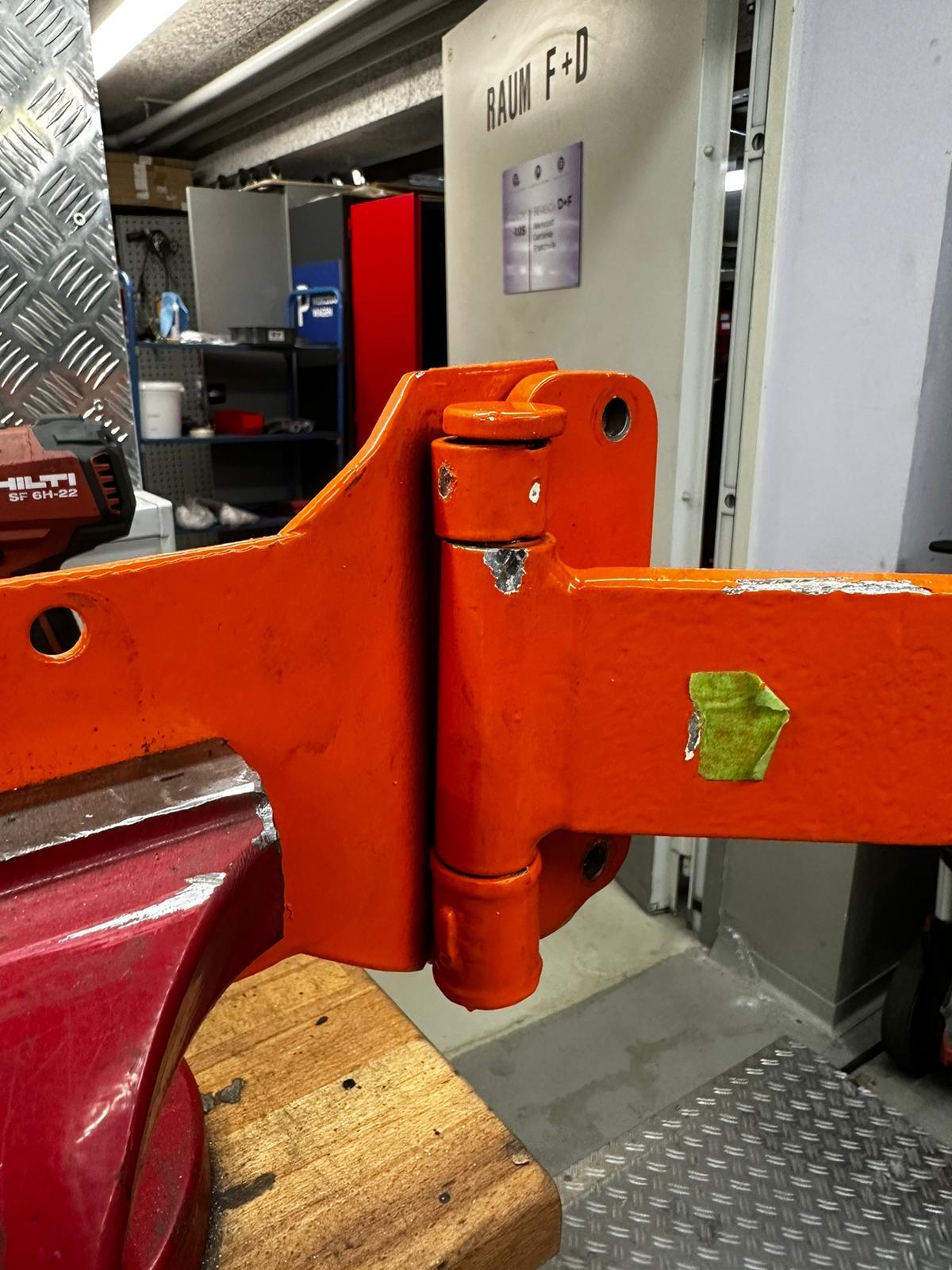 Was hier glänzt, ist Substanz. Das historische Azzurro (Azurblau) mit Arancio (Orange) ist kein Styling, sondern eine Hommage an die Werksfarben der Traktoren – präzise abgemischt, auf eine Technik gelegt, die wir Schraube für Schraube neu aufgebaut haben. Jeder Radius, jede Fase, jede Schelle folgt einer Logik: Vollzerlegung, Maßhaltigkeit, Funktionssicherheit.