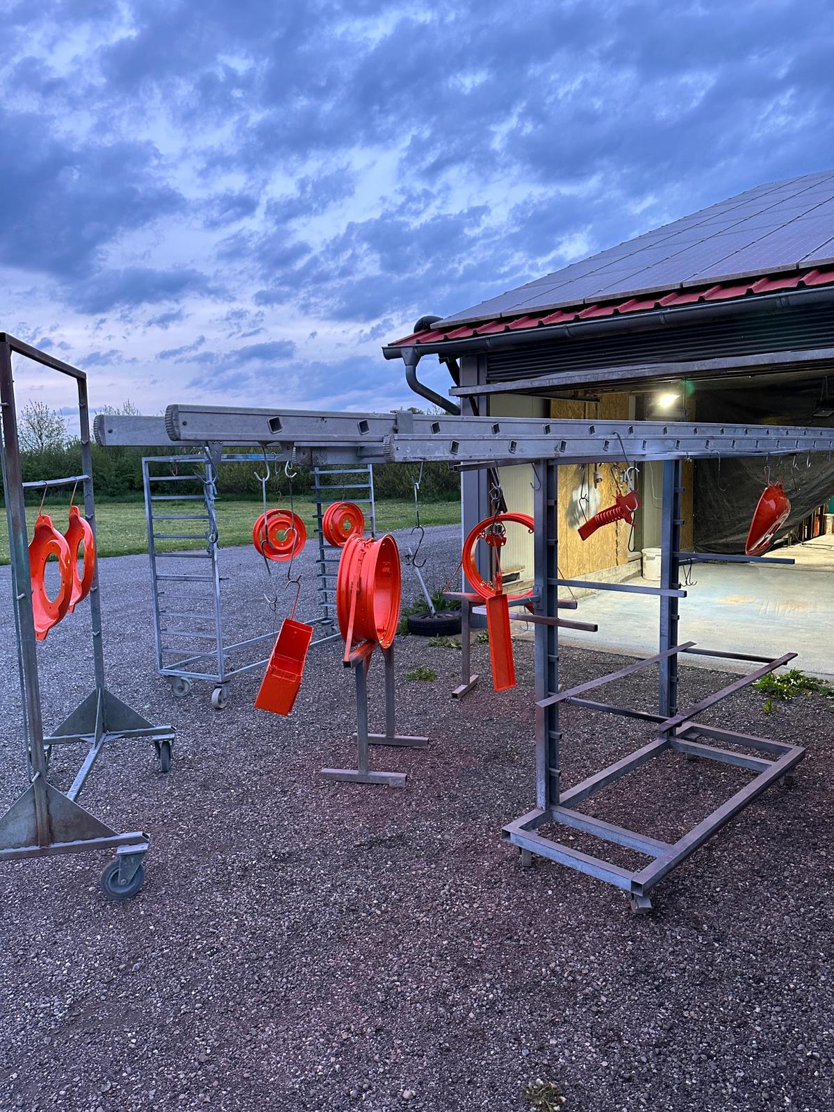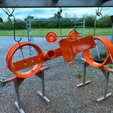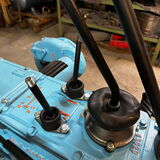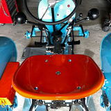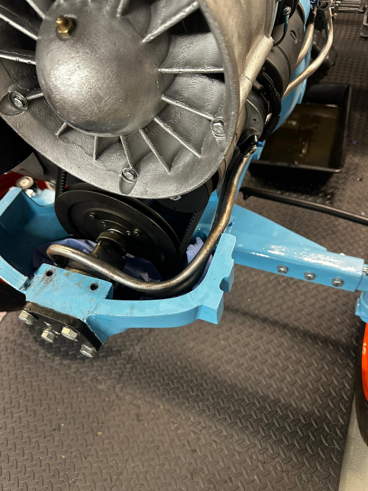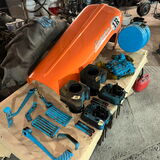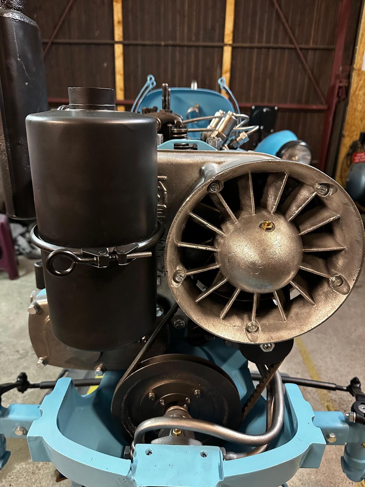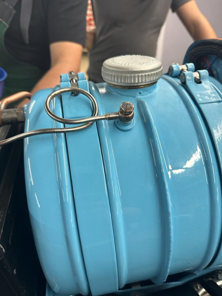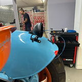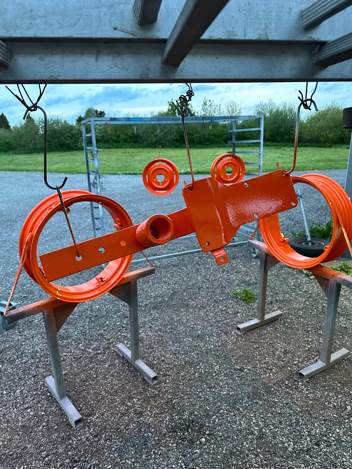 Was hier glänzt, ist Substanz. Das historische Azzurro (Azurblau) mit Arancio (Orange) ist kein Styling, sondern eine Hommage an die Werksfarben der Traktoren – präzise abgemischt, auf eine Technik gelegt, die wir Schraube für Schraube neu aufgebaut haben. Jeder Radius, jede Fase, jede Schelle folgt einer Logik: Vollzerlegung, Maßhaltigkeit, Funktionssicherheit.