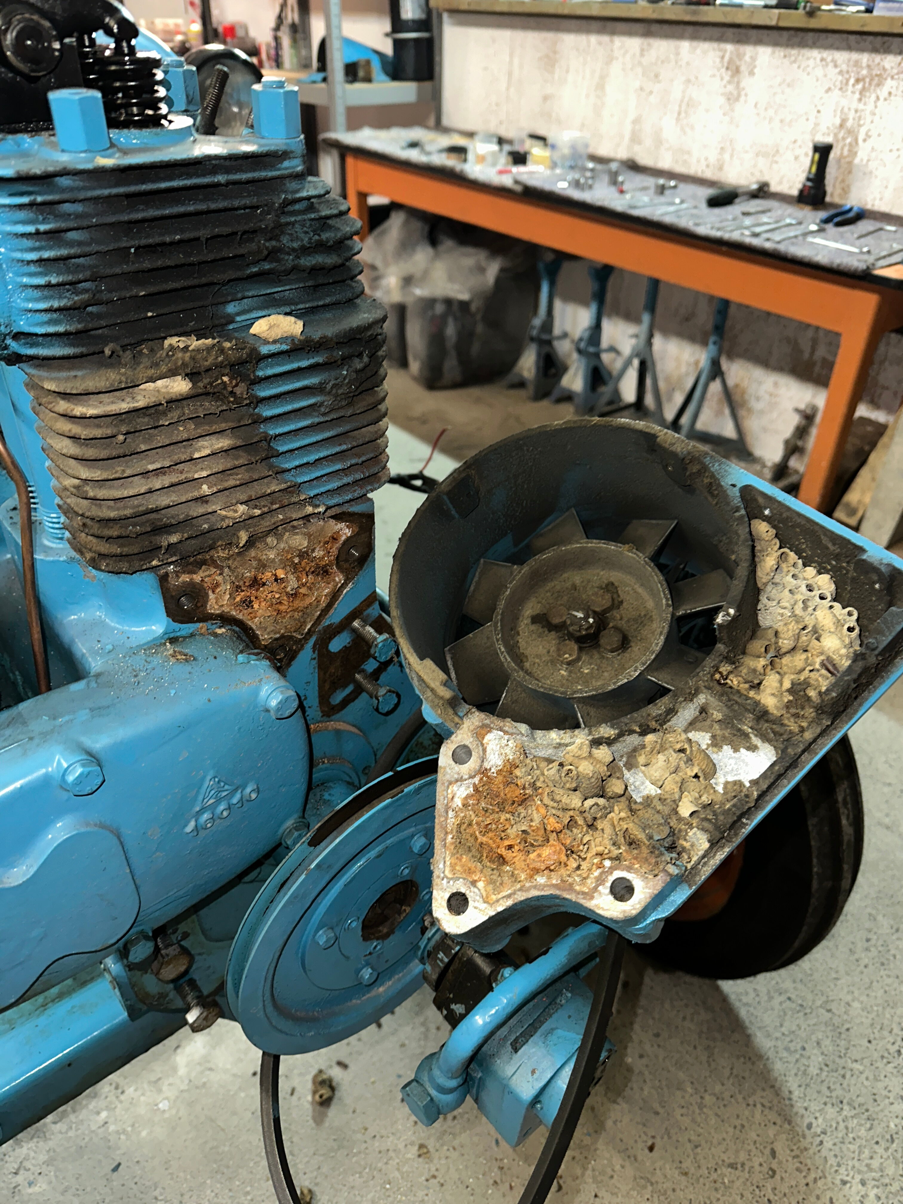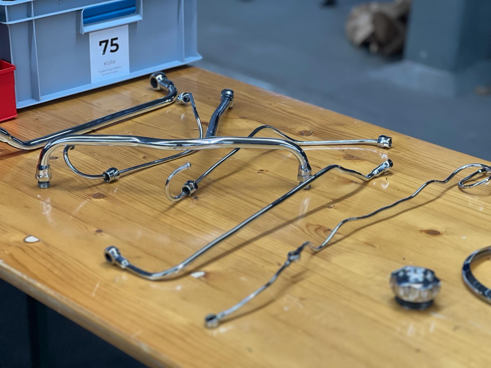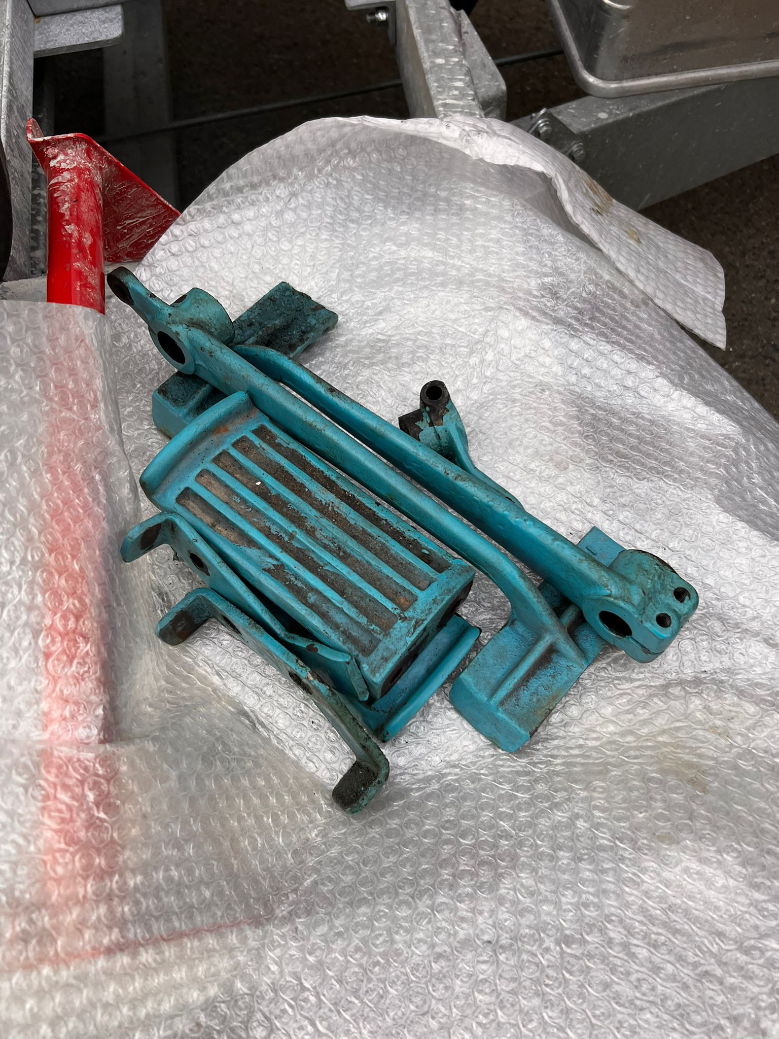 Fotodokumentation des unrestaurierten Zustands vom 06.11.2022: ehrliche Patina, lokale Korrosionszonen, vollständige Hauptbaugruppen. Dieser Erstzustand definierte, was erhalten, aufgearbeitet oder ersetzt wird. Die transparente Befundlage erhöht Nachvollziehbarkeit und Vertrauen – ein direkter Werttreiber.