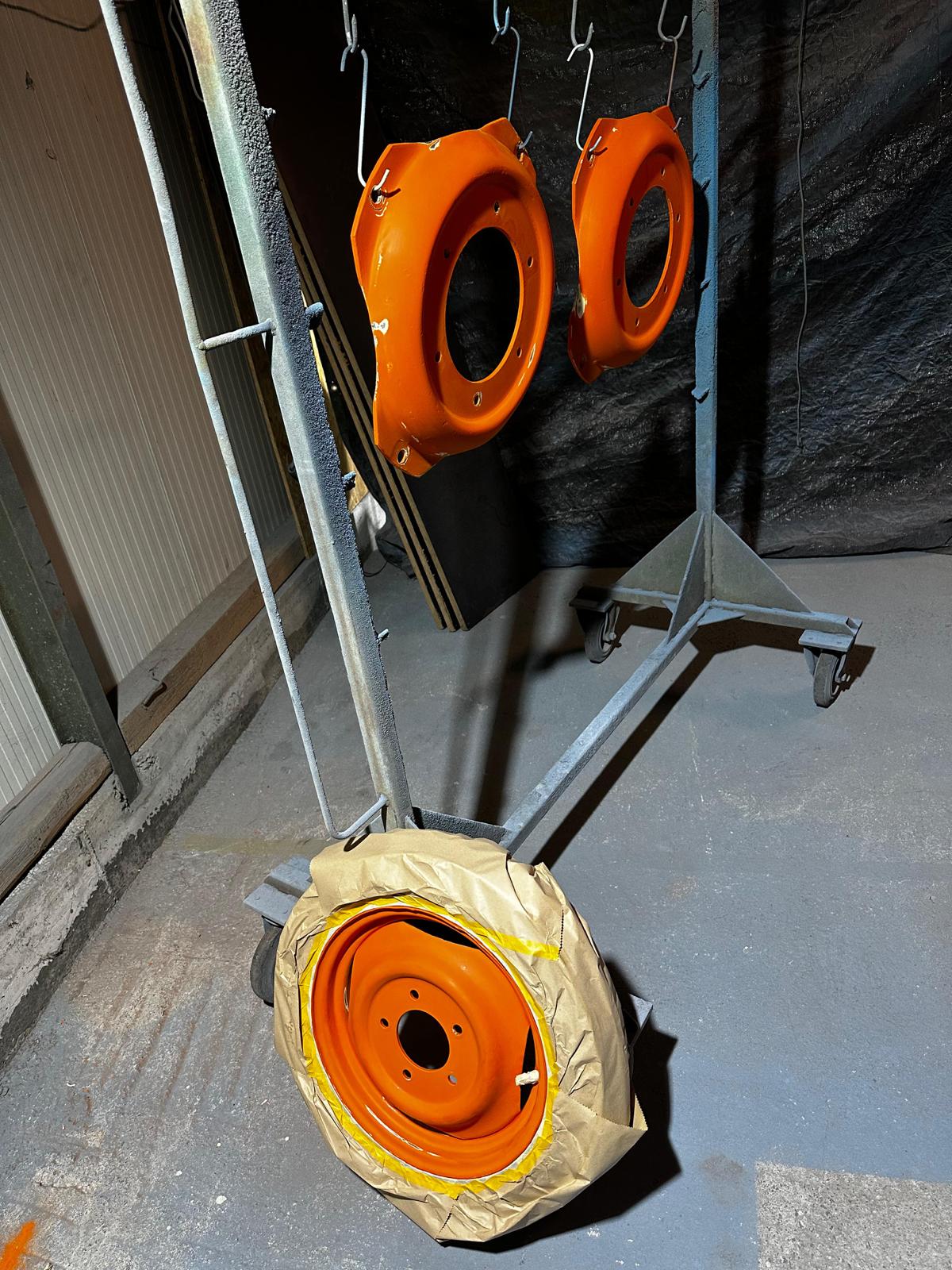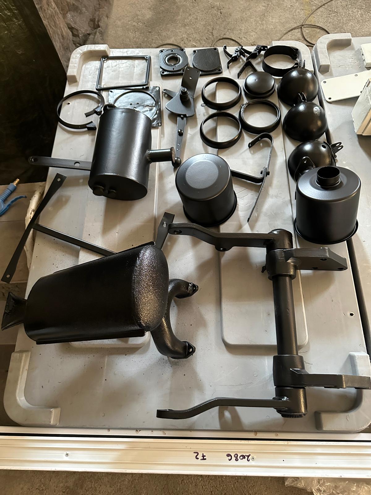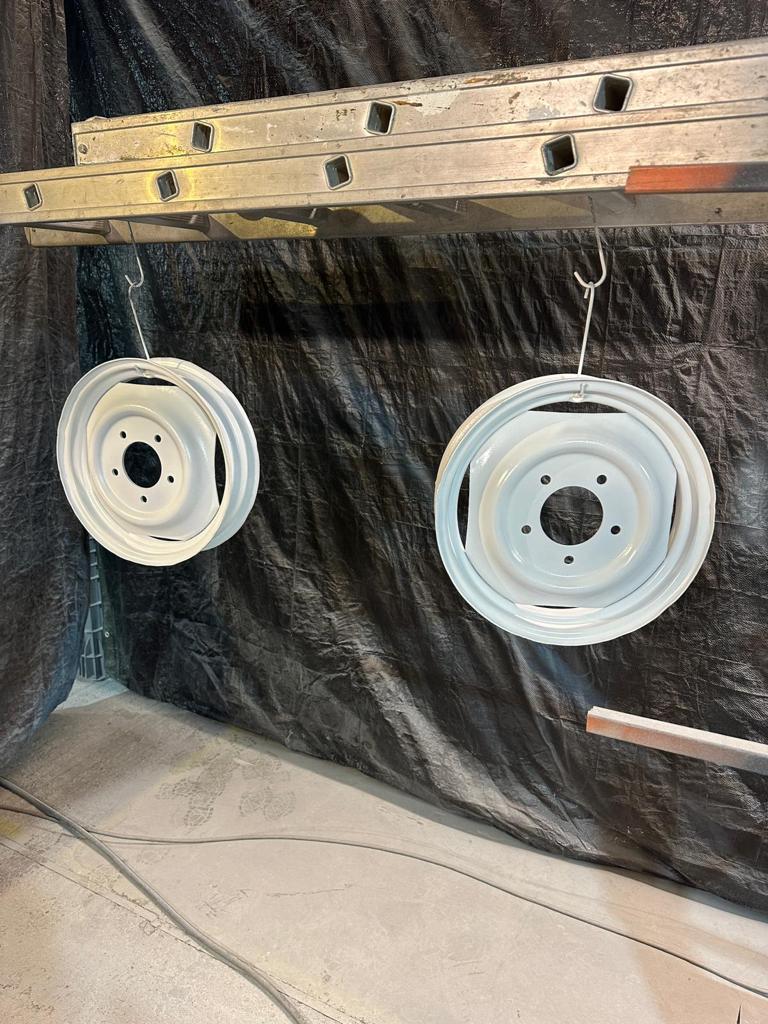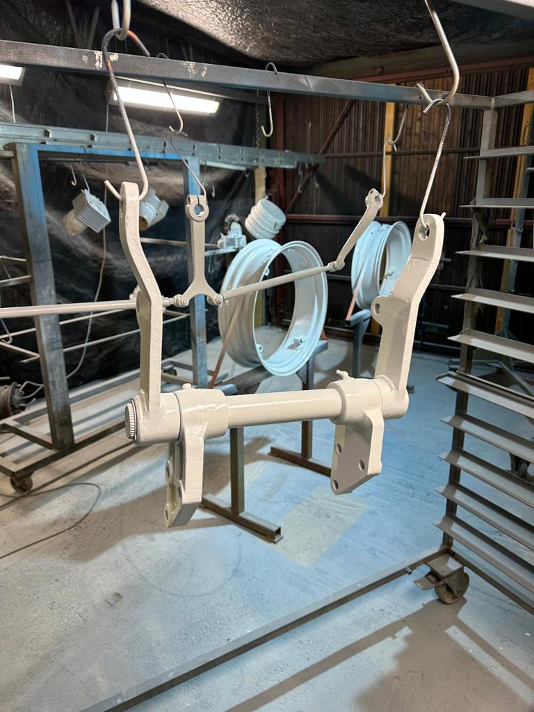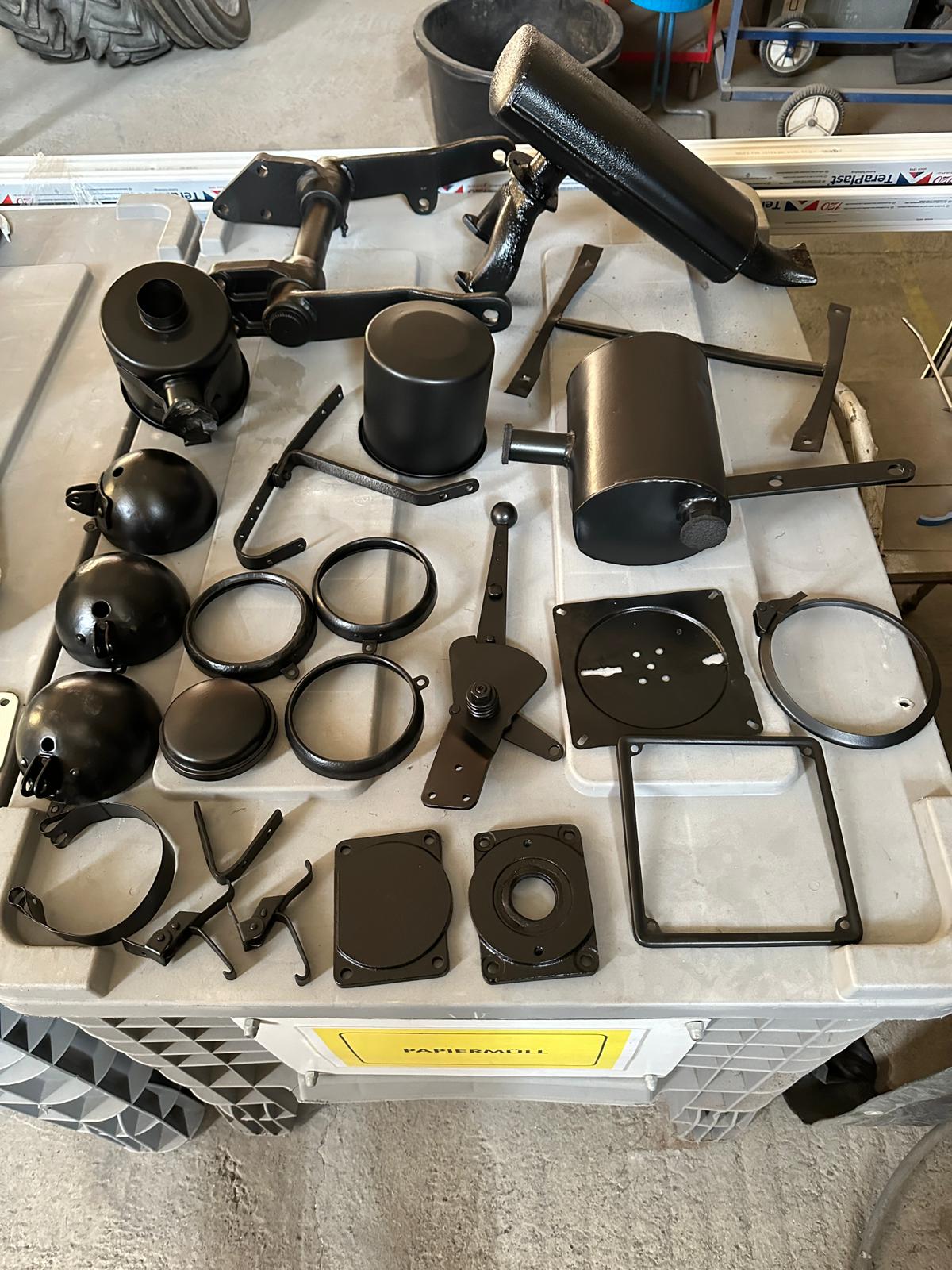 Professionelle Pulverbeschichtung vieler Bauteile; bewegliche Komponenten überwiegend schwarz pulverbeschichtet. Felgen mit Hochglanz-Pulverbeschichtung (Show-Quality-Finish). Sichtteile in periodenkorrekten Farbtönen lackiert. Umfassender Korrosionsschutz innen/außen.