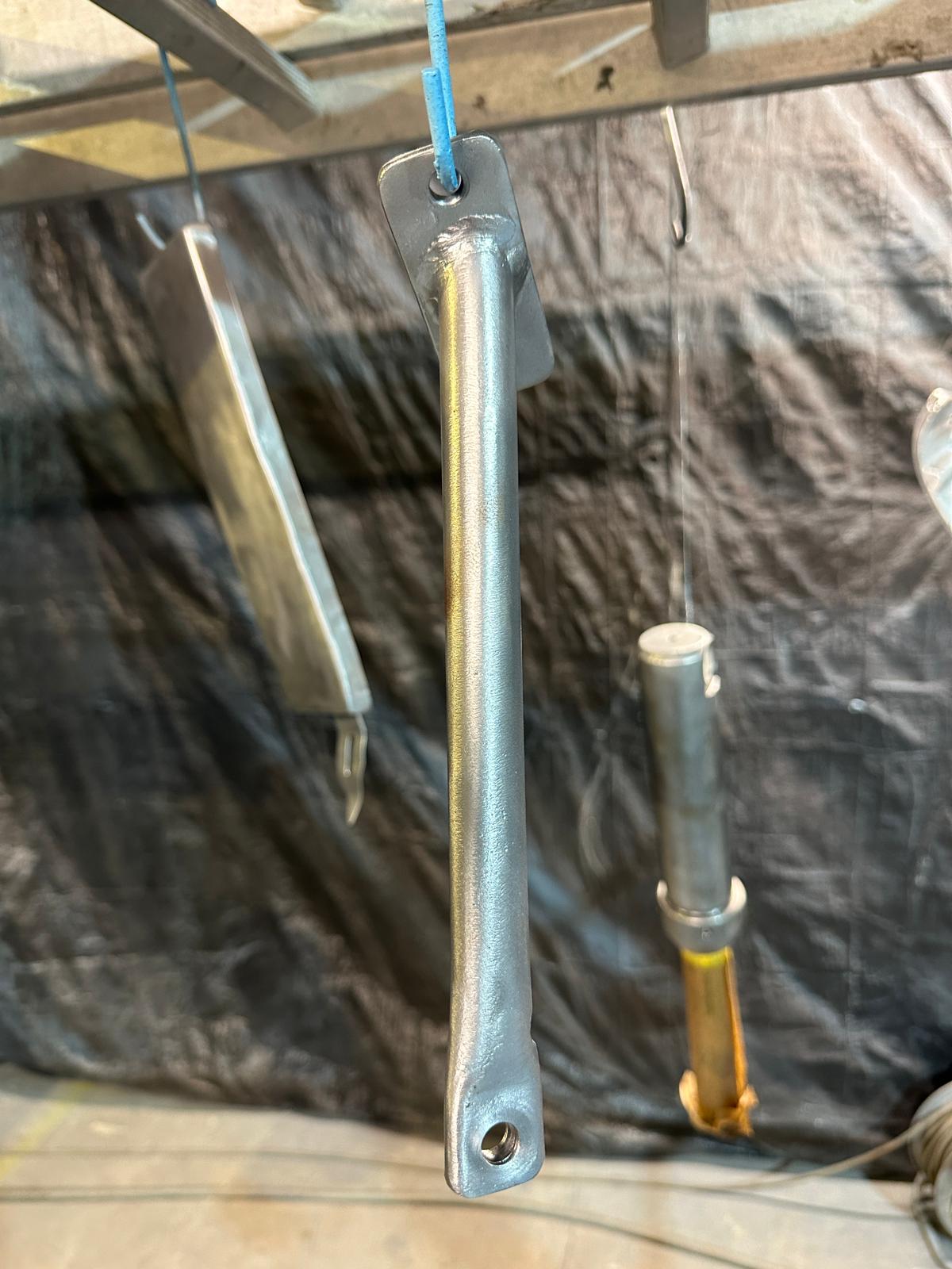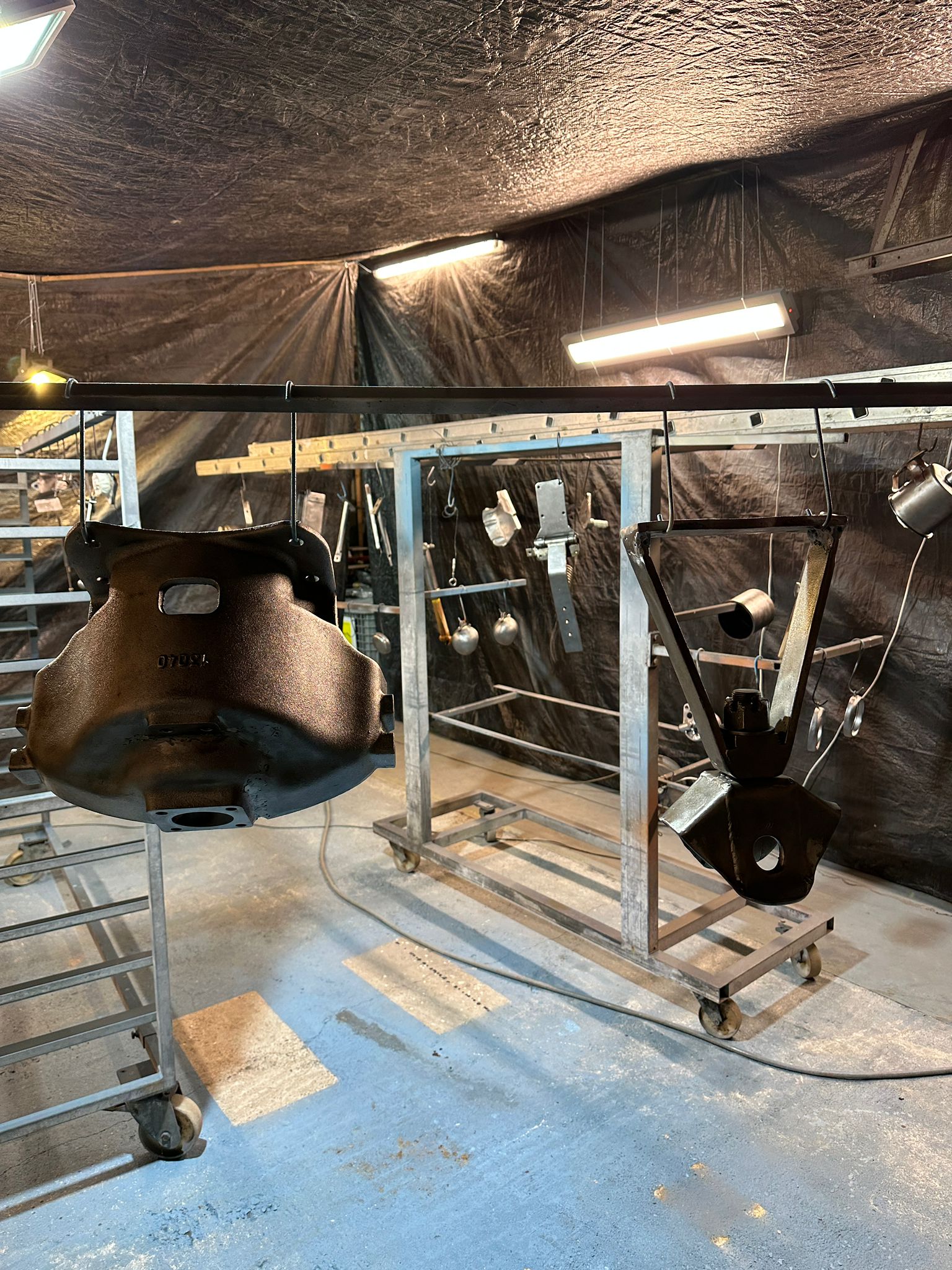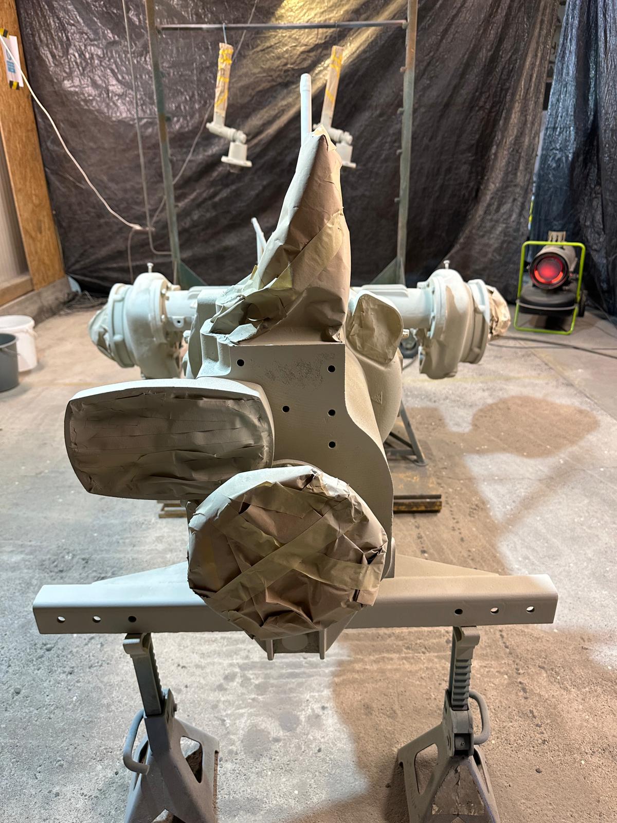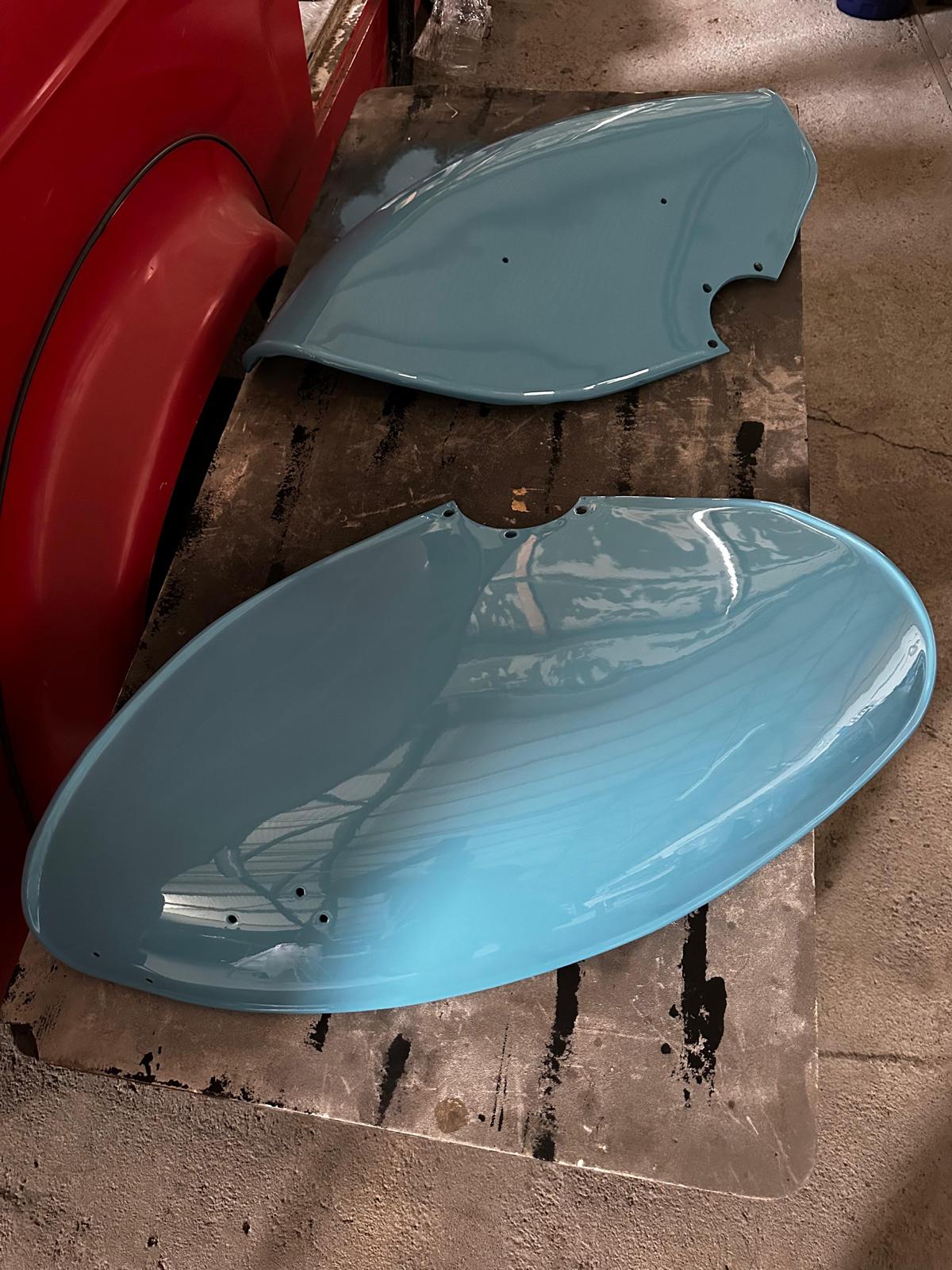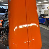 Professionelle Pulverbeschichtung vieler Bauteile; bewegliche Komponenten überwiegend schwarz pulverbeschichtet. Felgen mit Hochglanz-Pulverbeschichtung (Show-Quality-Finish). Sichtteile in periodenkorrekten Farbtönen lackiert. Umfassender Korrosionsschutz innen/außen.