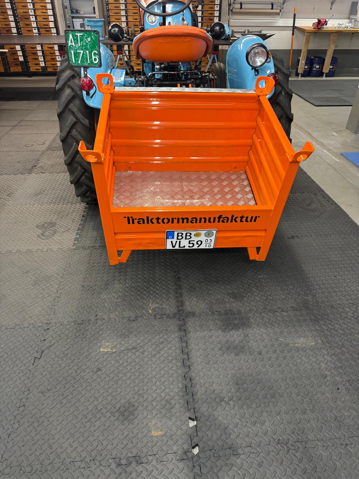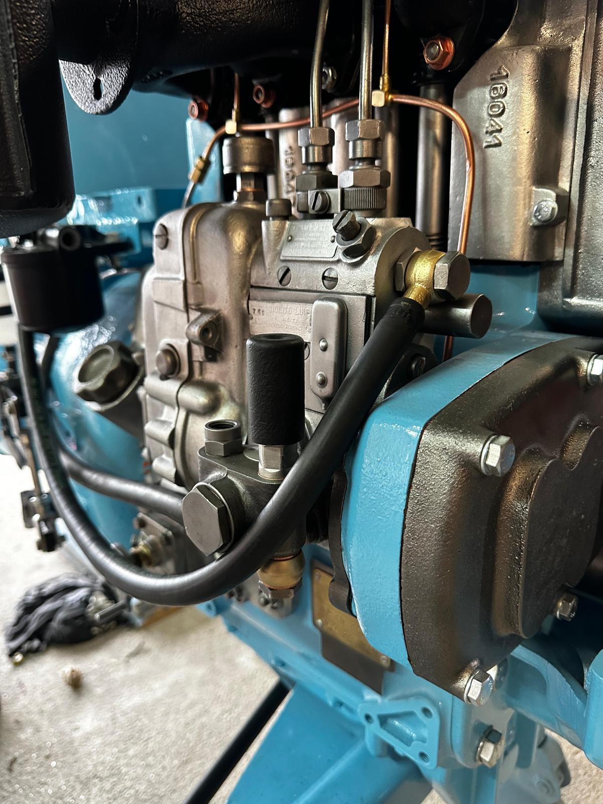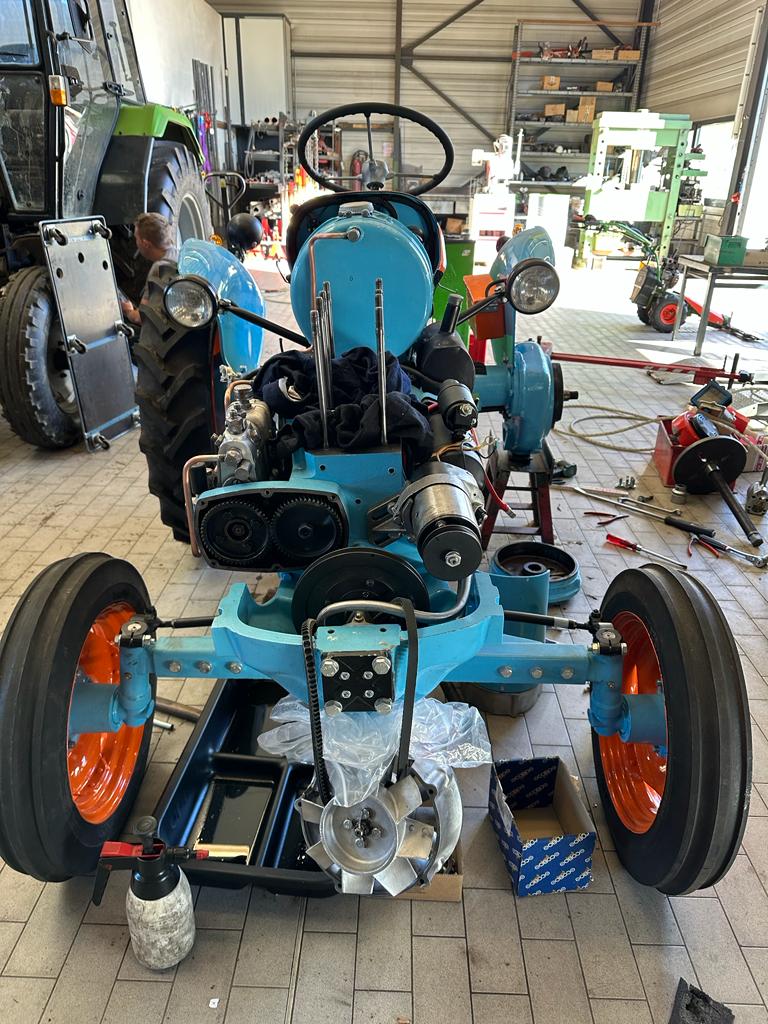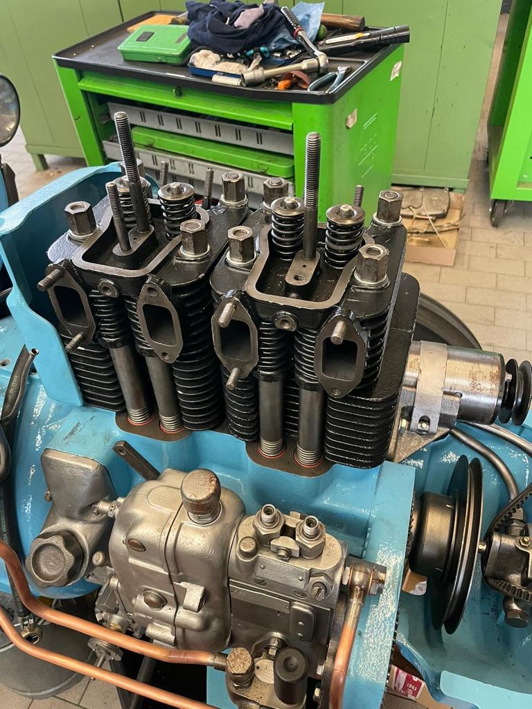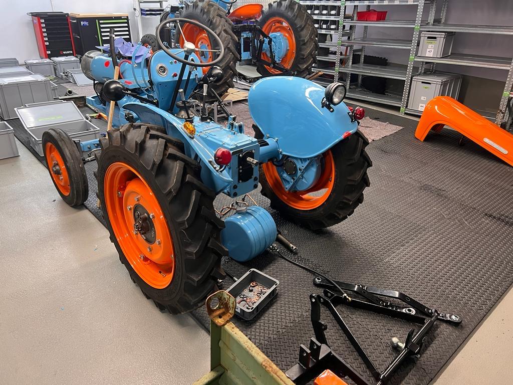 Vollzerlegung („Rahmen-off“) bis zur letzten Schraube. Elektrik komplett neu (moderne Verteilersysteme, neu gefertigter Kabelbaum, hochwertige Steck-/Crimpverbindungen; Sicherungen nur, wenn historisch vorgesehen). Alle Dichtungen neu, nach Traktormanufaktur-Spezifikation in Österreich gefertigt und verbaut. Anlasserzahnkranz wird grundsätzlich erneuert. Pulverbeschichtungen vieler Teile (bewegliche Komponenten überwiegend schwarz); Felgen mit Hochglanz-Pulverbeschichtung; Sichtteile periodenkorrekt lackiert. Original-Traktormeter in Originalausführung vom damaligen Originalhersteller nachproduziert. ID-gebundene Fotodokumentation & Monatschronik.