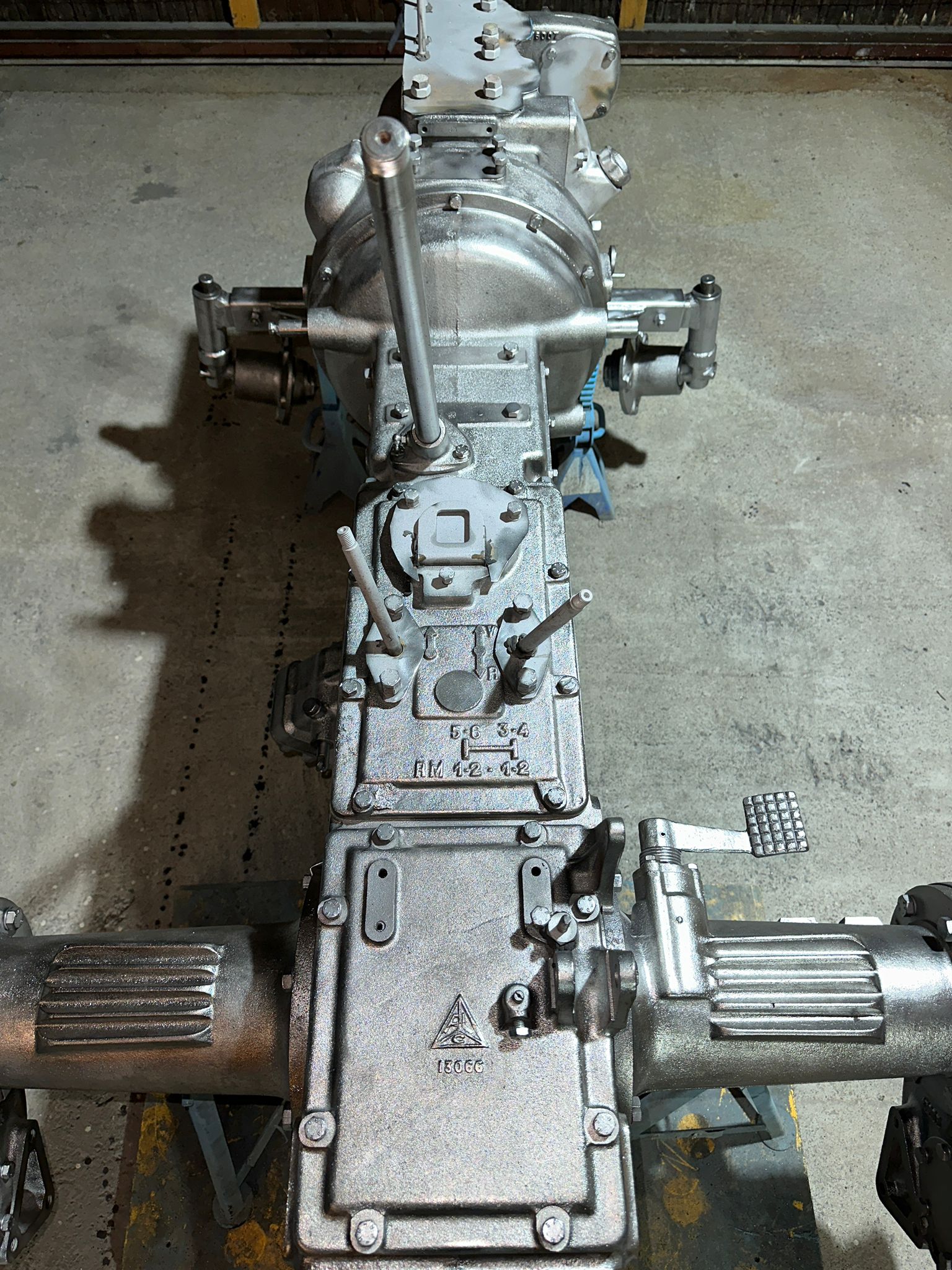 Gehäuse geöffnet, Verzahnungen/Lager/Passungen geprüft und protokolliert. Dichtpakete konsequent neu (AT-Spezifikation). Achsen und Lager eingestellt, Bremsanlage überholt, Reibpartner konditioniert, Lenkspiel minimiert – für definierte Betätigungskräfte und klare Schaltbarkeit.