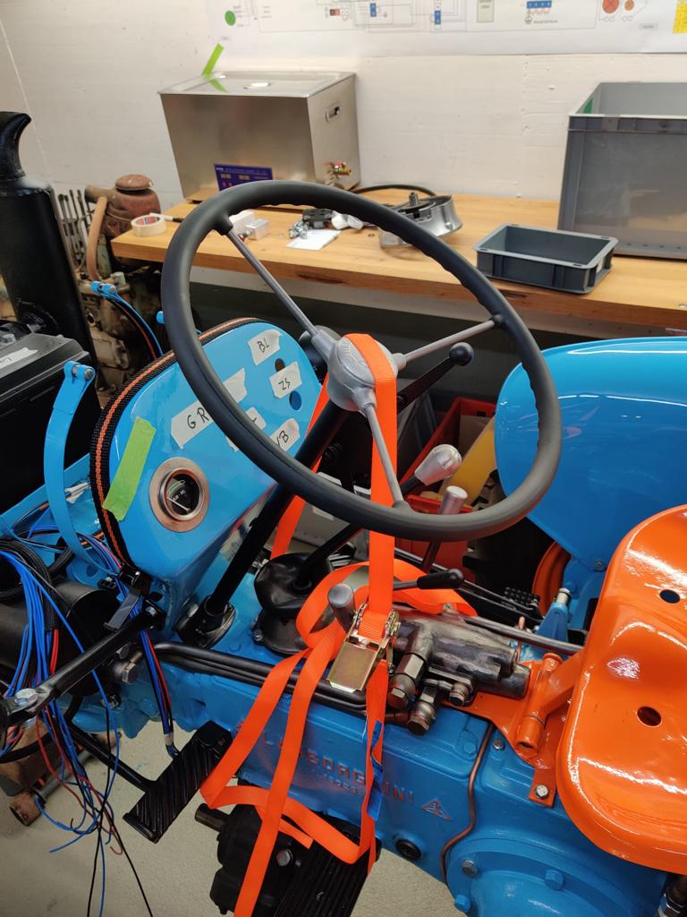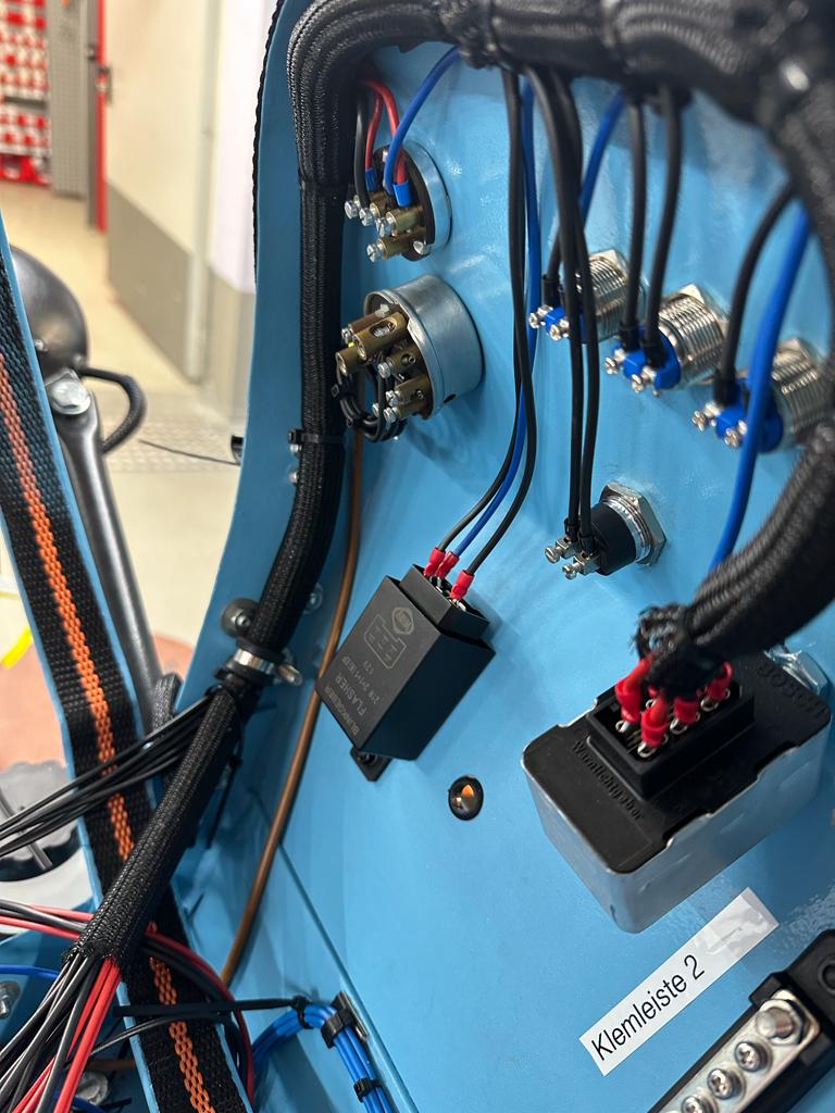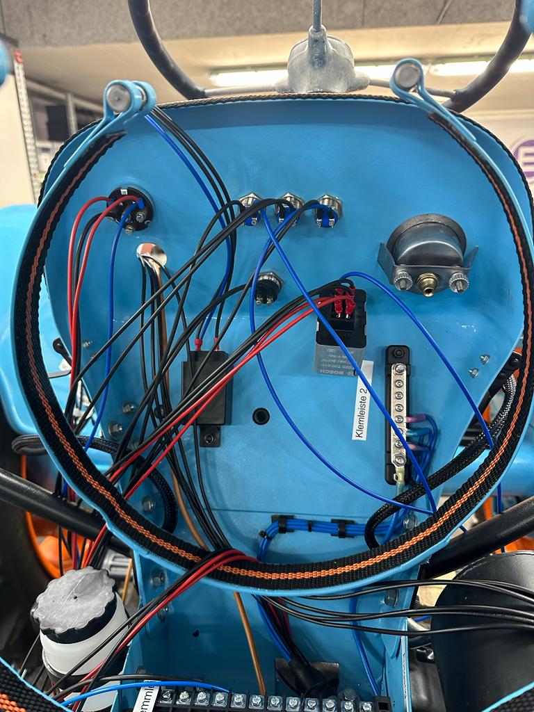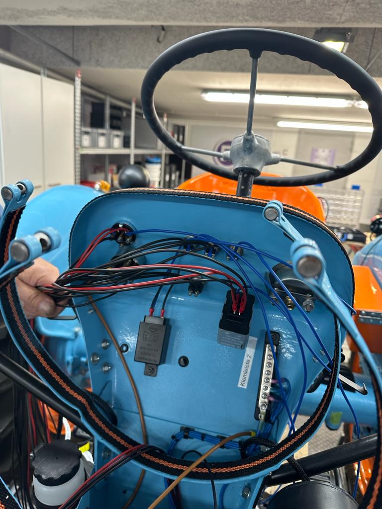 Neuaufbau mit modern dimensionierten Verteilersystemen, neu gefertigtem Kabelbaum und hochwertigen Steck-/Crimpverbindungen. Sicherungen nur, wenn historisch vorgesehen. Beleuchtung/Signale funktionssicher; Traktormeter in Originalausführung vom damaligen Originalhersteller nachproduziert.