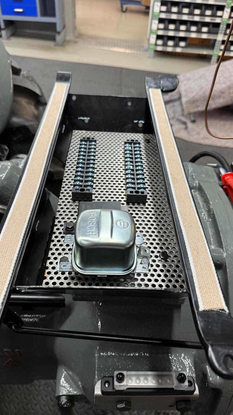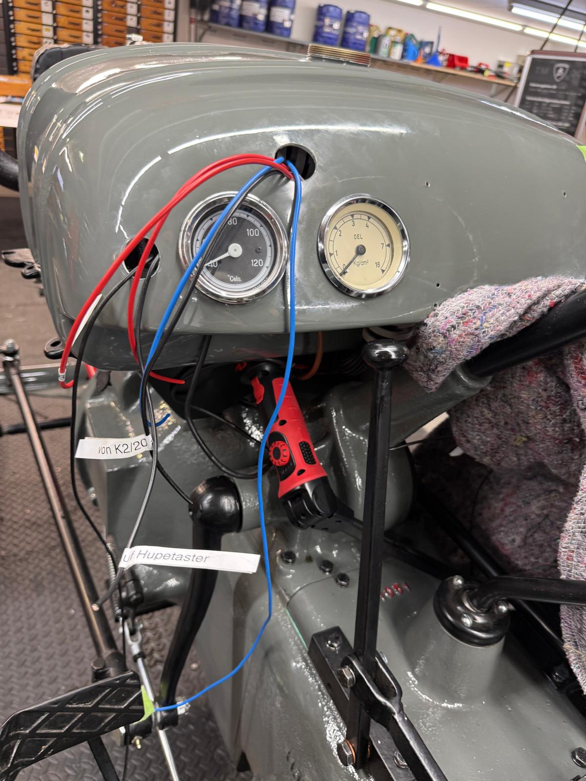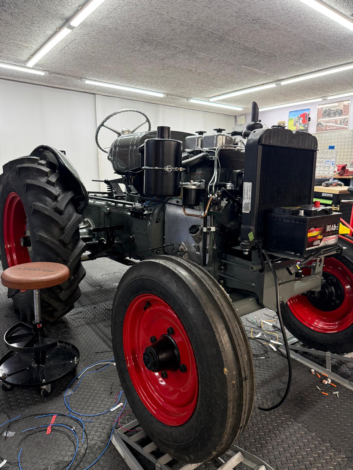 Neuaufbau mit modern dimensionierten Verteilersystemen, neu gefertigtem Kabelbaum und hochwertigen Steck-/Crimpverbindungen. Sicherungen nur, wenn historisch vorgesehen. Beleuchtung/Signale funktionssicher; Traktormeter in Originalausführung vom damaligen Originalhersteller nachproduziert.
