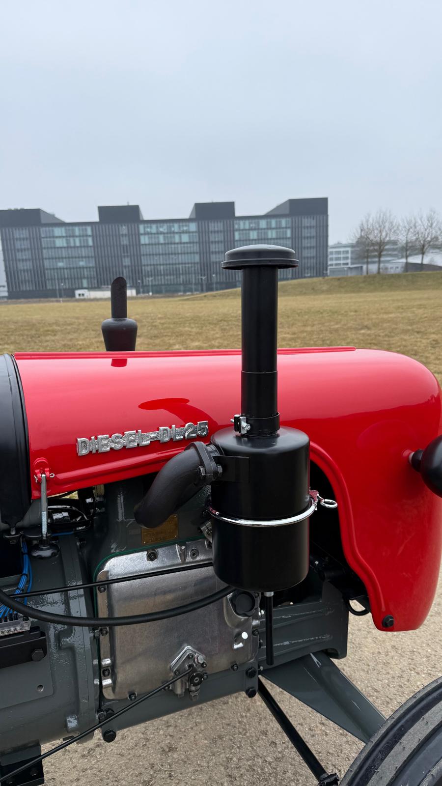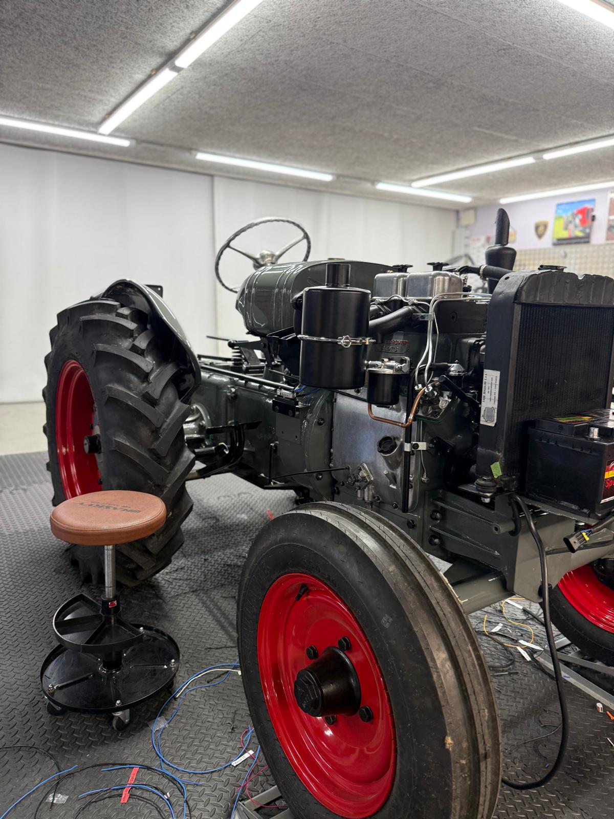 Lamborghini DL 25N (Baujahr 1955), ID 030. Ein kompakter, seltener N-Schmalspur aus der Frühphase – nun bei uns in der ID-gebundenen Vollrestauration. Fix definiert: Elektrik komplett neu, alle Dichtungen „Made in Austria“, Felgen in Hochglanz-Pulverbeschichtung, Original-Traktormeter in Originalausführung nachproduziert. Status: verkauft – in Restaurierung (Beginn 06.02.2025).